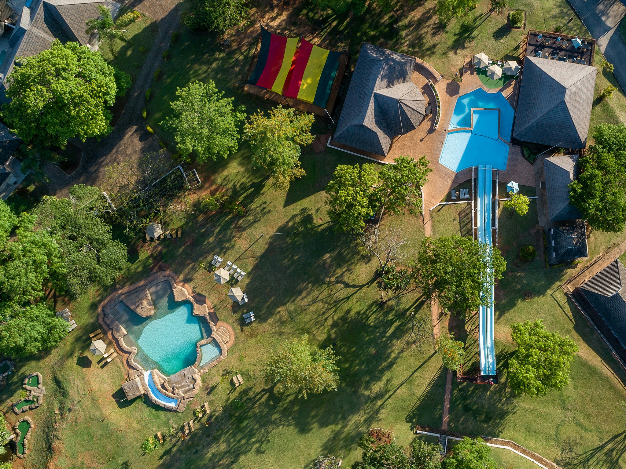 Highgrove House, located on a 64-hectare farm just 20 minutes from Kruger National Park, offers unique accommodation, gourmet cuisine, and a tranquil setting with stunning views of the Mpumalanga Lowveld valley.