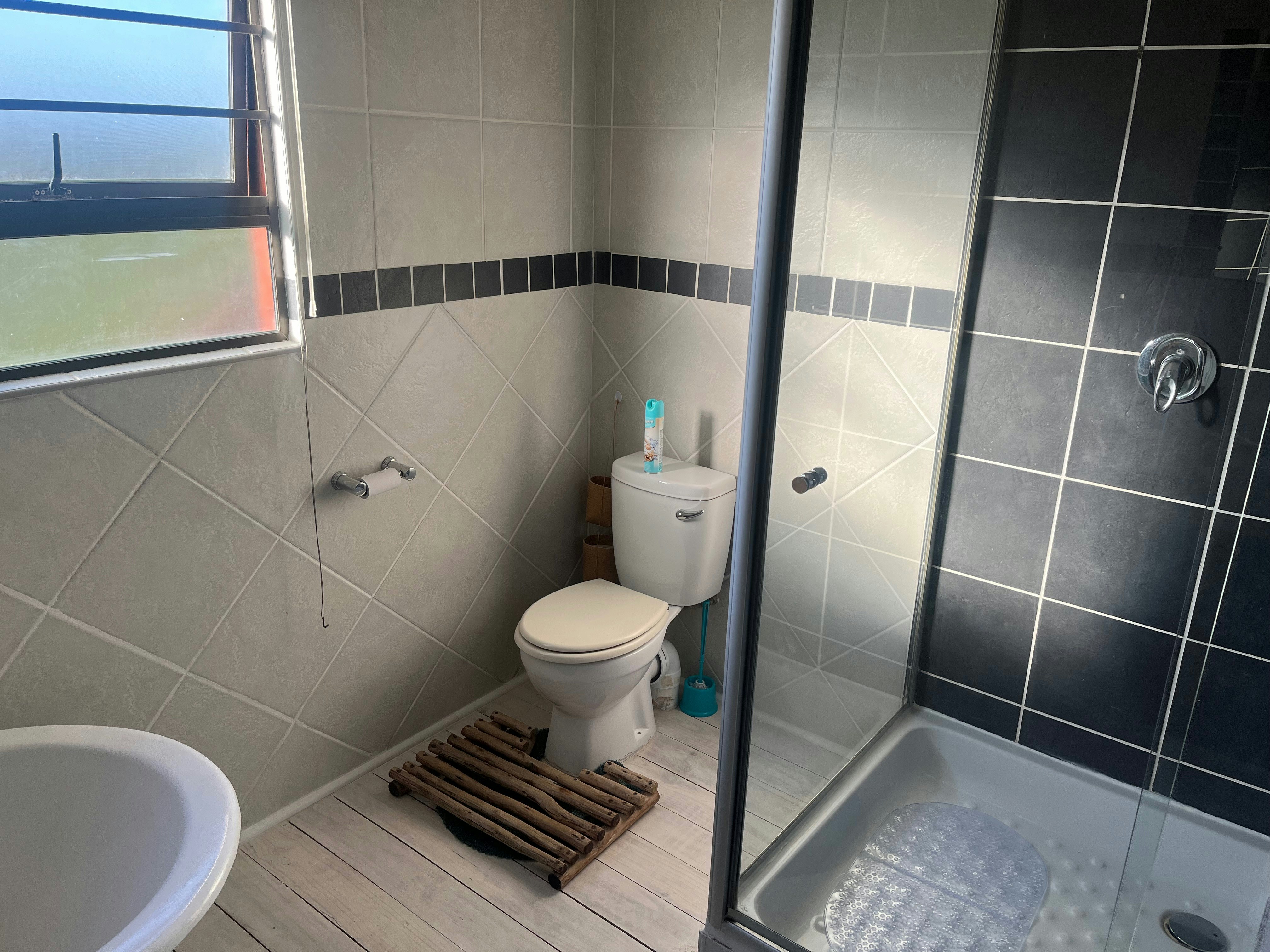 This home accommodates 6 guests and features 3 bedrooms and 2 bathrooms. The main bedroom is furnished with a queen-size bed and has a full en-suite bathroom fitted with a toilet, washbasin, and shower over the bath. The remaining two bedrooms each contain double beds and share the second bathroom, which is fitted with a washbasin, toilet, and shower over bath.