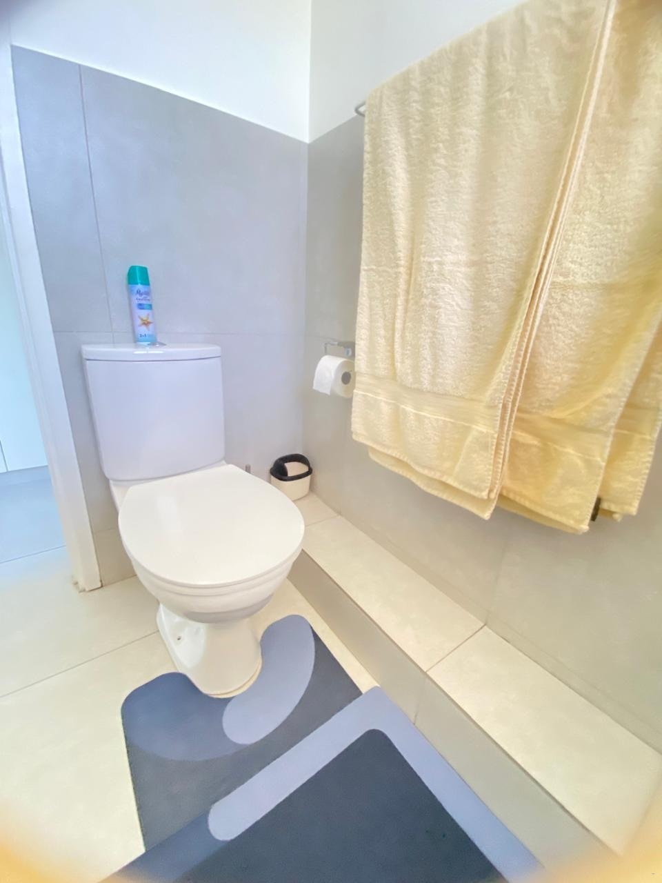This apartment accommodates up to 4 guests and comprises 2 bedrooms and 2 bathrooms. The main bedroom is furnished with a double bed and features an en-suite bathroom fitted with a shower, washbasin, and toilet. The second bedroom contains 2 single beds and also has an en-suite bathroom fitted with a shower, washbasin, and toilet.