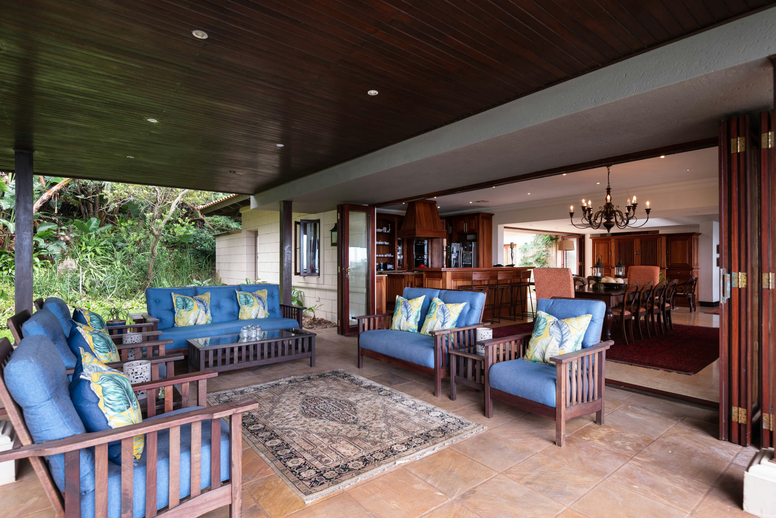 10 Tinderwood is a luxury villa offering self-catering accommodation with unbeatable sea views, located in the pristine eco and golfing estate of Zimbali. The house has been comfortably furnished, with a classic and luxurious design.