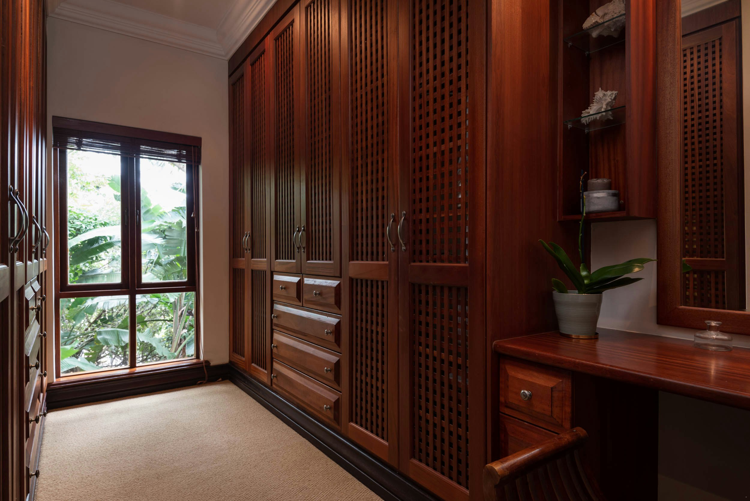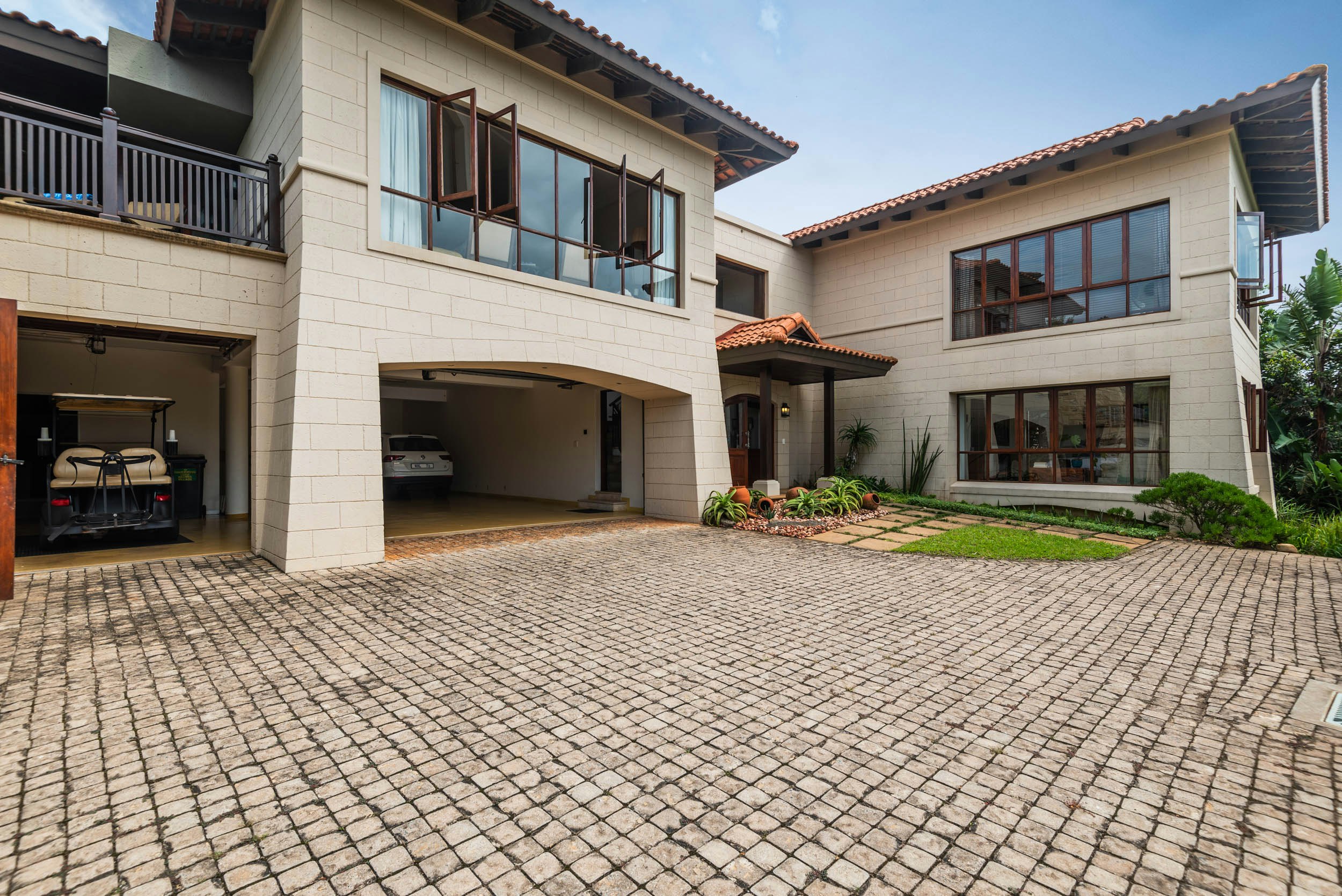 Ideal for large families looking for the best that Zimbali has to offer, this home accommodates 8 people. and comprises 4 bedrooms, 4 bathrooms, and an open-plan kitchen and living area. The generous main bedroom upstairs contains a king-size bed, generous sea views, and an en-suite bathroom fitted with a bath and a shower. The second bedroom contains a king-size bed, and an en-suite bathroom fitted with a bath and a shower. The third and fourth bedroom each contains 2 single beds, and an en-suite bathroom fitted with a shower-over-bath. The fifth bedroom contains a single bed, and an en-suite bathroom fitted with a shower.