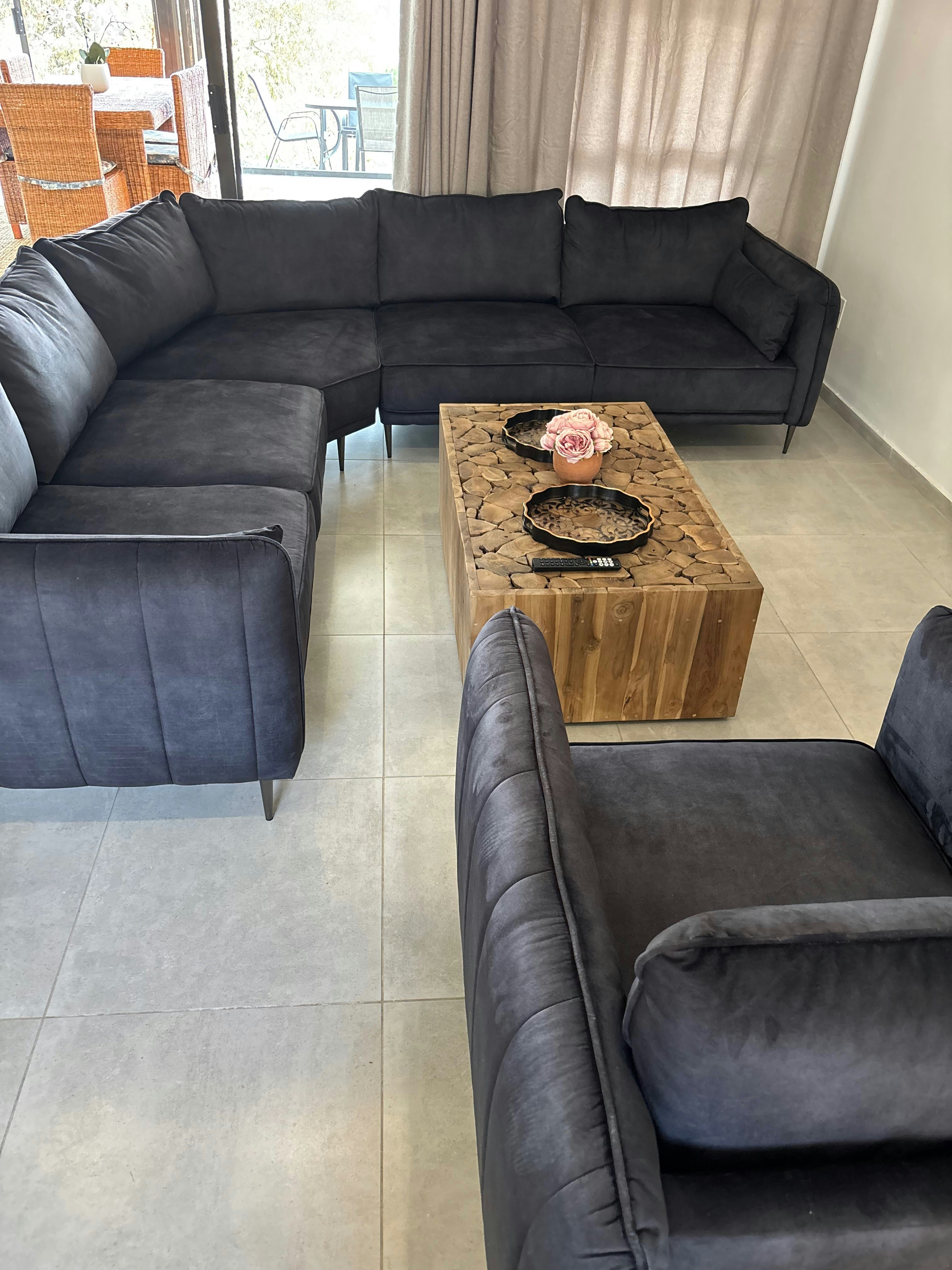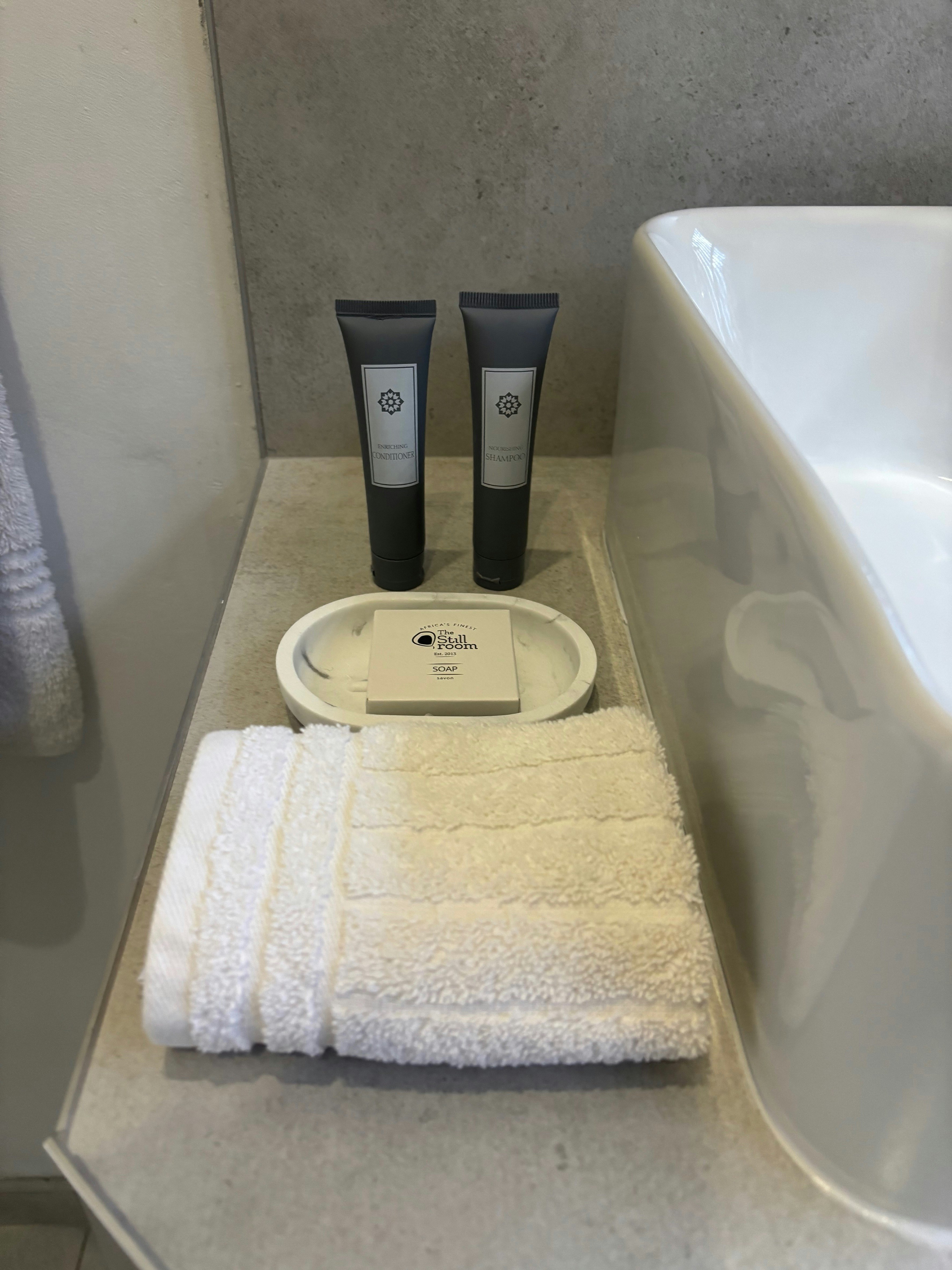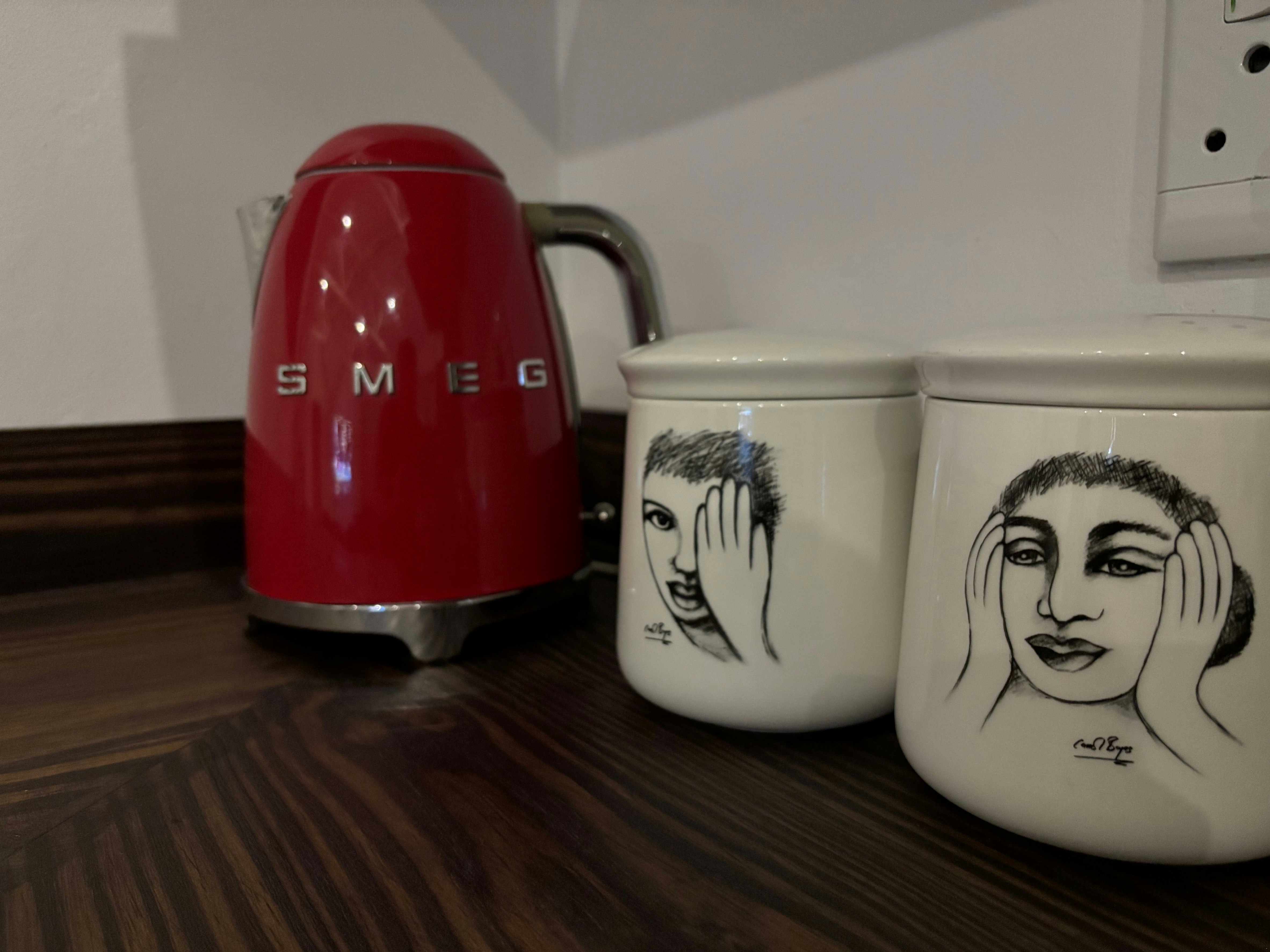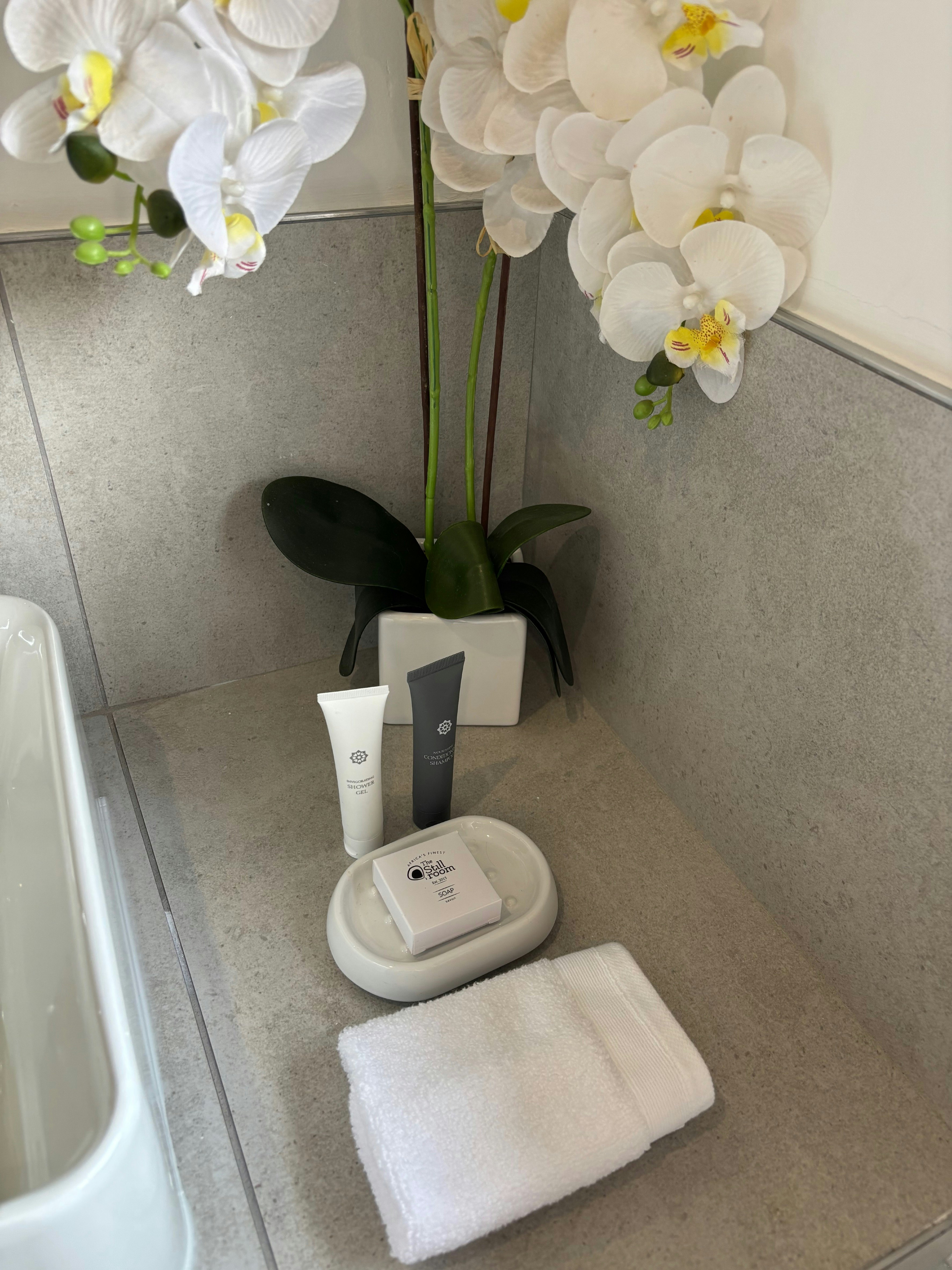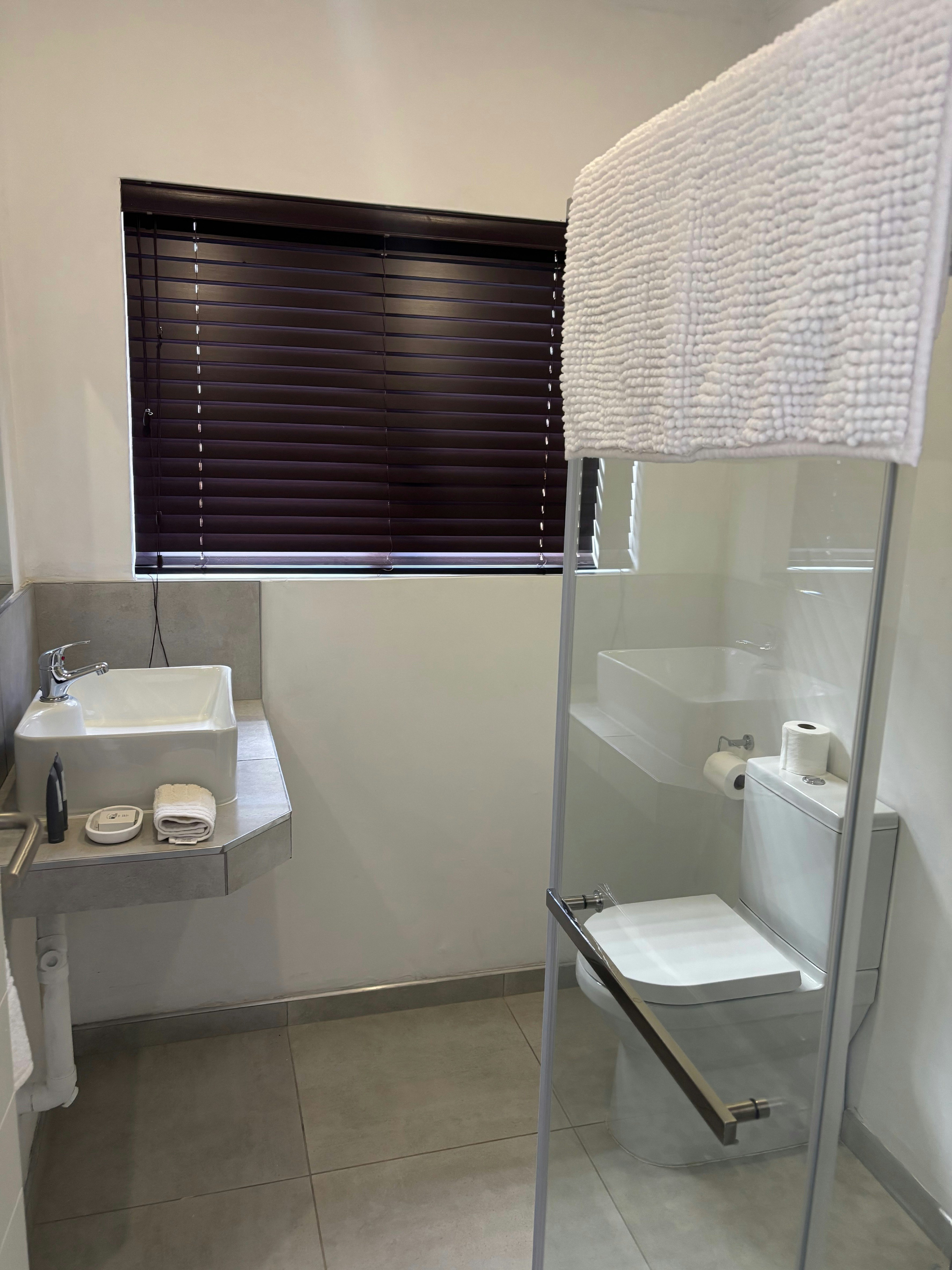 The unit can accommodate up to six guests and comprises three bedrooms and three bathrooms. Each bedroom is furnished with a queen-size bed and has an en-suite bathroom fitted with a shower, washbasin, and toilet—one of which also includes a bath.