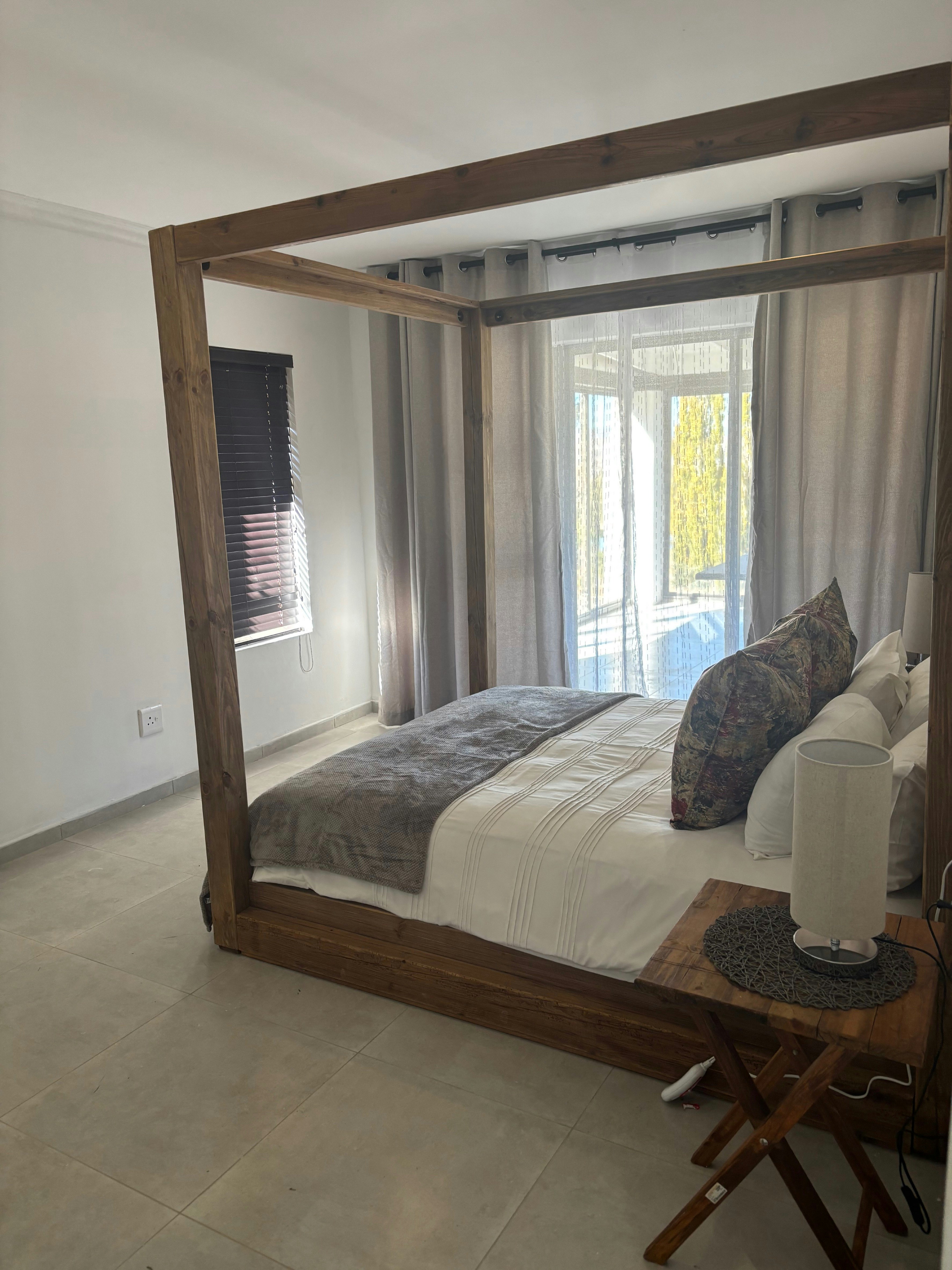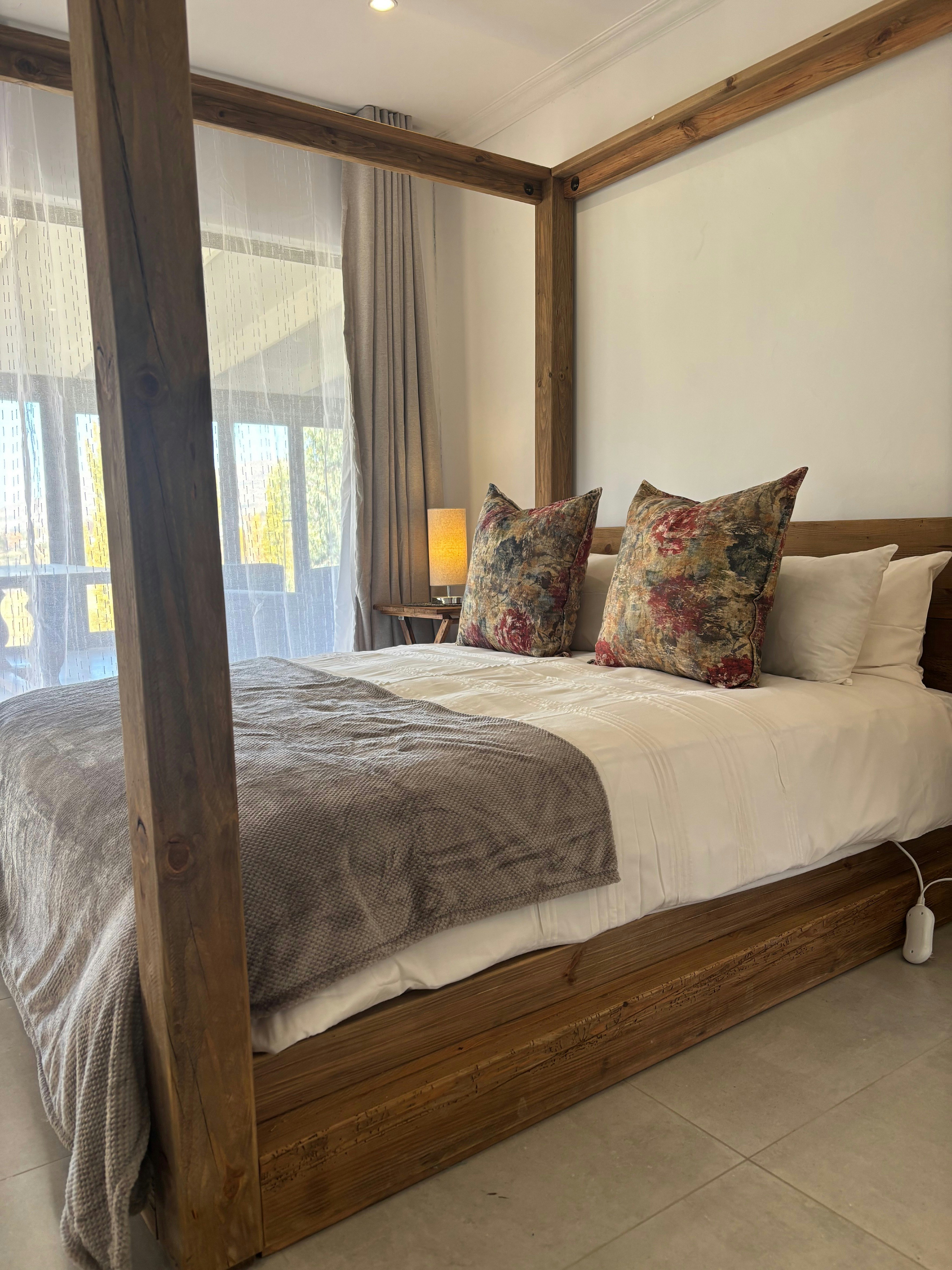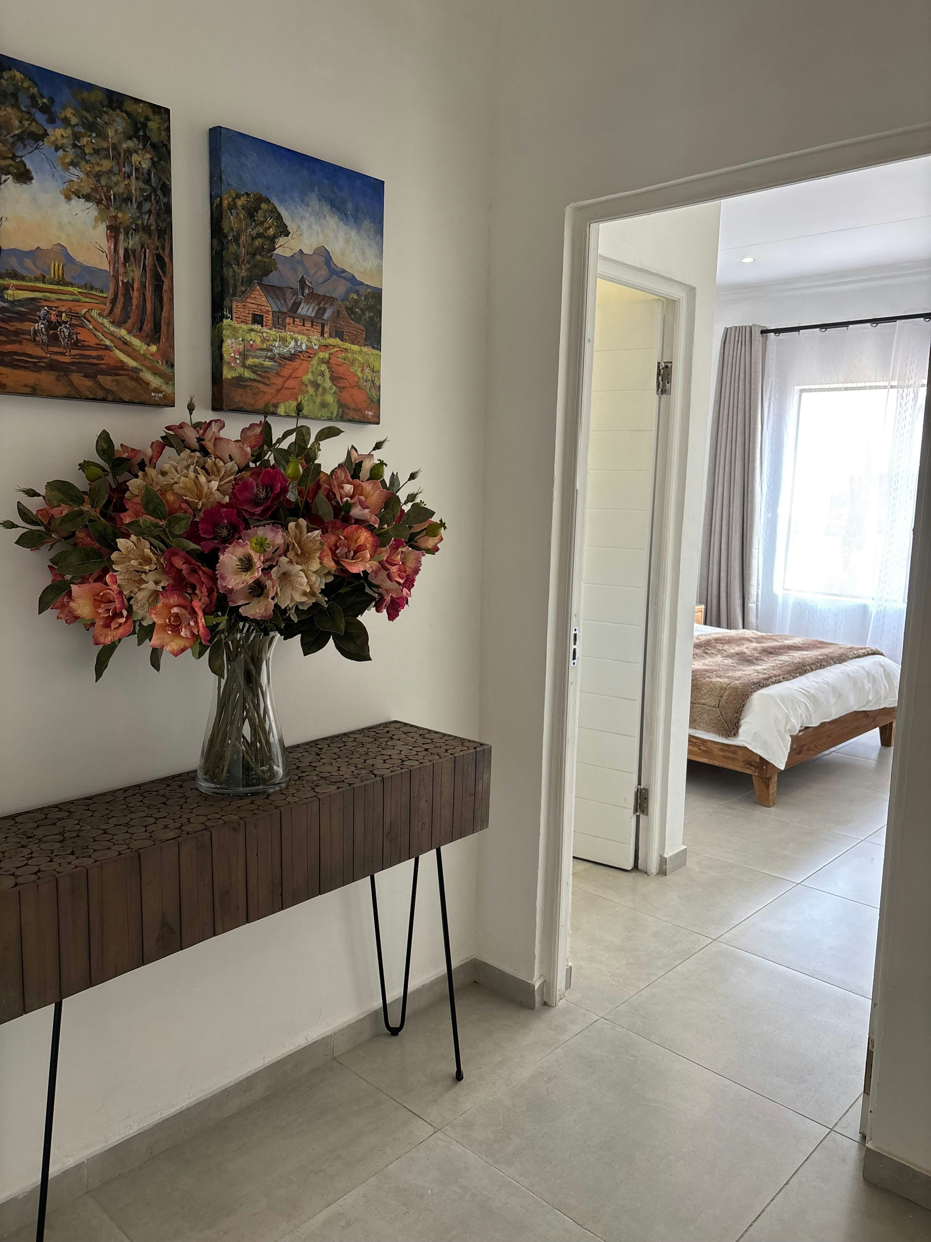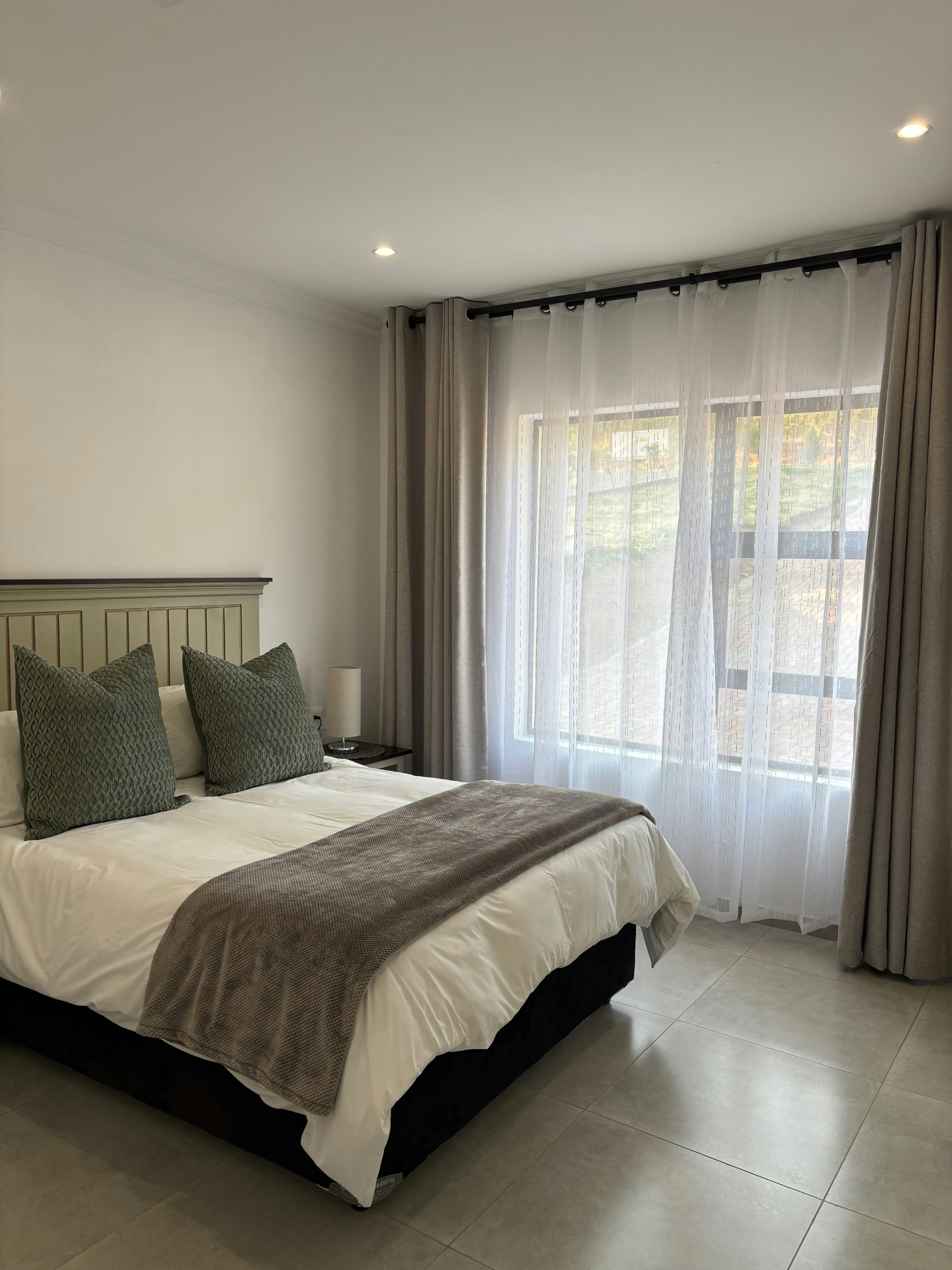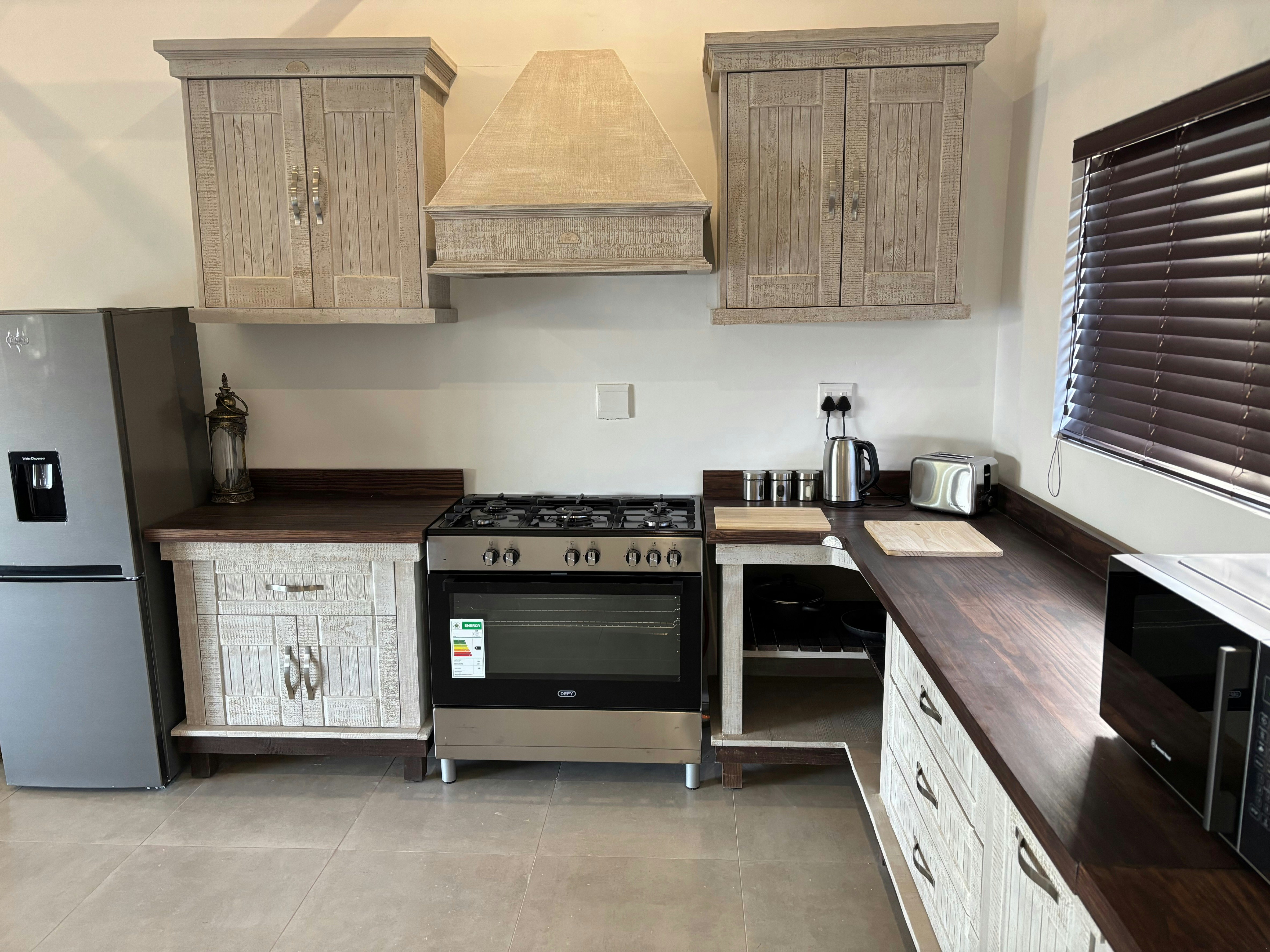 The open-plan living area features a fully equipped kitchen, including a gas stove, oven, microwave, Nespresso machine, fridge-freezer, cutlery, and crockery. The lounge area offers comfortable seating, a smart TV with Netflix and Showmax, free Wi-Fi, and breathtaking views from every angle.
