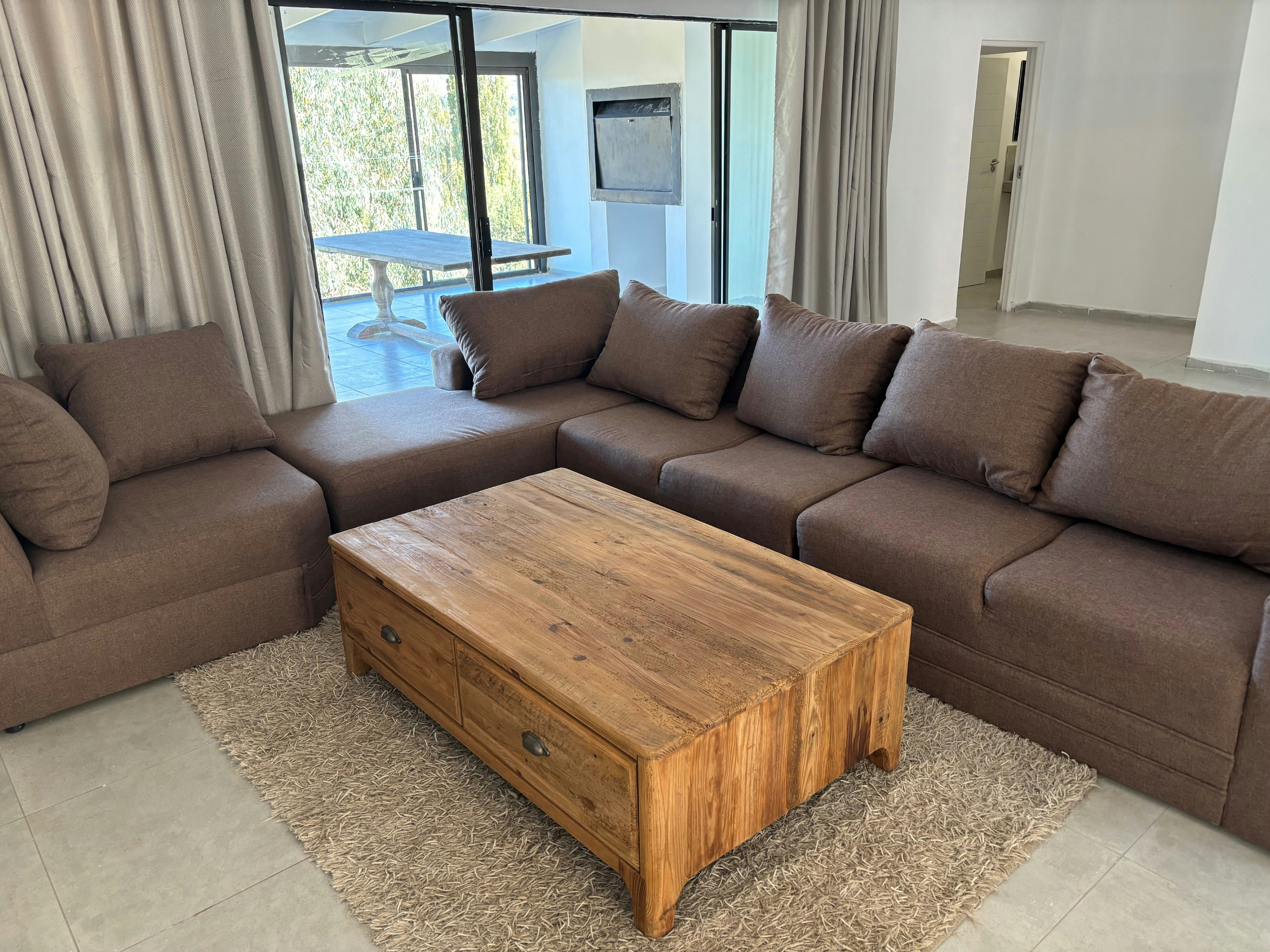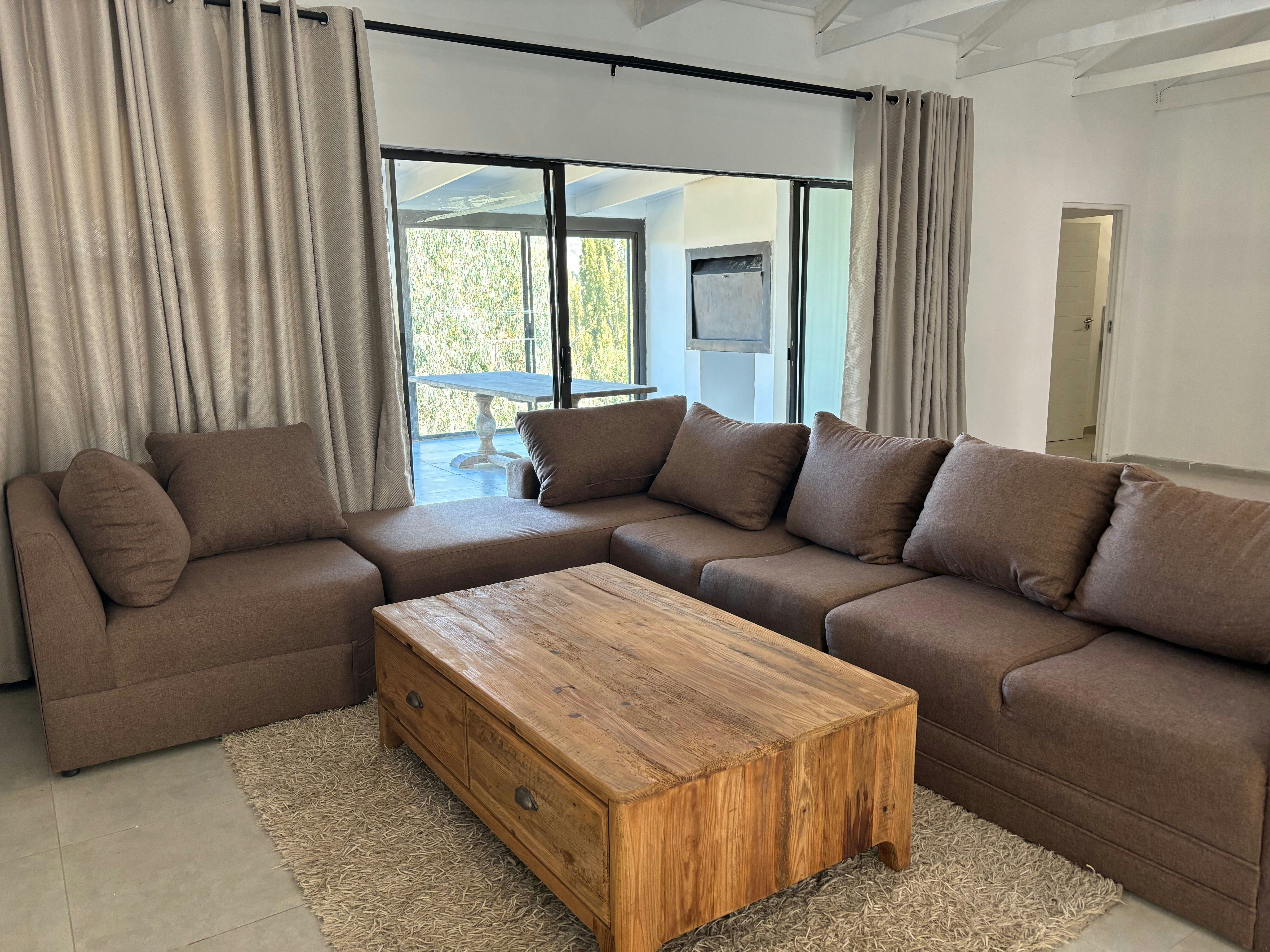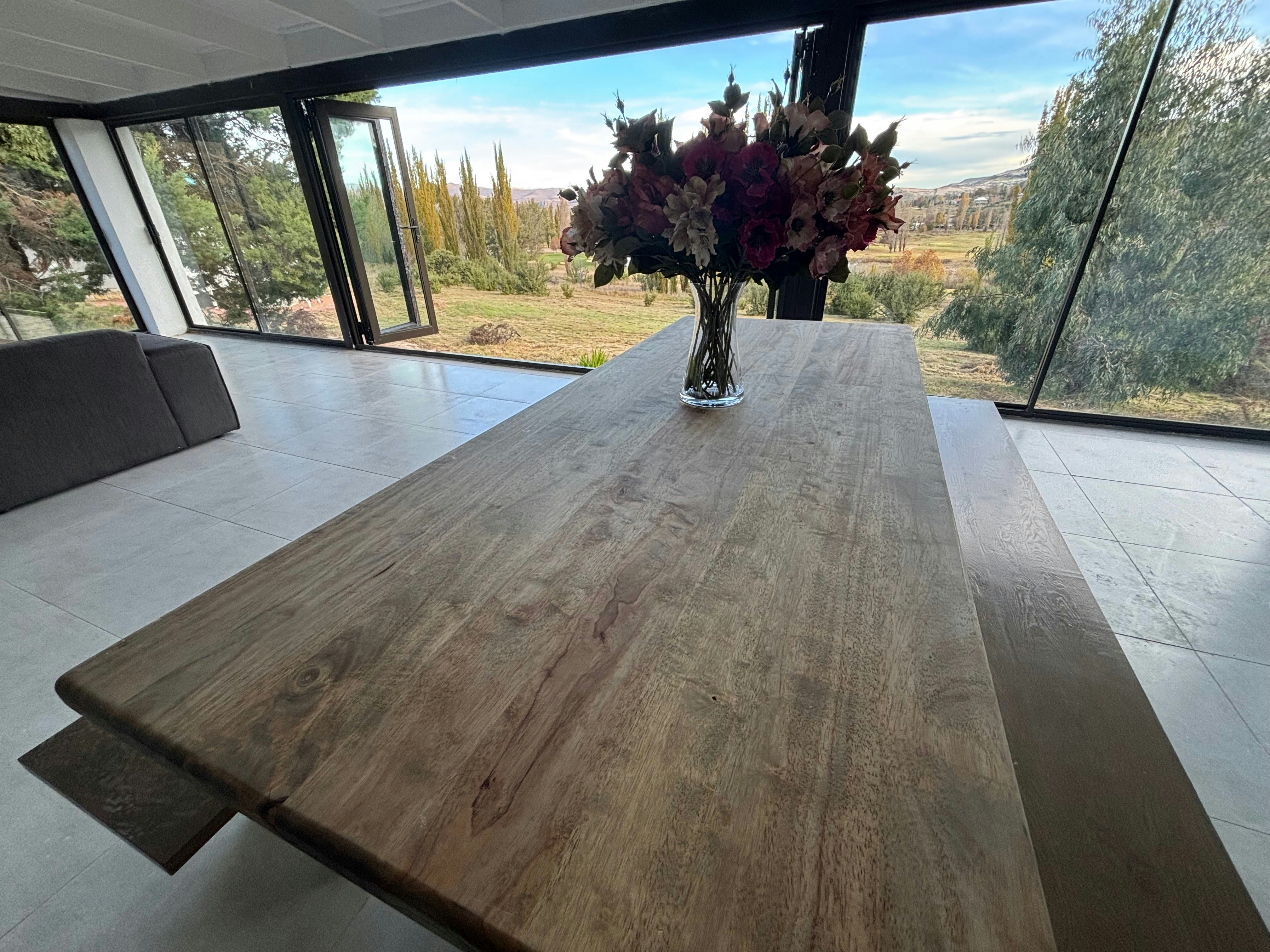 Guests can relax on the spacious enclosed patio, which includes a six-seater dining table—perfect for enjoying meals while taking in the scenery.