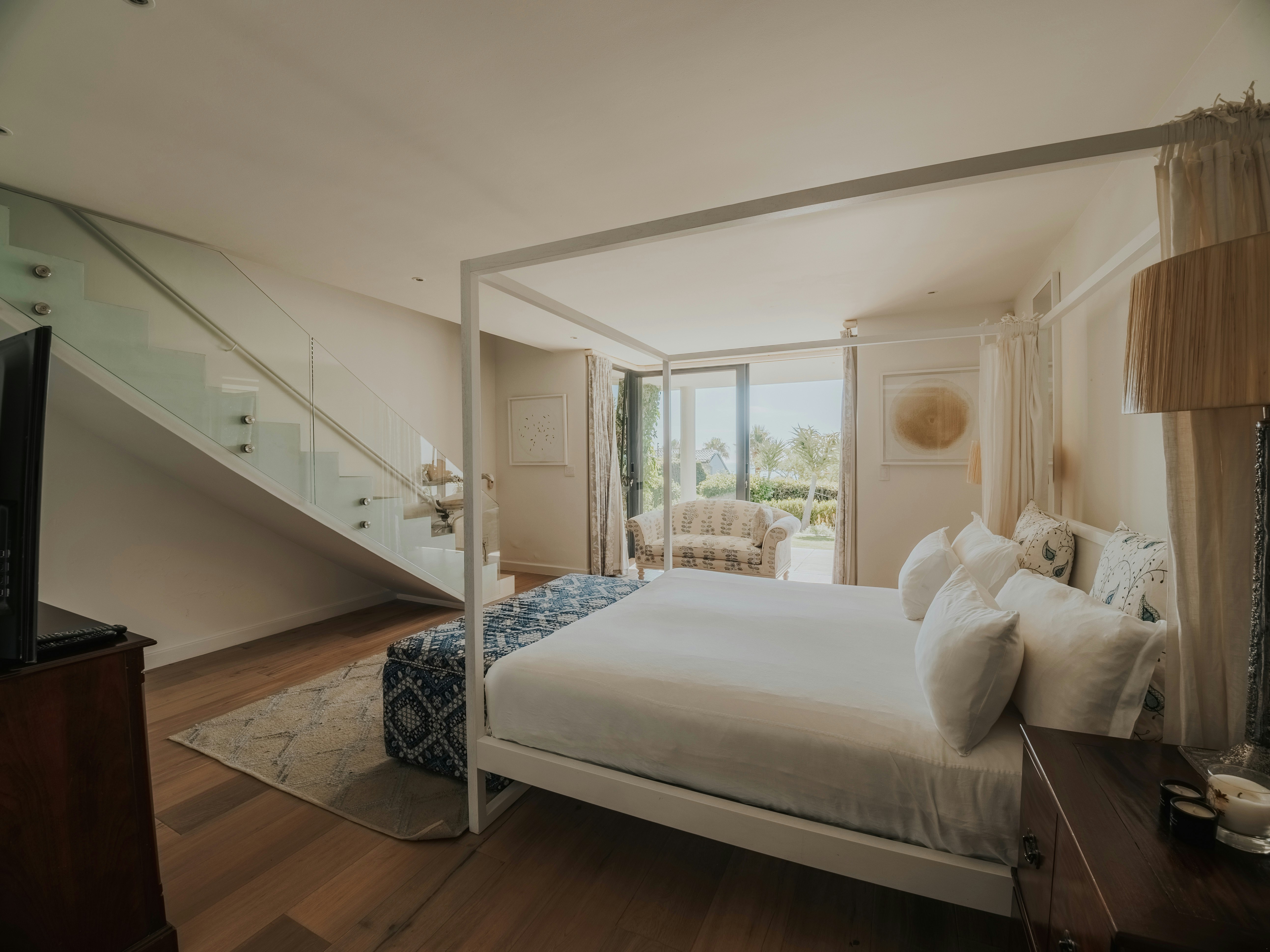 Hierdie pragtige villa bied slaapplek aan 10 volwassenes en 2 kinders en beskik oor 5 slaapkamers met see-uitsigte en en suite-badkamers. Die hoofsuite is op die derde verdieping en beskik oor 'n koningingrootte-bed, 'n en suite-badkamer met 'n bad, asook 'n sitarea met 'n slaapbank vir kinders. Die tweede verdieping het 3 slaapkamers, waarvan 2 'n koningingrootte-bed het en die derde 'n koningingrootte-bed. Die vyfde slaapkamer is op die grondverdieping en het 'n koninggrootte-bed. Elke en suite-badkamer het 'n toilet, wasbak, stort en bad. Alle linne en handdoeke word voorsien.