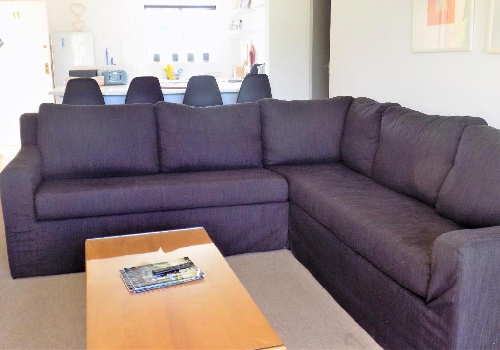 Die kombuis is met 'n yskas-vrieskas, stoof, oond, ketel, broodrooster en koffiemasjien toegerus en het 'n toonbank met stoele. Die sitarea het 'n L-vormige rusbank en platskerm-TV. Gratis WiFi is beskikbaar. Die leefarea lei na 'n onderdakbalkon met gasbraaigeriewe.