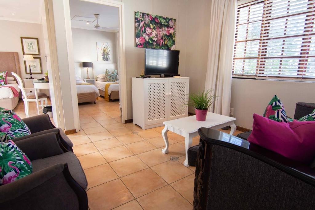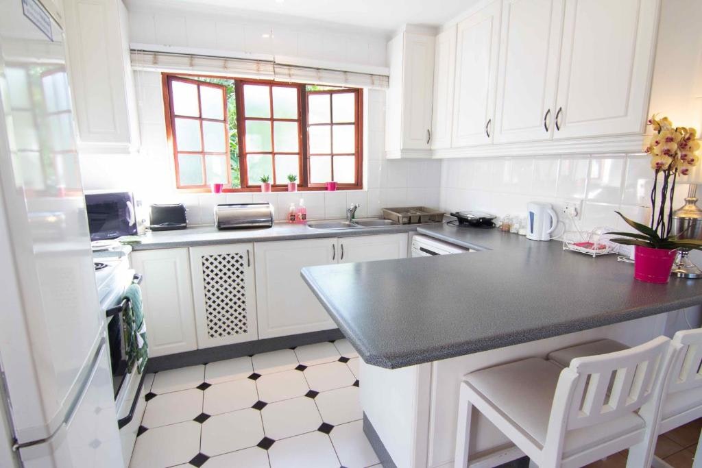 The kitchenette is equipped with a fridge, an oven and stove, and a microwave, and has a breakfast counter with bar stools. There is a TV in the lounge with selected DStv channels, and guests can benefit from complimentary Wi-Fi. In addition, the apartment is equipped with a dishwasher and a washing machine.