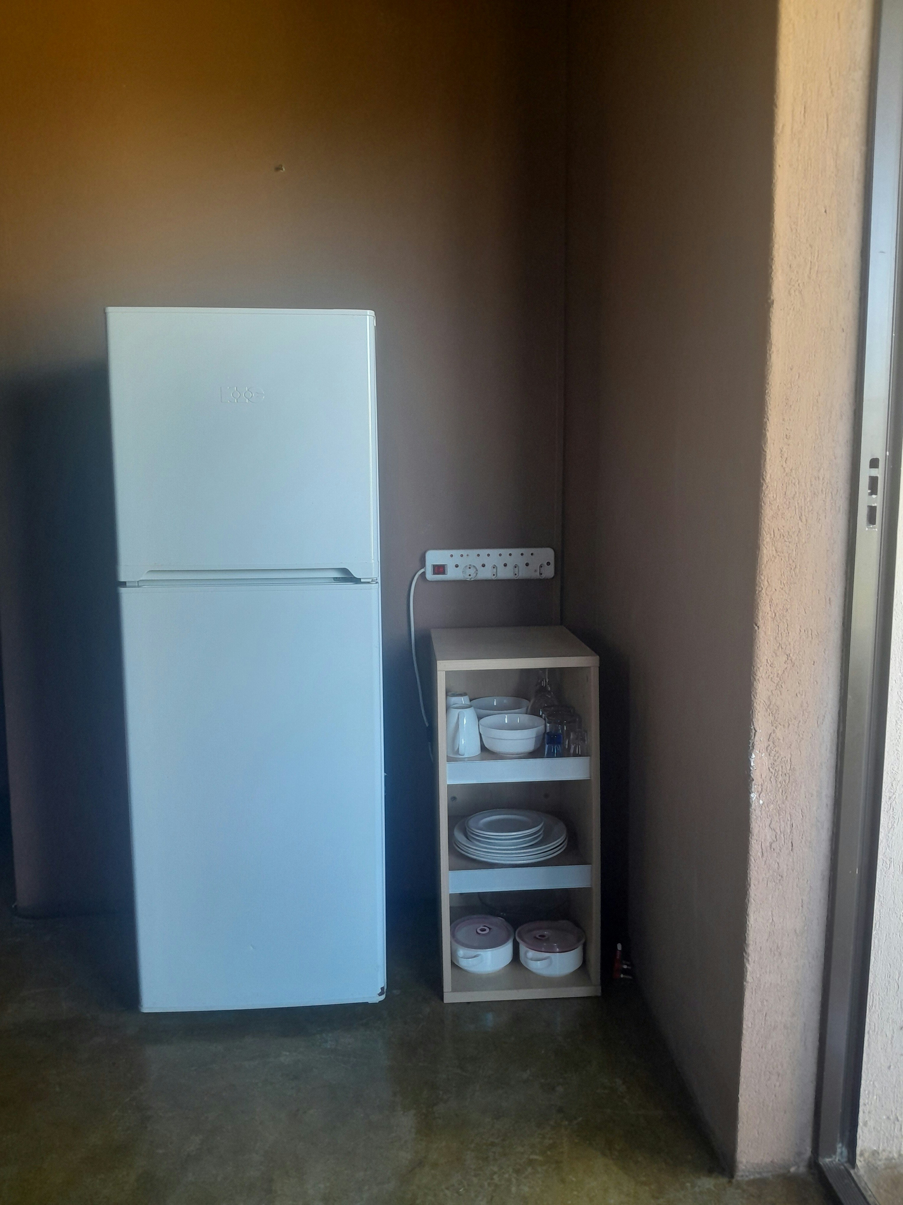 Die kombuisie is met 'n yskas-vrieskas, tweeplaatgasstoof, mikrogolf, eetgerei, breekware, tee- en koffiemaakgeriewe toegerus, en daar is 'n etenstafel. Die woonstel lei na 'n stoep met meubels.