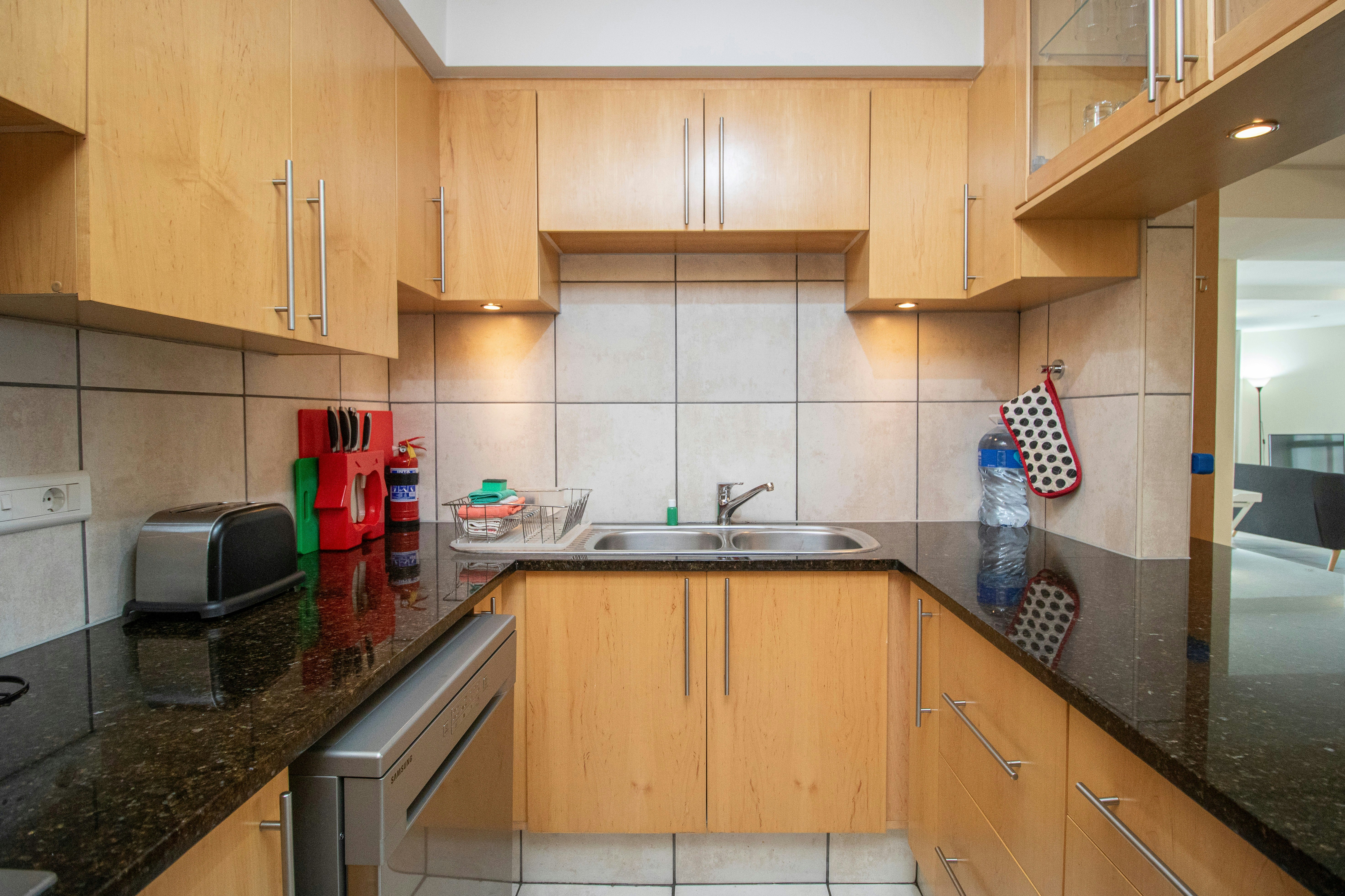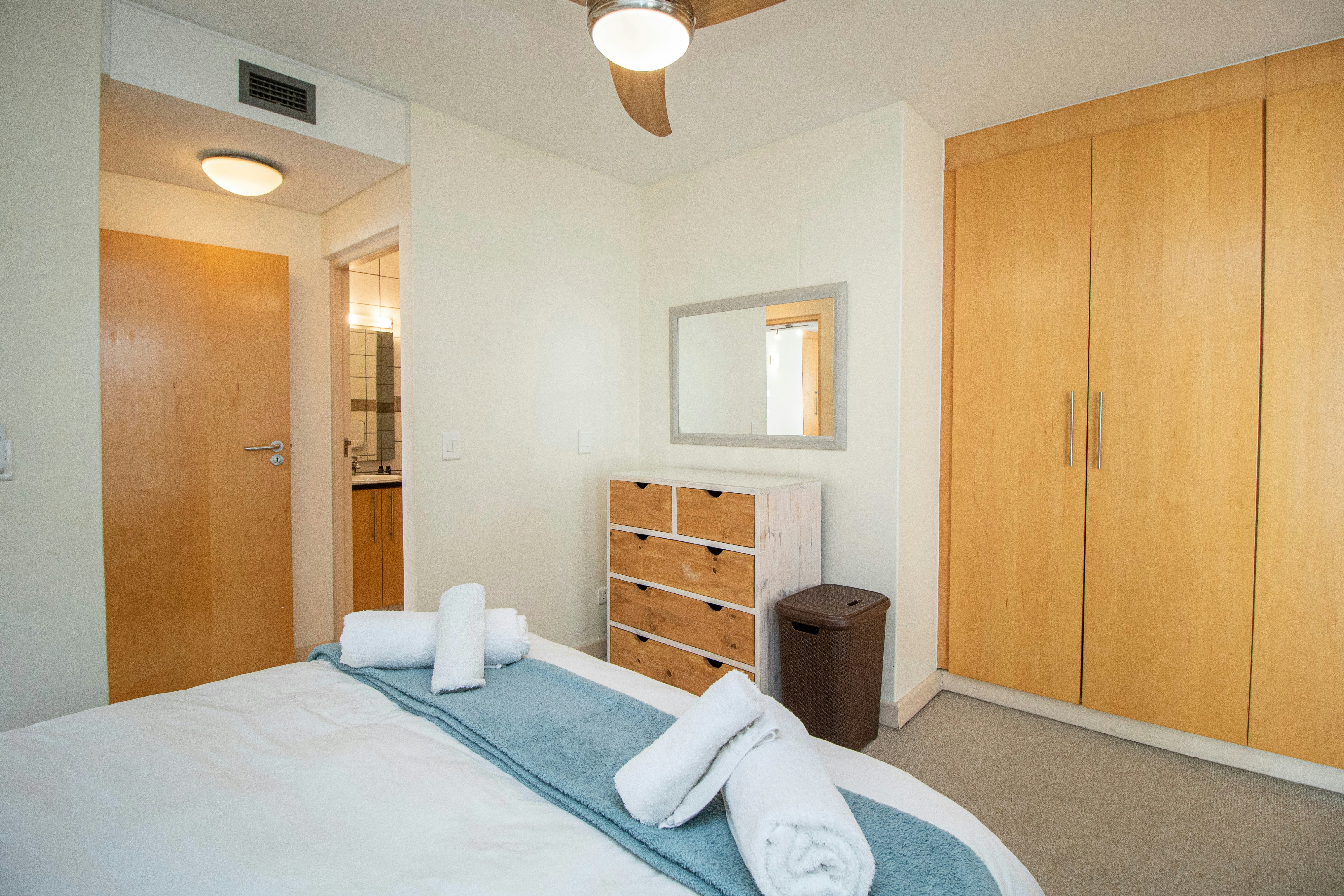 Dié moderne woonstel beskik oor 2 slaapkamers en 2 badkamers. Die hoofslaapkamer het 'n dubbelbed en 'n en suite-badkamer met 'n stort, terwyl die tweede slaapkamer 2 enkelbeddens het. Die tweede badkamer het 'n bad. Linne en badhanddoeke word voorsien.