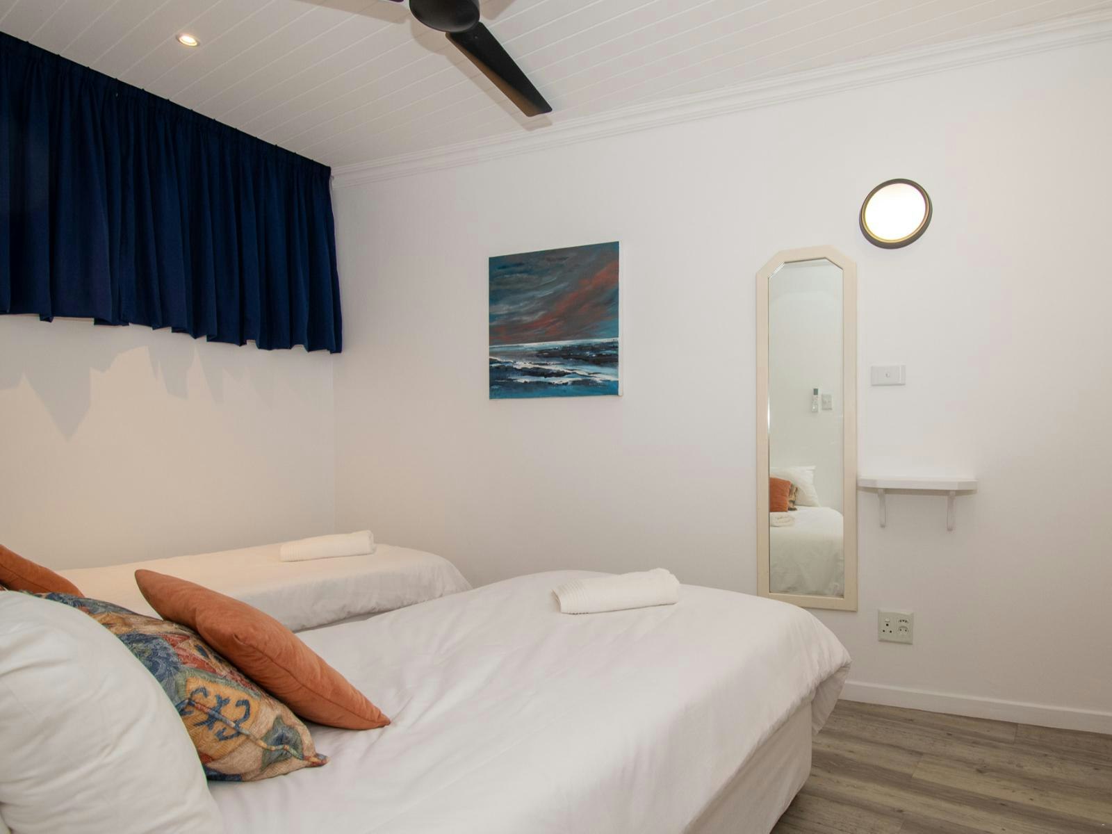 This apartment can comfortably accommodate 4 guests at a time and comprises 2 bedrooms and a bathroom. The main bedroom is furnished with a queen-size bed and the second bedroom contains 2 single beds. A shower, bath, washbasin and toilet are available in the bathroom. All linen and bath towels are provided; however, guests are required to bring their own beach towels.