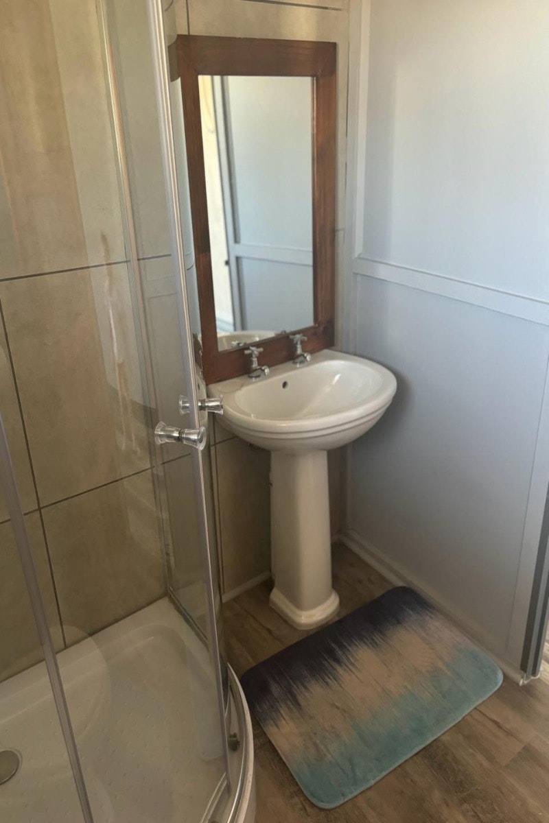 The property features a main house with 3 separate en-suite rooms and 1 family apartment. Each room in the main house is furnished with a double bed and includes an en-suite bathroom fitted with either a bath and shower or a shower only. The rooms are equipped with a TV, a bar fridge, and heat-and-eat facilities, including a microwave, toaster, and kettle. Guests have access to a communal lounge and kitchen with self-catering facilities. The family apartment consists of 2 bedrooms, each with a double bed, and guests share a separate bathroom fitted with a shower. The apartment also boasts a living area and a fully equipped kitchen for self-catering.