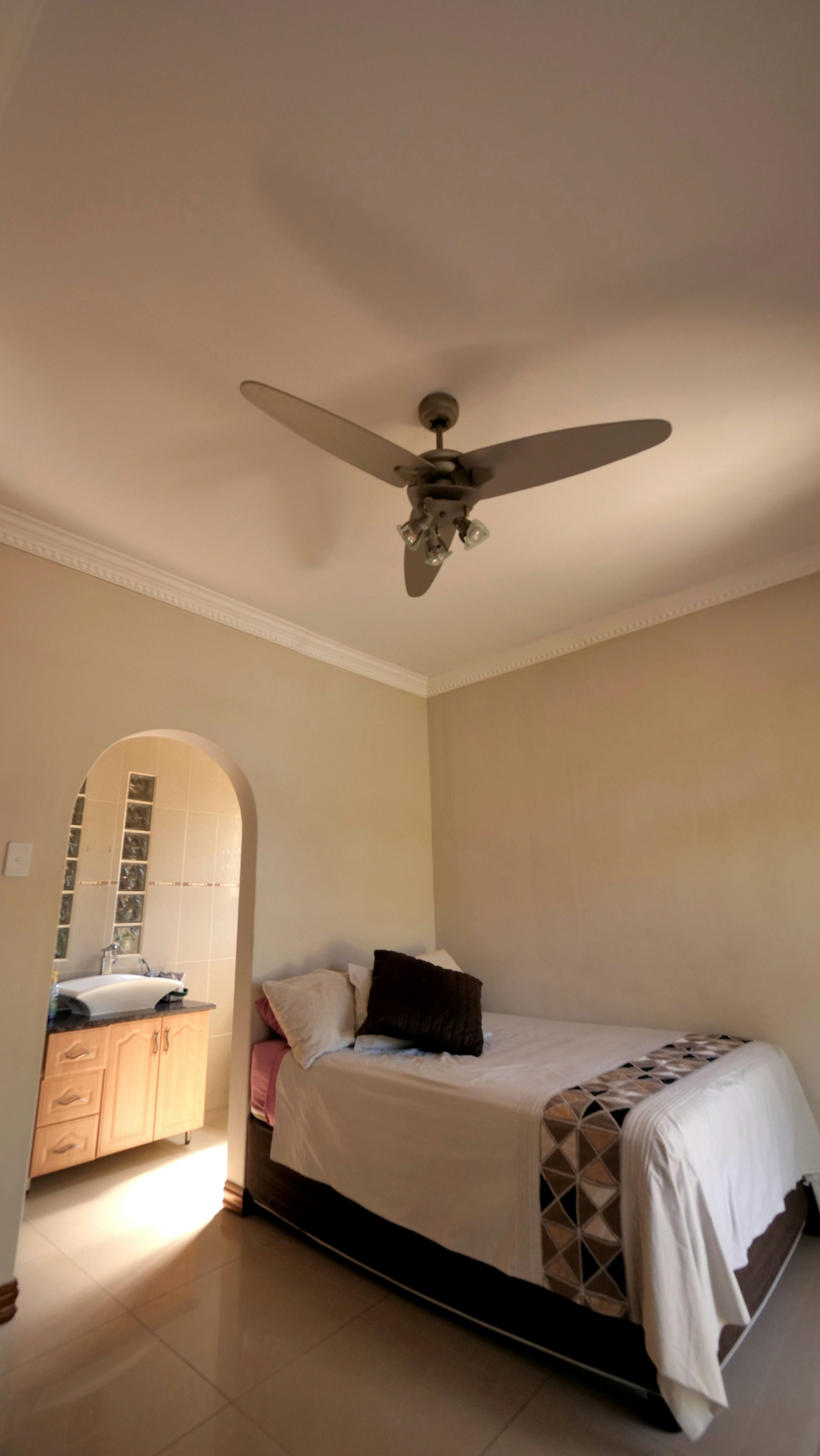 Die huis bestaan uit 4 slaapkamers, elk met 'n dubbelbed, en 4 badkamers, elk met 'n bad en 'n stort. Daar is 'n aparte gastetoilet beskikbaar.