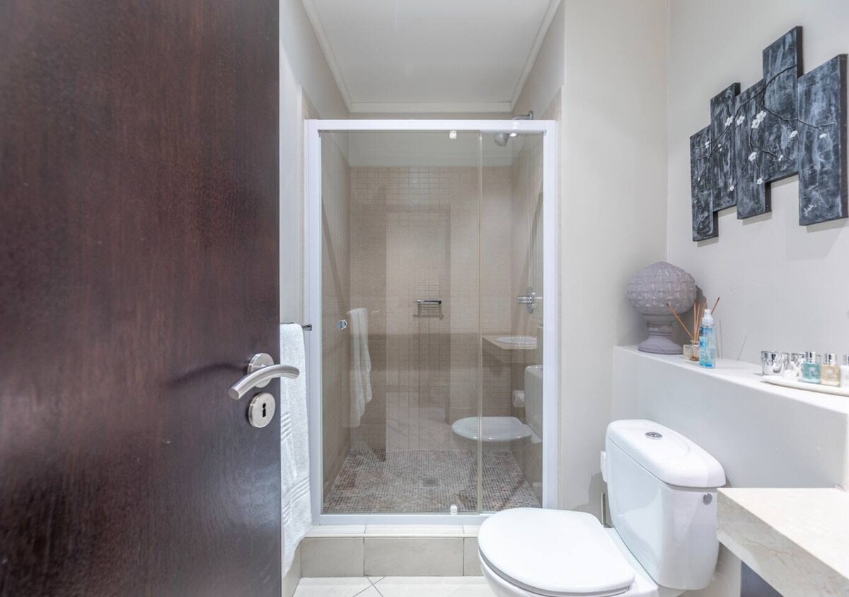 This apartment can accommodate 4 guests and comprises 2 bedrooms and 2 bathrooms. The first bedroom is furnished with a queen-size bed and features an en-suite bathroom fitted with a bath and shower. The second bedroom also has a queen-size bed and makes use of a separate bathroom fitted with a shower. Linen and bath towels are provided.