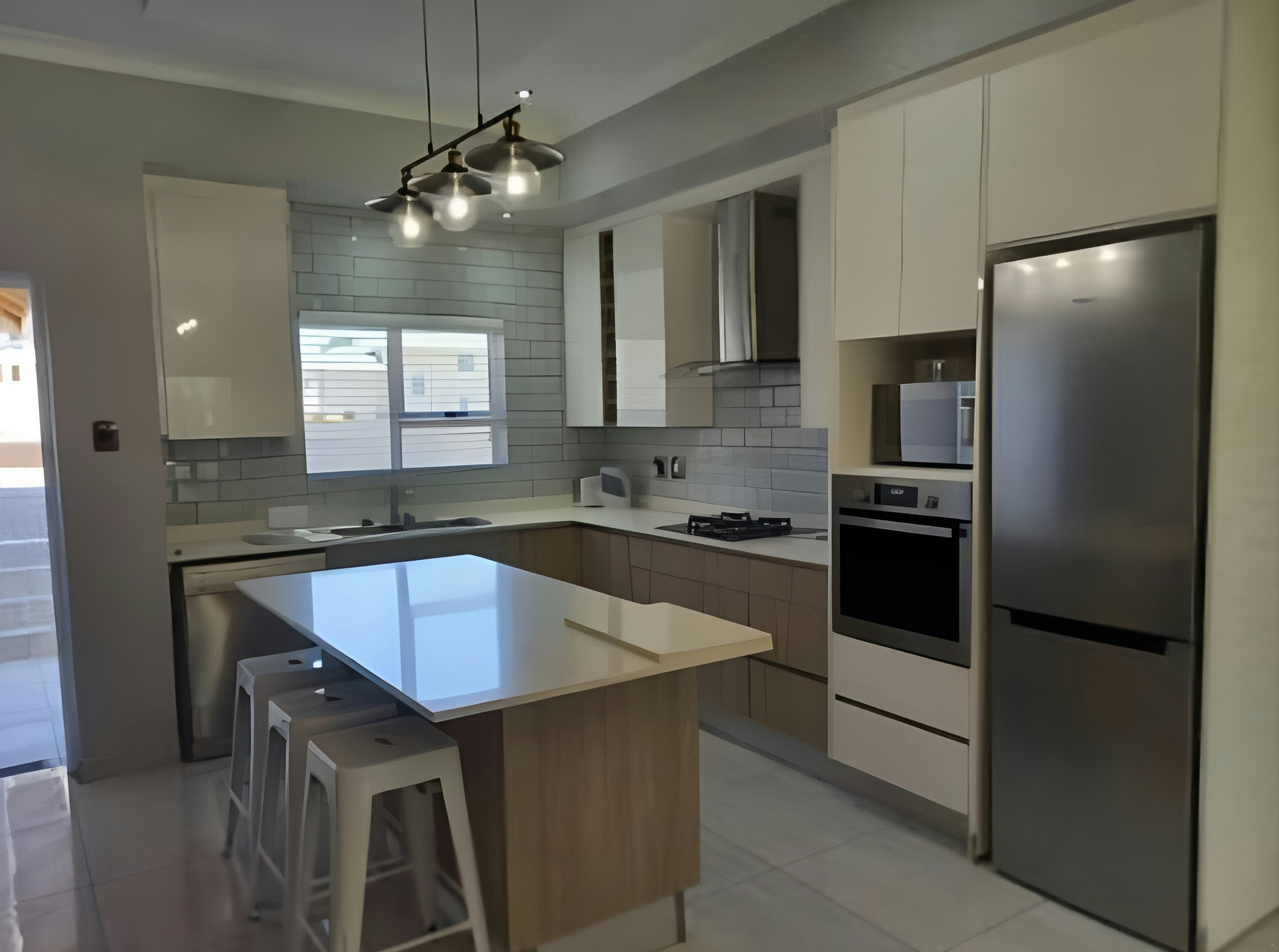 The house features 3 bedrooms and 3 bathrooms. The main bedroom is furnished with a king-size bed and offers an en-suite bathroom fitted with a bath and a shower. The second bedroom has 2 single beds and an en-suite bathroom fitted with a shower-over-bath, a toilet, and a basin. The third bedroom features a king-size bed and an en-suite bathroom fitted with a shower.