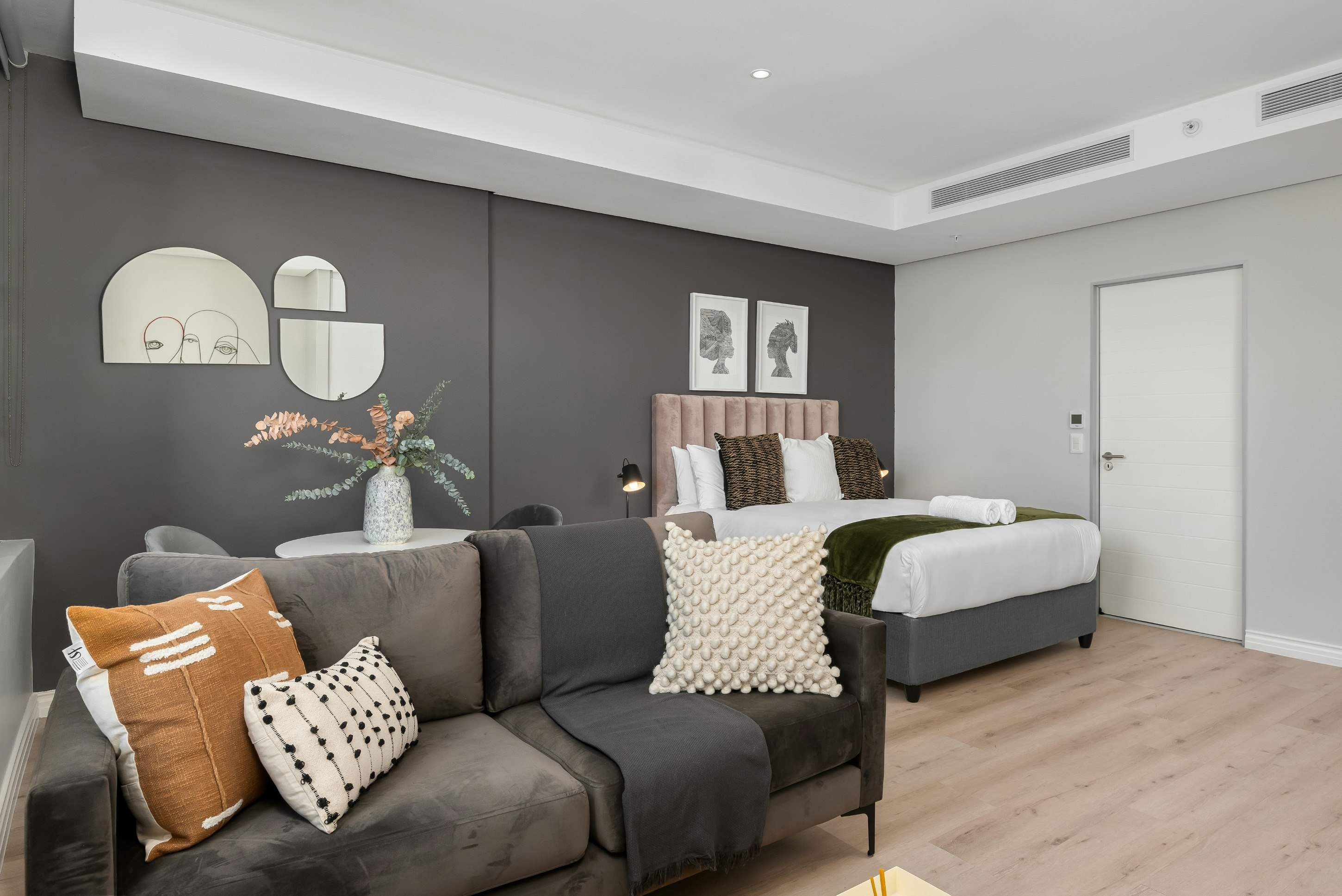 Guests can enjoy access to the communal swimming pool and outdoor gym, and secure on-site parking is provided. The central location places the property within close proximity to the beach, the V&A Waterfront, and a variety of local restaurants and amenities.