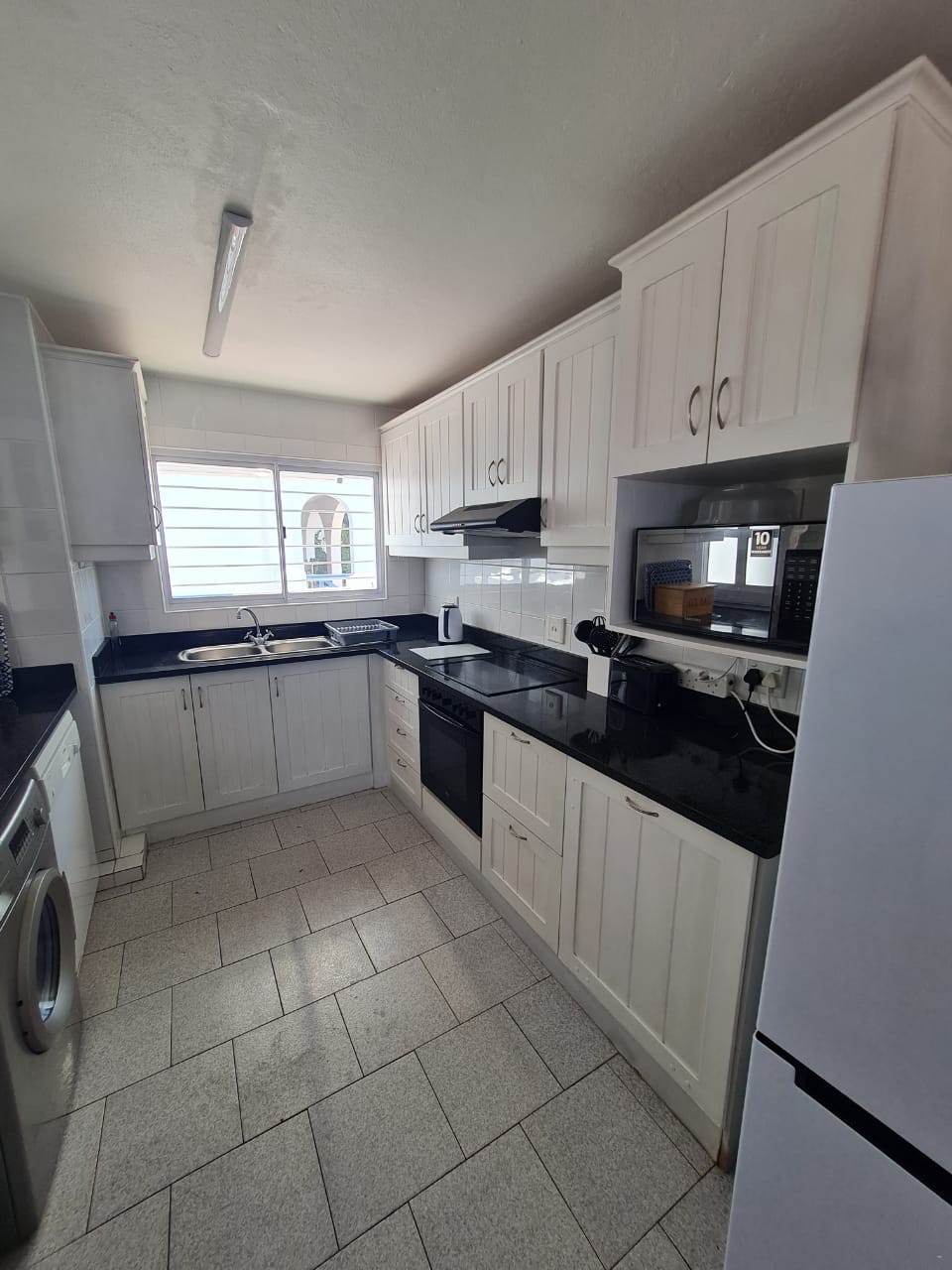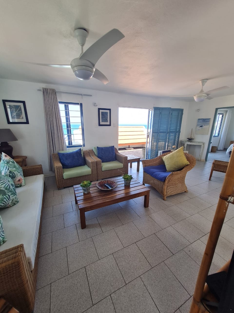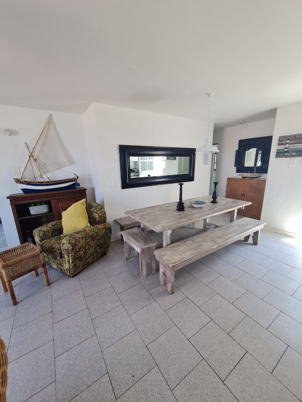 Die kombuis is met 'n stoof, kookplaat, 'n oond, 'n mikrogolf, 'n broodrooster, 'n yskas-vrieskas, 'n skottelgoedwasser, eetegerei, breekware, asook tee- en koffiemaakgeriewe toegerus. Daar is ook 'n wasmasjien en tuimeldroër. Die kombuis lei na die leefarea met 'n etenstafel en gemaklike banke voor 'n platskerm-TV met die volle DStv-pakket. Die sitarea lei na 'n balkon met meubels en 'n uitsig oor die see.