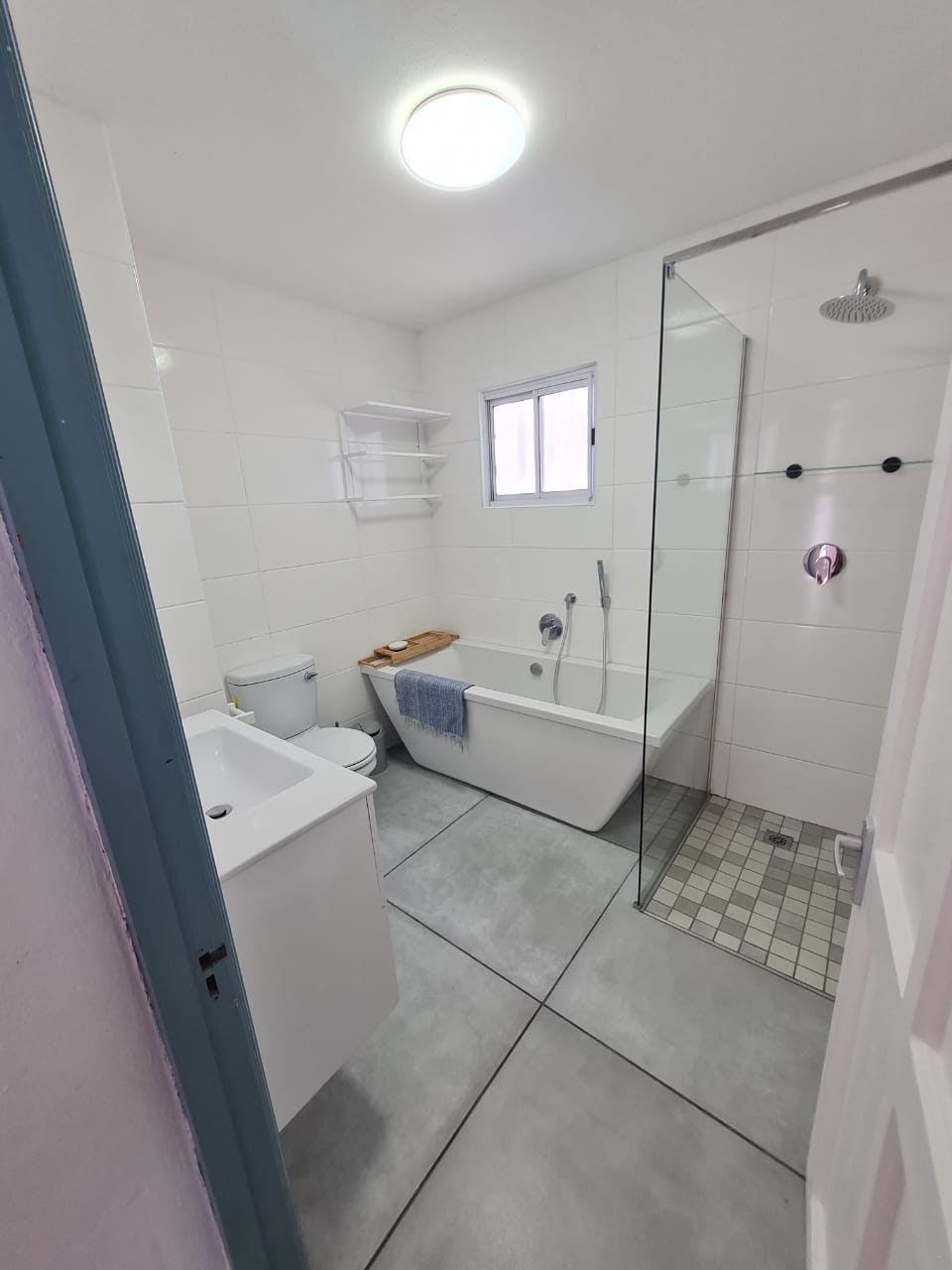 Die woonstel bied slaapplek aan 6 gaste en beskik oor 3 slaapkamers en 2 badkamers. Die hoofslaapkamer het 'n koningingrootte-bed en 'n en suite-badkamer met 'n bad en stort. Die ander slaapkamers het 2 enkelbeddens en die tweede badkamer het 'n toilet, wasbak, bad en stort. Elke kamer het 'n plafonwaaier.
