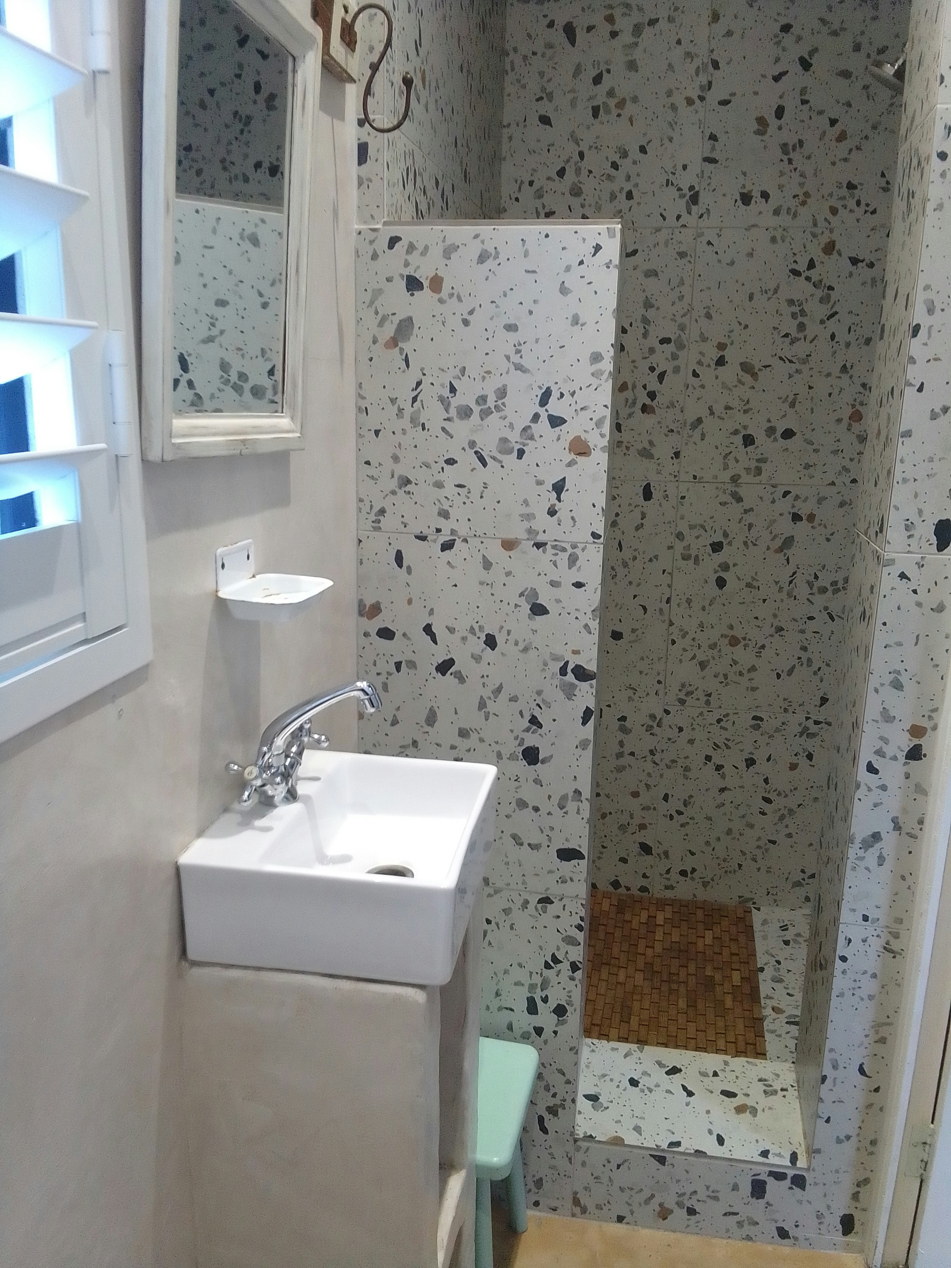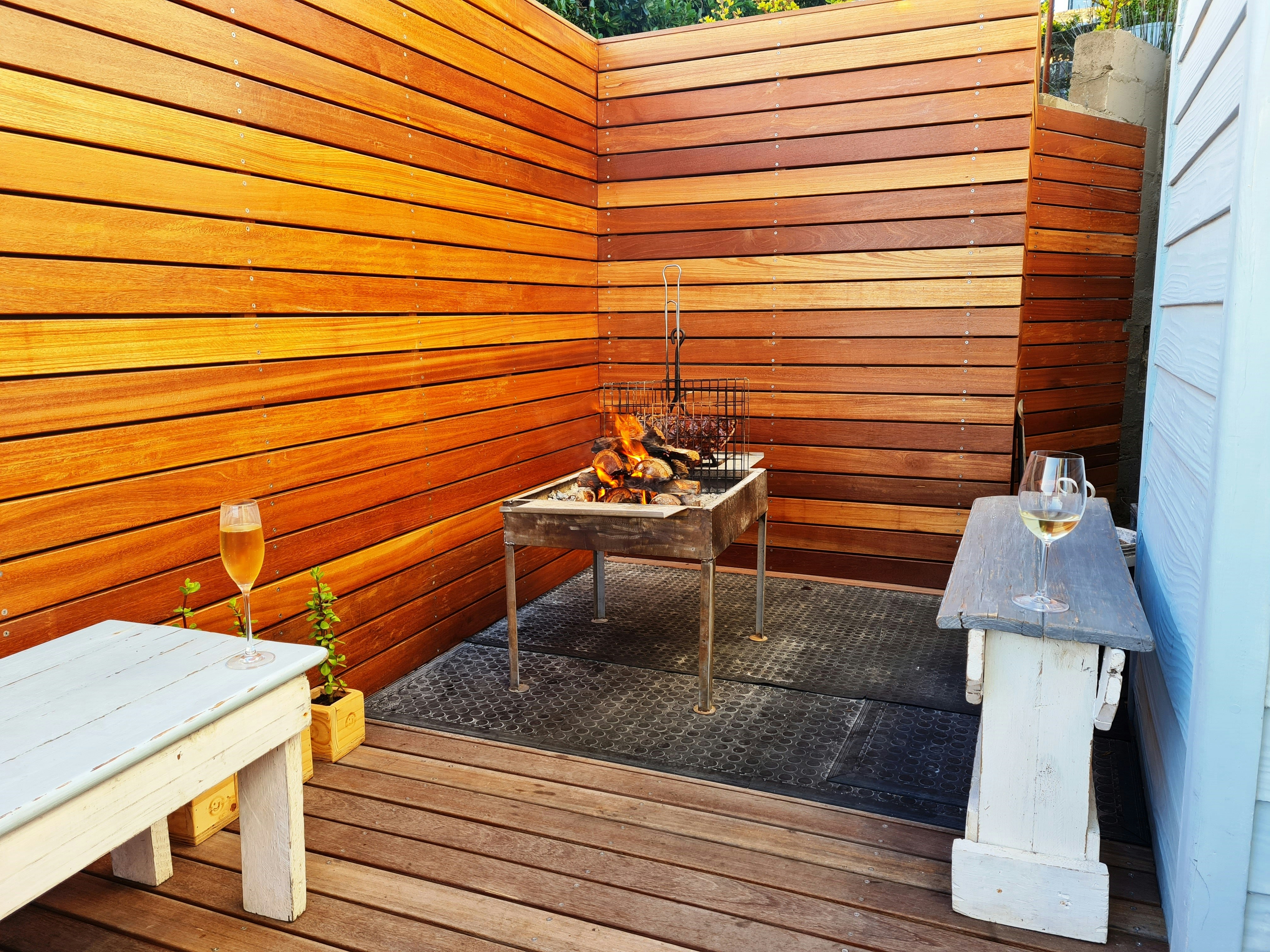 Die kothuis het 'n privaat ingang en 'n oopplan-leefarea en -slaaparea, 'n badkamer, en 'n kombuisie met 'n yskas, mikrogolfoond en 'n oondjie. Die kothuis lei na 'n stoepie met braaigeriewe en see-uitsigte.