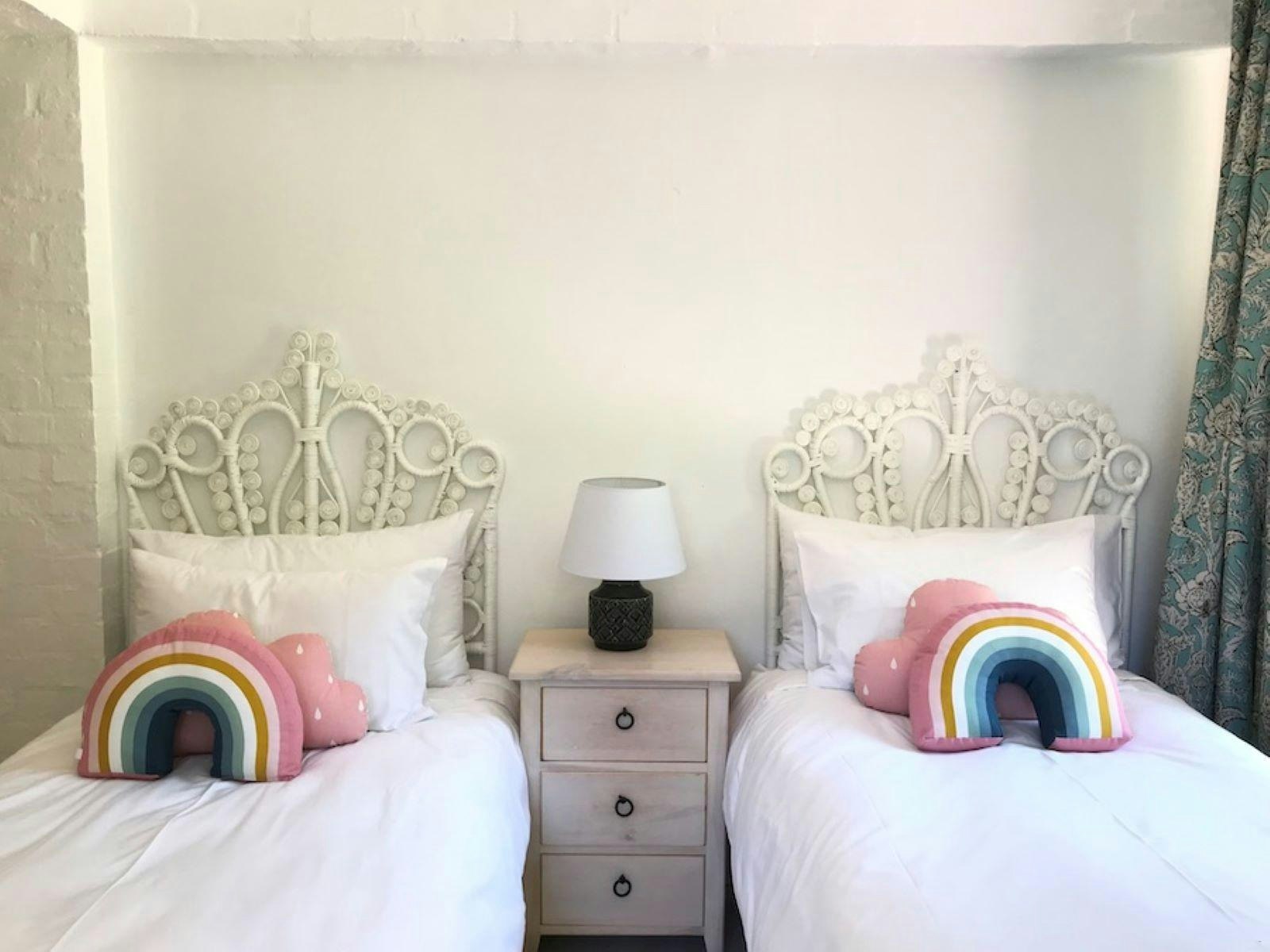 This double-storey home can accommodate up to 10 guests in 5 bedrooms and 7 bathrooms. The first and second bedrooms are each furnished with a king-size bed and both have en-suite bathrooms that are fitted with a bath, shower, washbasin and toilet. The third and fourth bedrooms are furnished with a double bed, and both have access to en-suite bathrooms that are fitted with a shower. The fifth bedroom contains 2 single beds, a cot and a nursery. The 3 shared bathrooms are fitted with a shower. Linen and bath towels are provided.