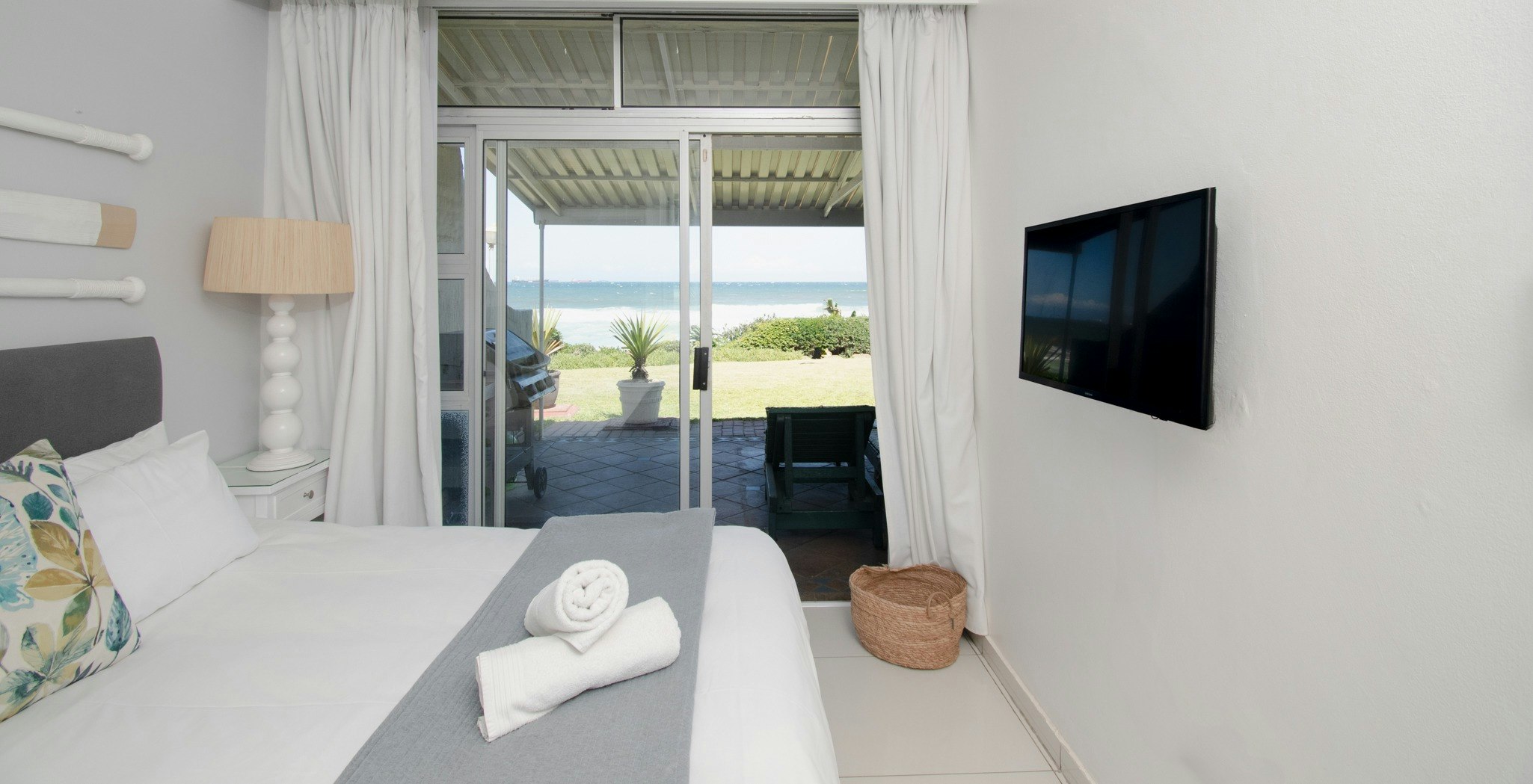 The open-plan kitchen is well equipped with a fridge, air fryer, oven and stove, microwave, kettle, and toaster. The lounge, which leads to a patio with sea views, is equipped with a smart TV, DStv, and comfortable seating. Guests can enjoy a braai on the patio or relax on the sun lounger in the garden, soaking up the ocean breeze.