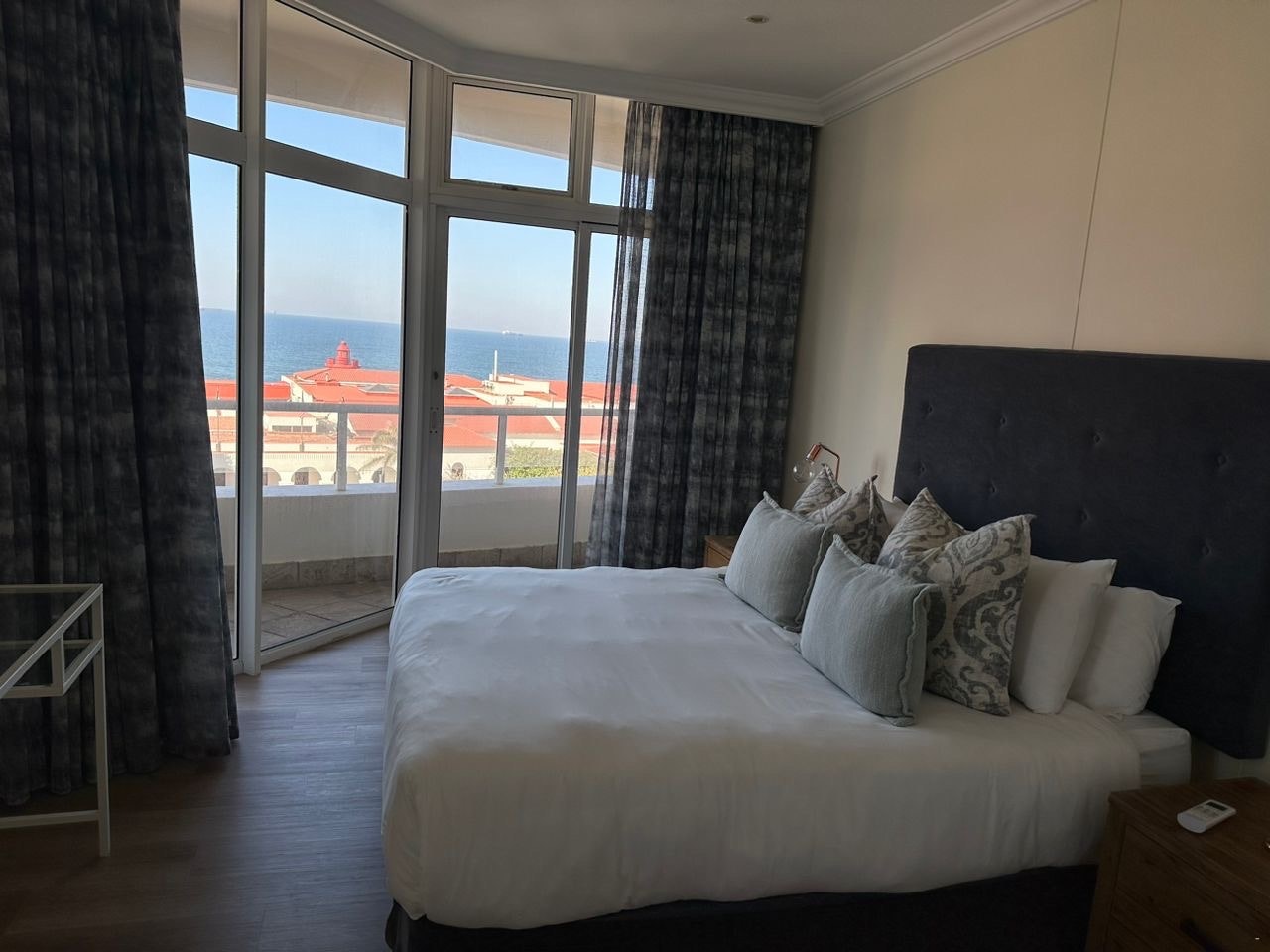 Sliding doors open up onto a balcony with more outdoor seating offering breathtaking views of the ocean, ideal for meals. Guests have access to a communal braai area, and during summer days, a refreshing pool awaits guests, offering a rejuvenating respite from the heat. Secure parking available on the premises offers peace of mind throughout your stay.