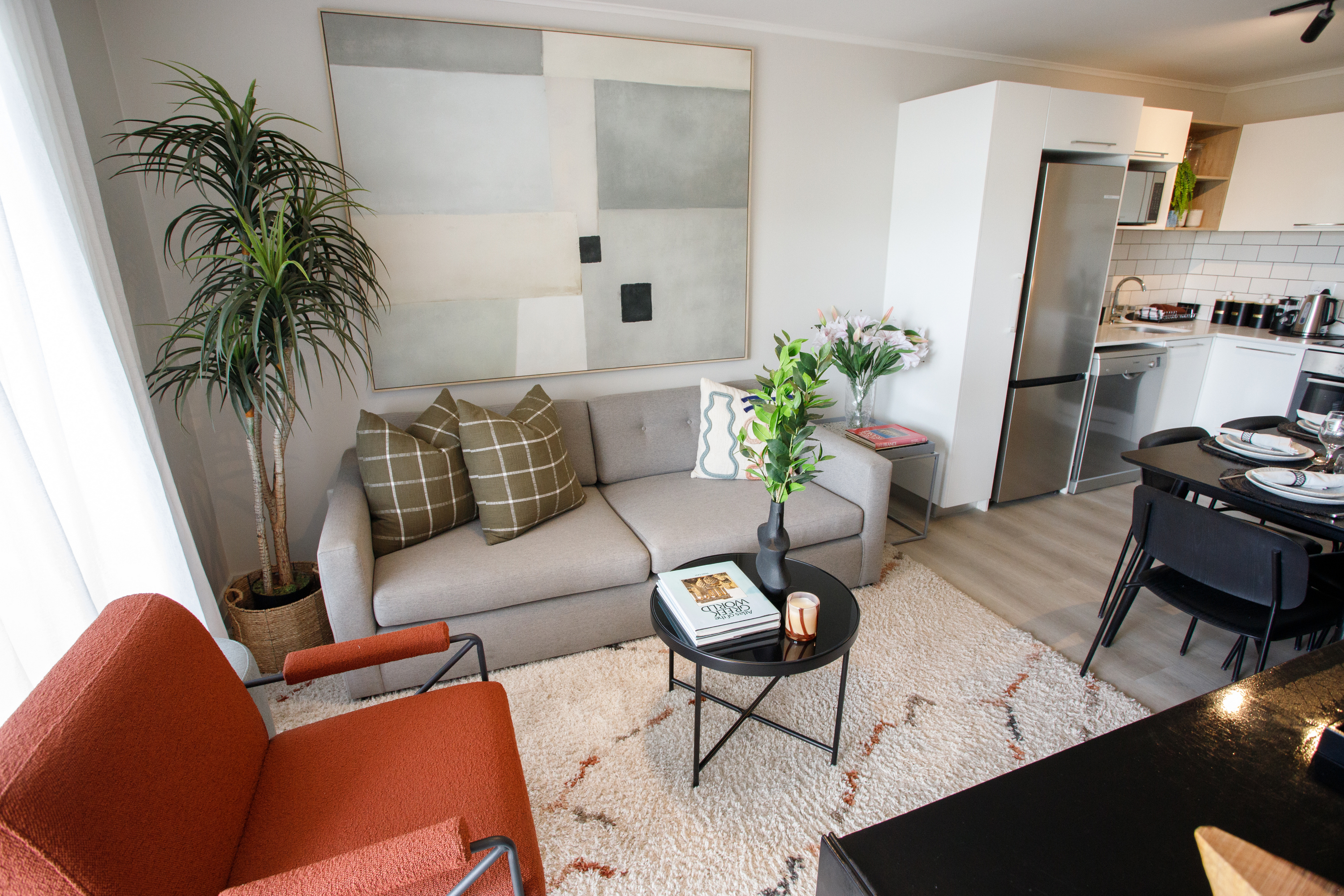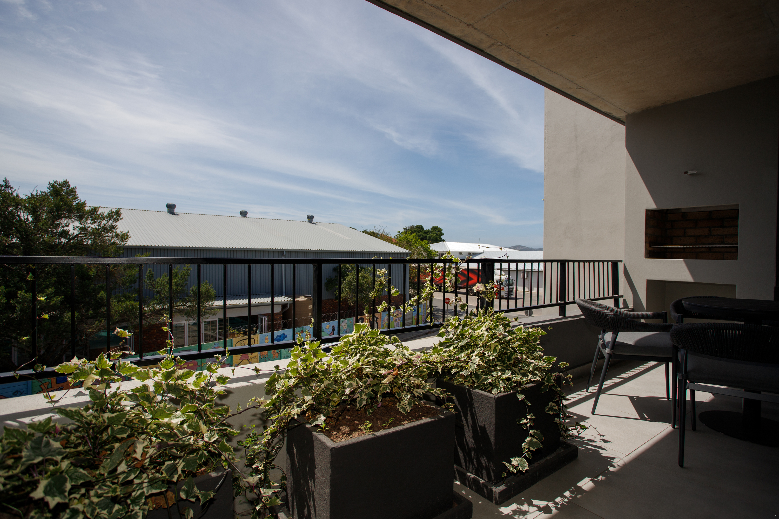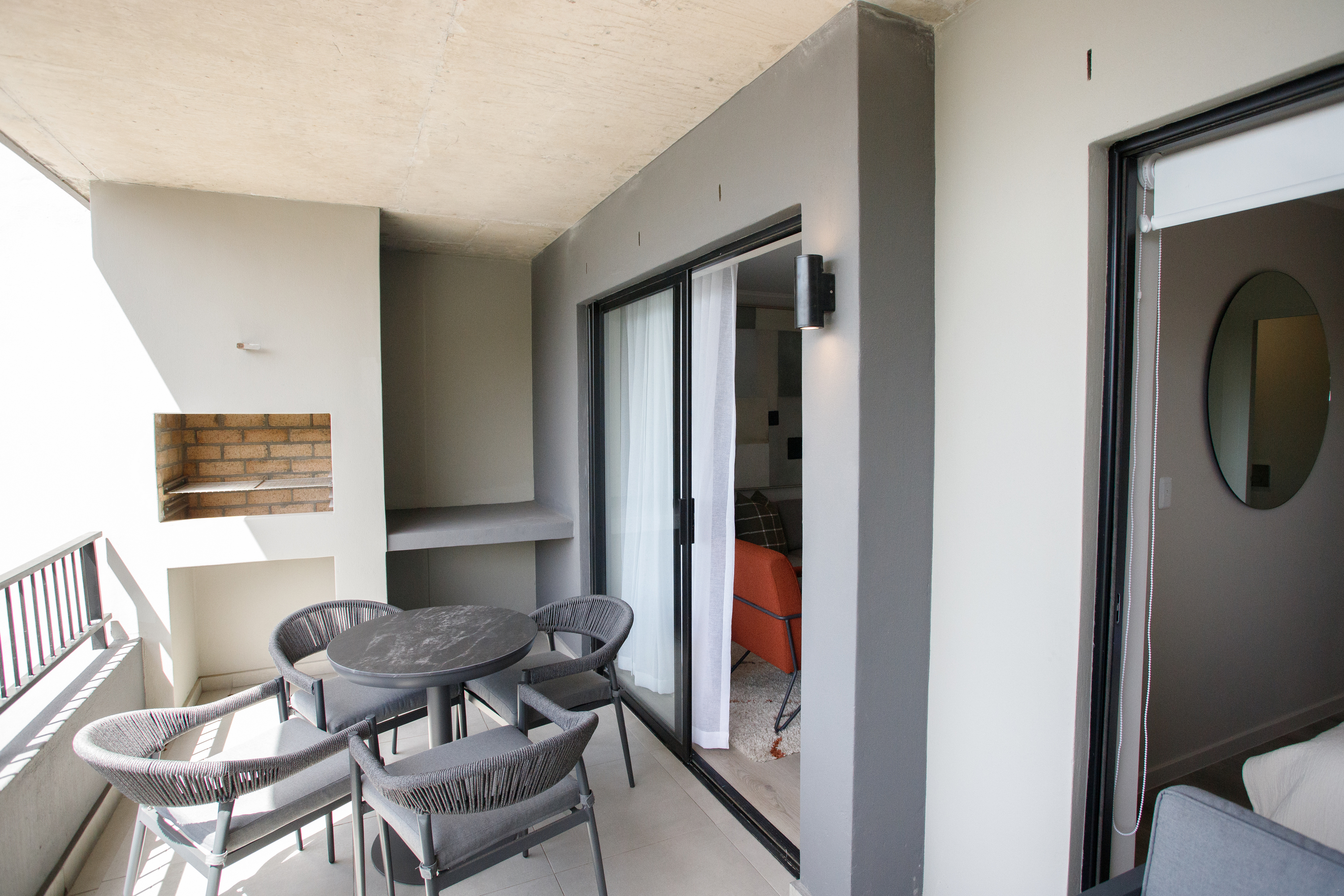 Die leefarea lei na 'n balkon met sitplek en 'n ingeboude braai, perfek vir oggendkoffie, skemerkelkies of om bloot die uitsigte oor die omgewing in te neem. Gaste kan ook toegang geniet tot die gebou se verhitte swembad, sondek en veilige parkering op die perseel.