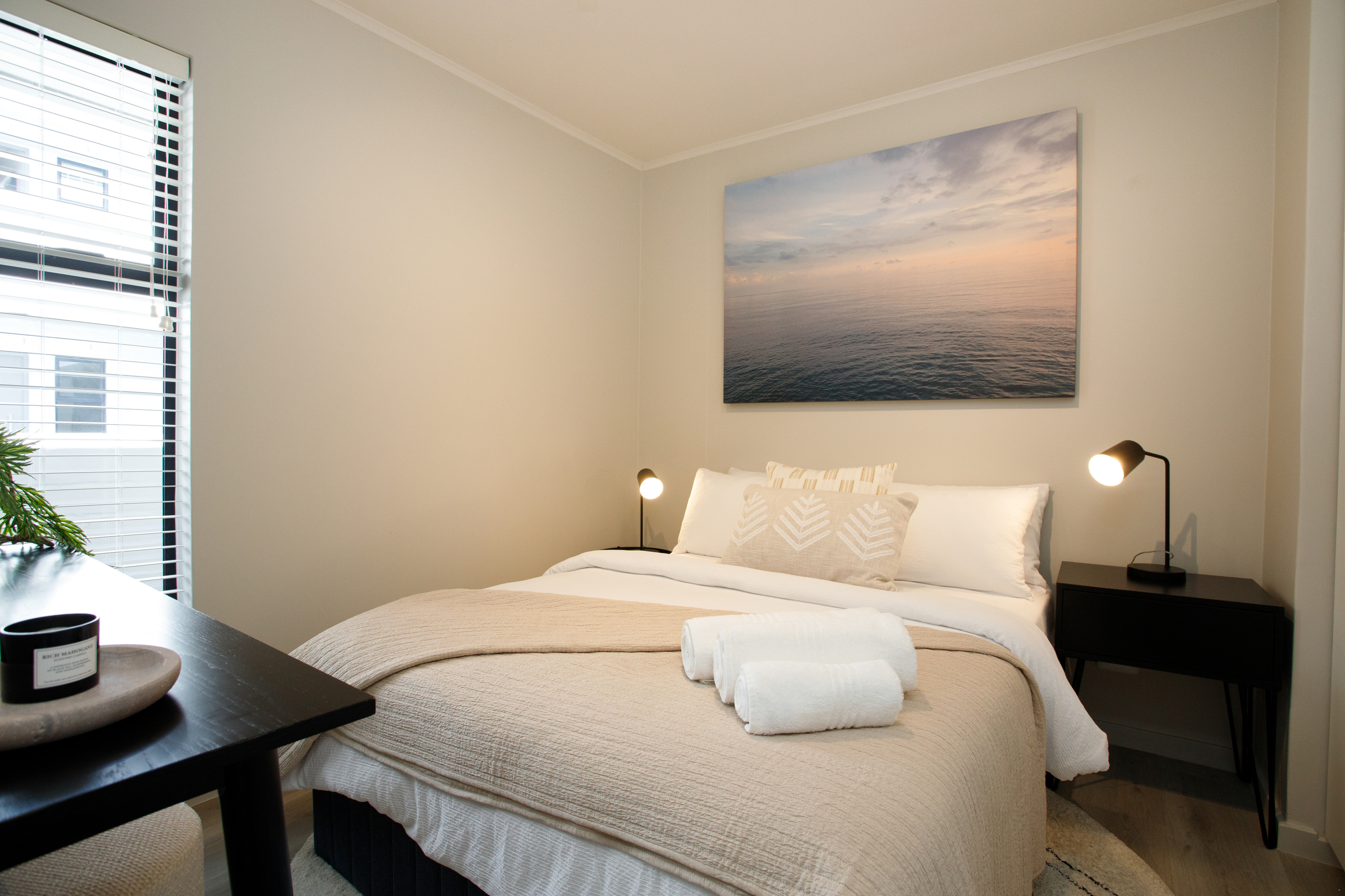 Hierdie woonstel bied slaapplek vir tot 4 gaste en bestaan uit 2 slaapkamers en 2 badkamers. Die eerste slaapkamer is gemeubileer met 'n koningingrootte-bed en 'n ingeboude kas, en beskik oor 'n en suite-badkamer met 'n stort. Die tweede slaapkamer het ook 'n koningingrootte-bed en 'n ingeboude kas, en maak gebruik van 'n aparte badkamer met 'n stort bo die bad. Linne en badhanddoeke word voorsien.