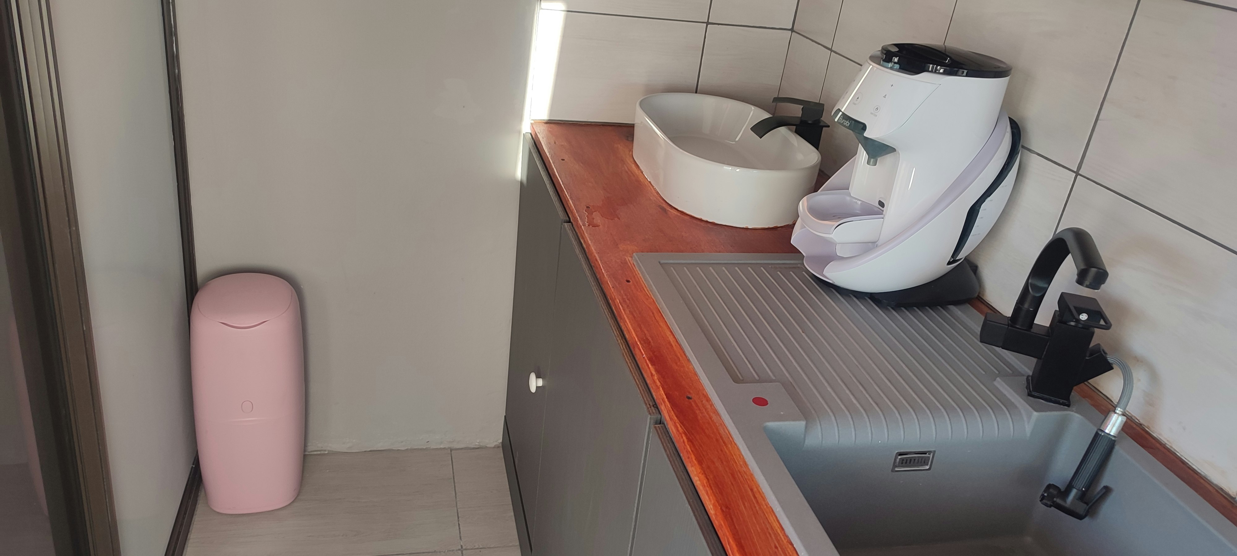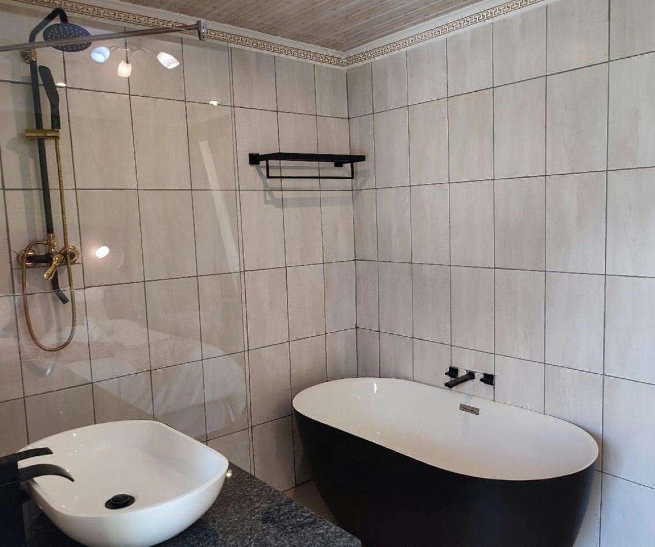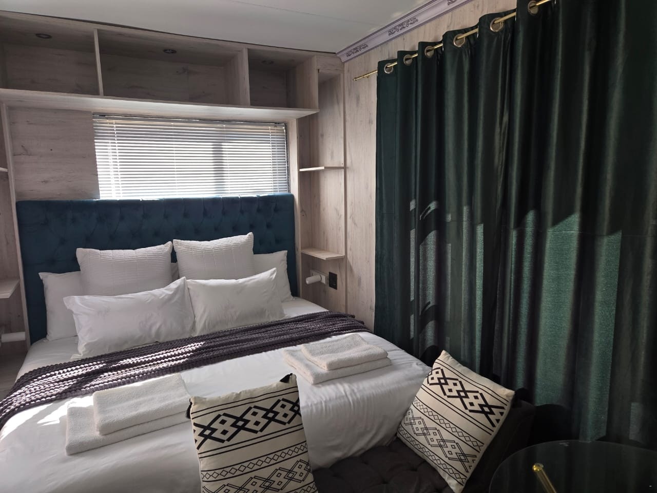 The open-plan living area features a separate kitchen fully equipped with a gas stove, electric oven, air fryer, microwave, fridge-freezer, ice machine, cutlery and crockery as well as a wine cooler. For guests’ convenience, a washing machine and a dishwasher are available. The lounge has comfortable seating, a child-only single sleeper couch and a Smart TV with Netflix, Showmax and a full selection of DStv channels. Complimentary Wi-Fi is available.