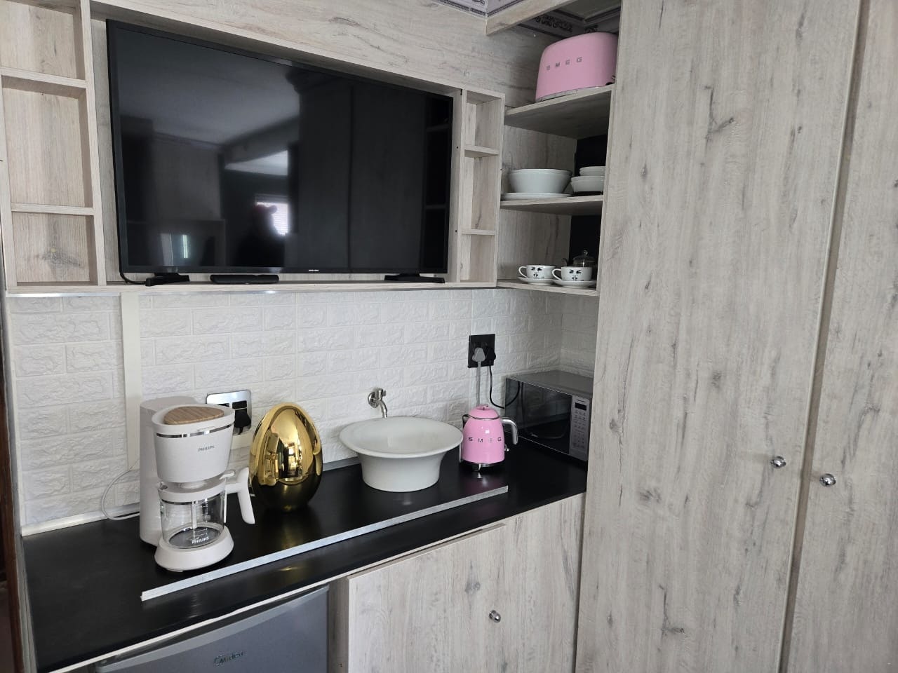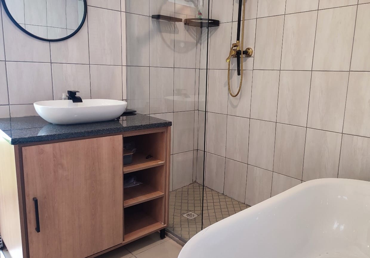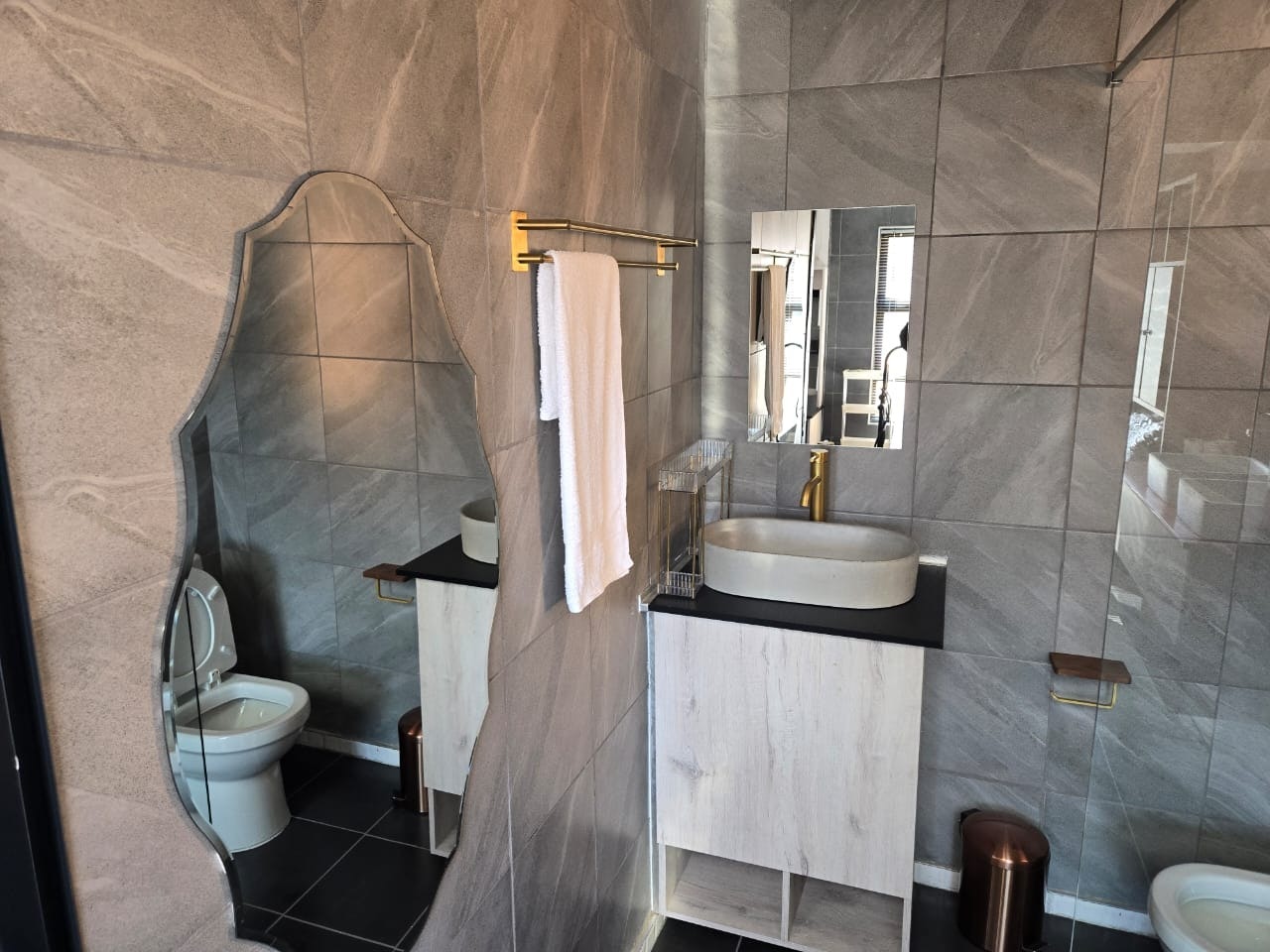 The open-plan living area features a separate kitchen fully equipped with a gas stove, electric oven, air fryer, microwave, fridge-freezer, ice machine, cutlery and crockery as well as a wine cooler. For guests’ convenience, a washing machine and a dishwasher are available. The lounge has comfortable seating, a child-only single sleeper couch and a Smart TV with Netflix, Showmax and a full selection of DStv channels. Complimentary Wi-Fi is available.