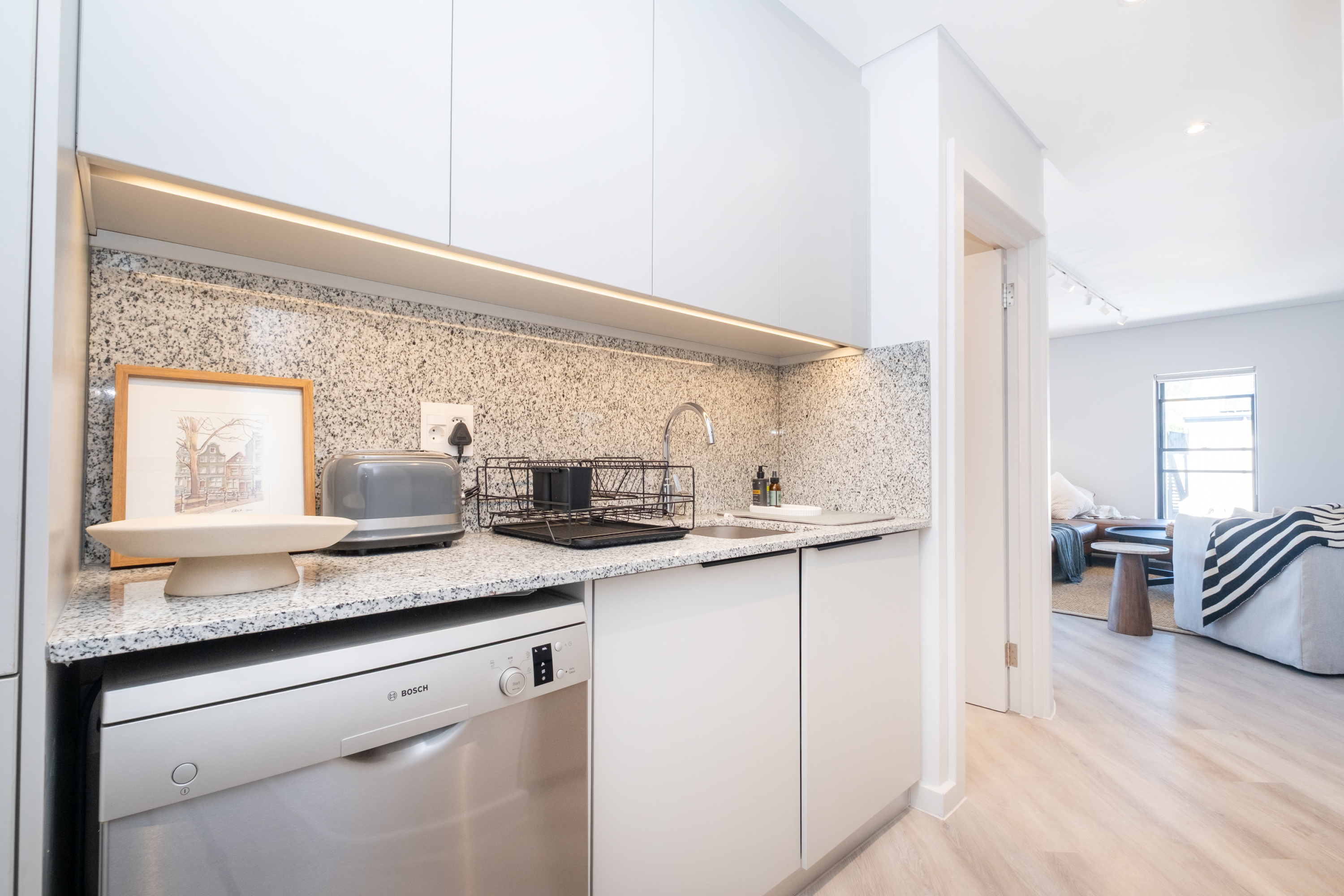 Die kombuis is toegerus met 'n yskas-vrieskas, stoof, oond, mikrogolfoond, eetgerei en breekware, asook tee- en koffiemaakgeriewe. 'n Skottelgoedwasser is beskikbaar vir ekstra gerief. Die sitareas het gemaklike sitplek vir gaste om te eet en te ontspan, en vir gaste se vermaak is daar 'n TV. Toegang tot WiFi is beskikbaar.
