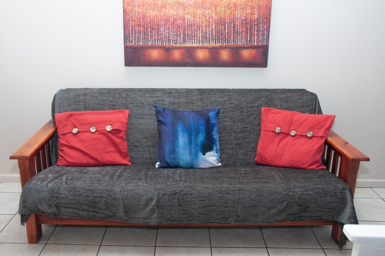 The kitchen is equipped for self-catering with a fridge, an oven and stove, and a microwave, and the lounge has a TV with selected DStv channels, as well as a sleeper couch for 2 children.