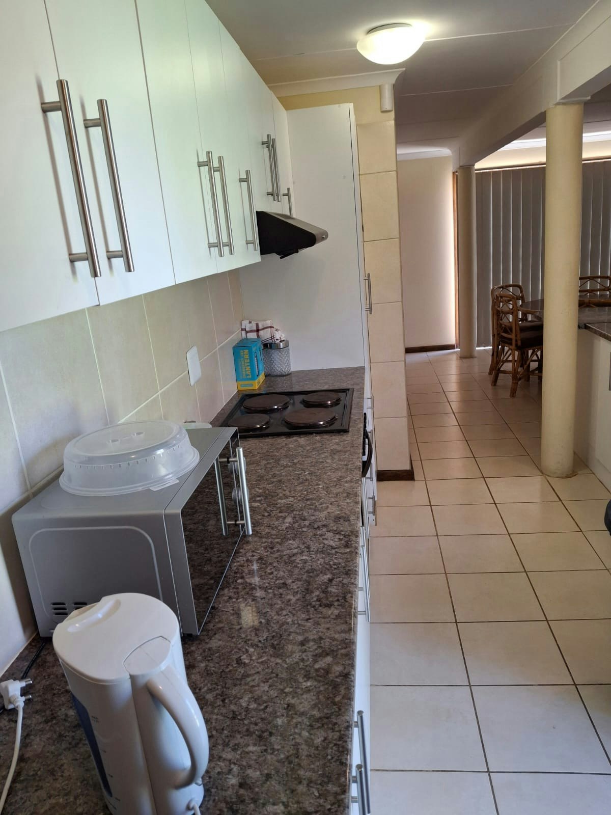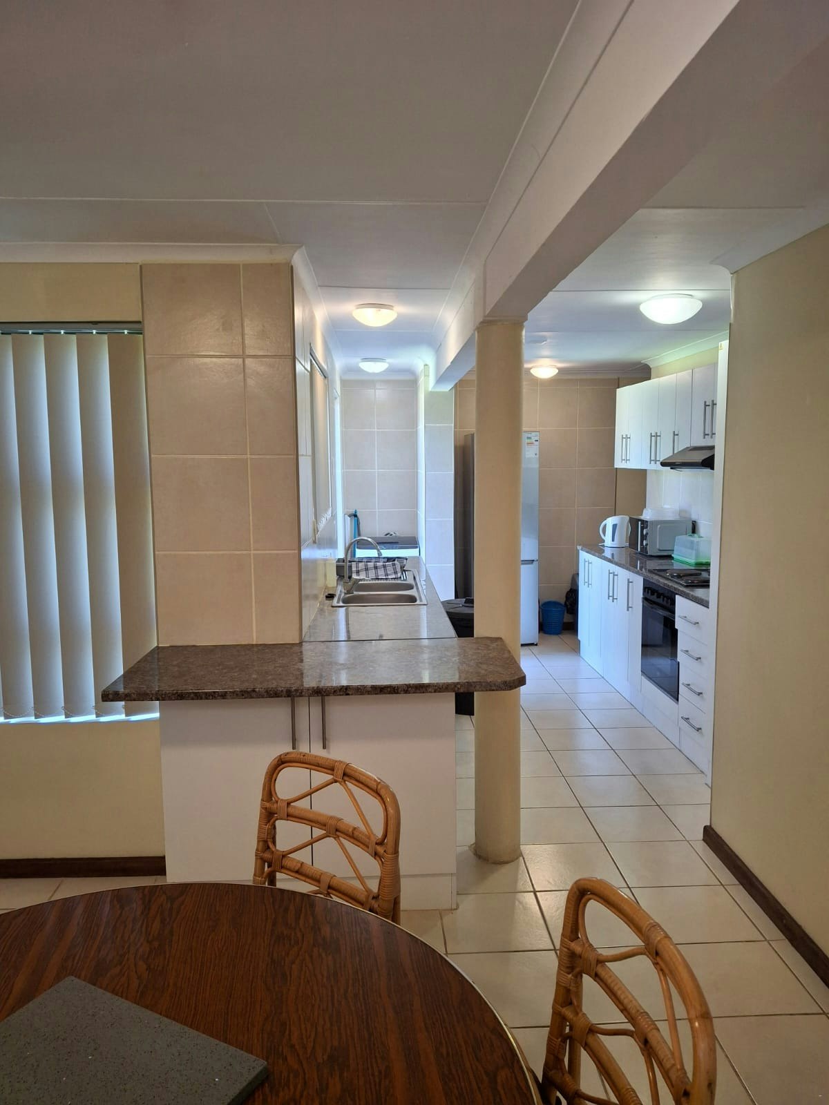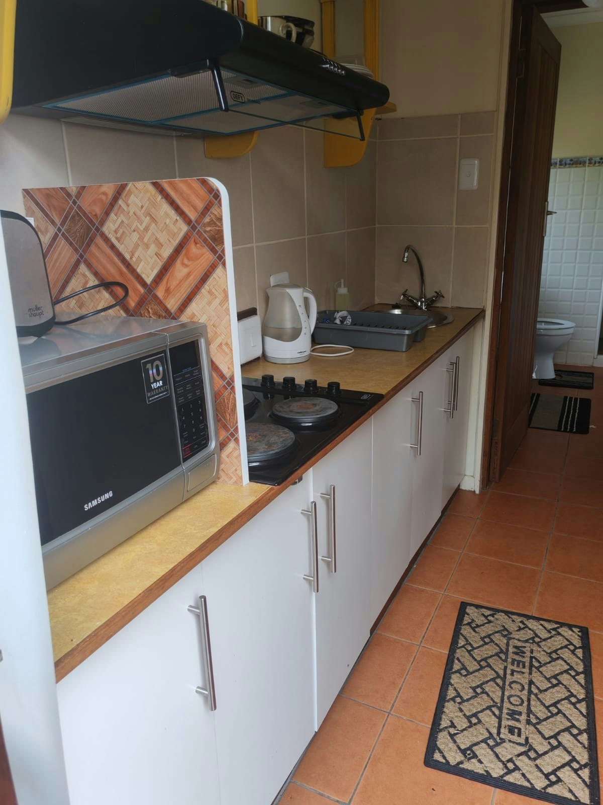 Accommodation is provided in a choice between 3 self-catering units. There are 2 units located on the ground floor of the guest house, while the third unit is located on the top floor. The unit upstairs, as well as one of the units on the ground floor, each comprises 2 bedrooms and can accommodate 4 adults with 4 children under the age of 14. The second unit on the ground floor consists of 1 bedroom and is suitable for 2 adults with 2 children under the age of 14. Each unit has a bathroom fitted with a shower, basin, and toilet.