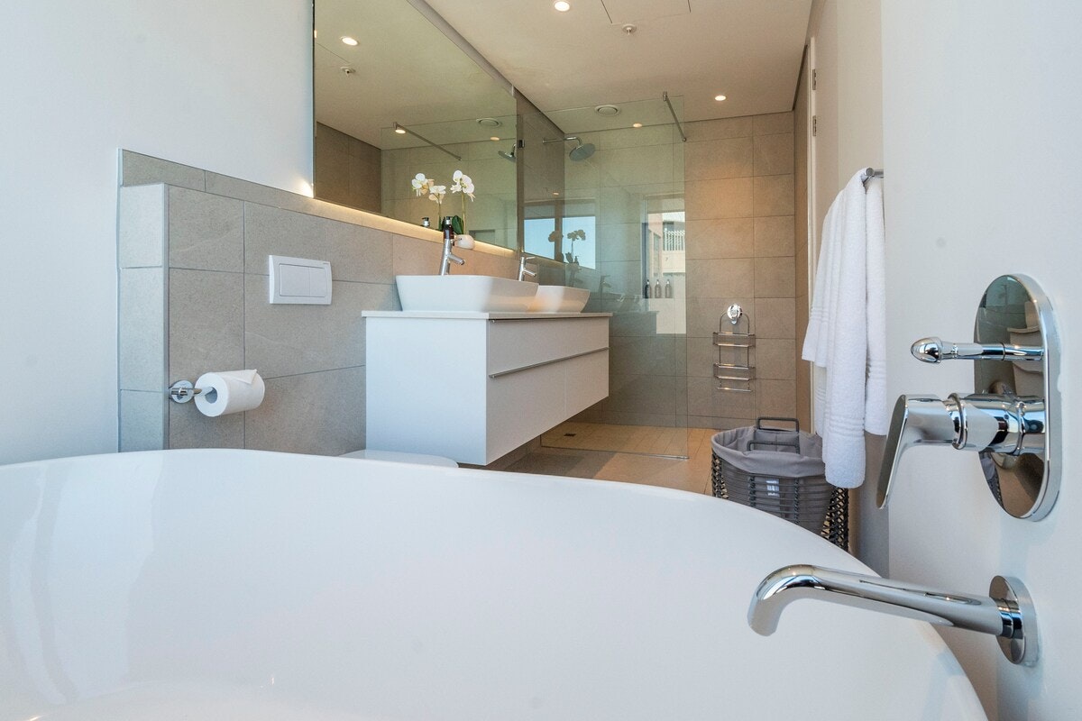 This air-conditioned apartment accommodates 8 guests and features 4 bedrooms and 4 bathrooms. The first bedroom is furnished with a king-size bed and has an en-suite bathroom fitted with a bath and a shower. The second and third bedrooms each have a queen-size bed and en-suite bathrooms fitted with showers. The fourth bedroom contains a king-size bed and uses a separate bathroom fitted with a shower. Linen and bath towels are provided for guests' convenience.