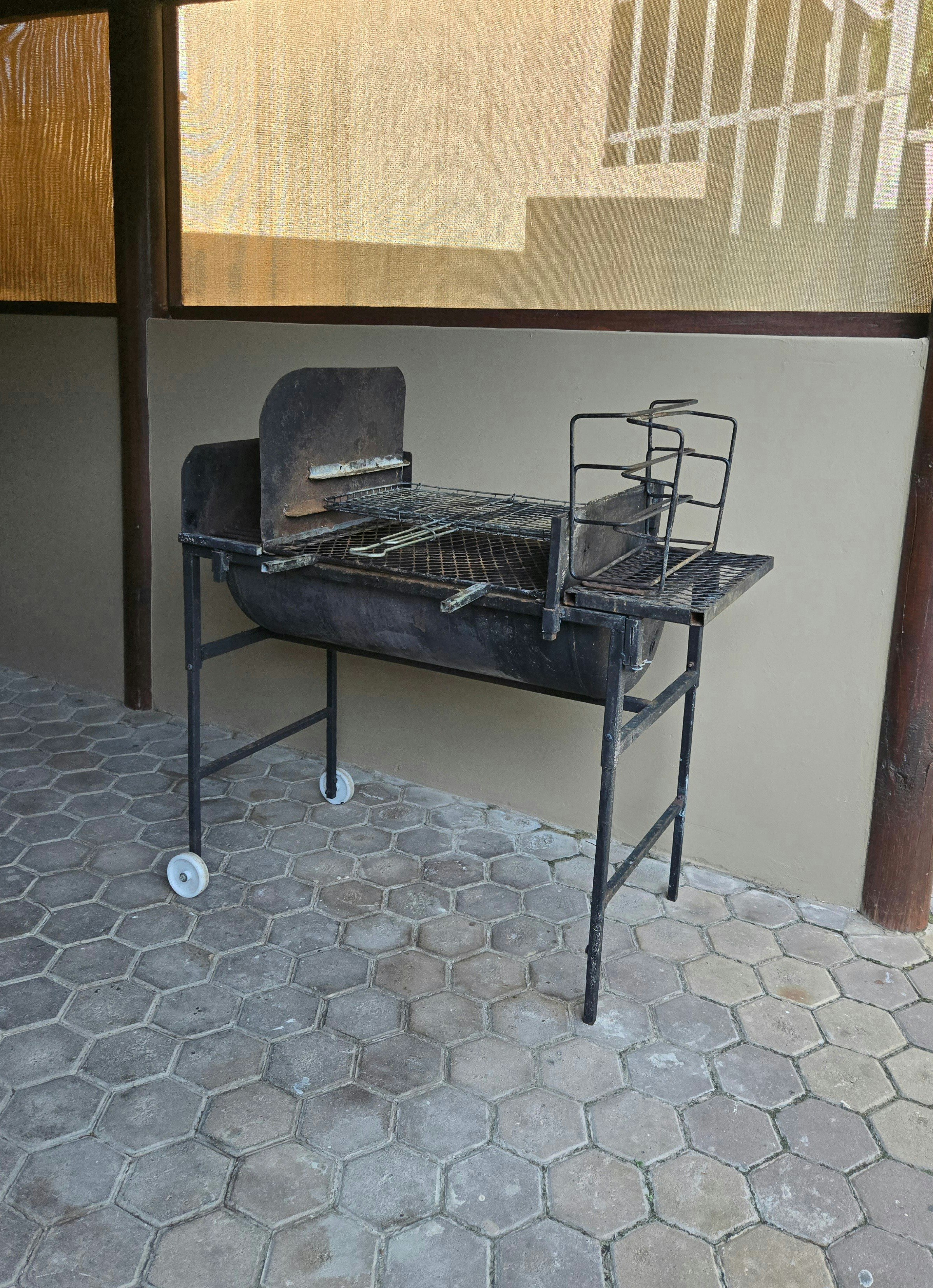 The Main House has 5 bedrooms and 3 bathrooms. Two bedrooms have double beds, and the remaining three bedrooms each have 2 single beds. The main bedroom has an en-suite bathroom with a shower, and there are 2 additional bathrooms. The kitchen is fully equipped with 2 fridges, a freezer, a microwave, and a stove with an oven. Two lounges each have a TV and free Wi-Fi. Bedrooms and bathrooms are located on the second and third floors. Outside, there is a cosy braai area with a built-in braai.
