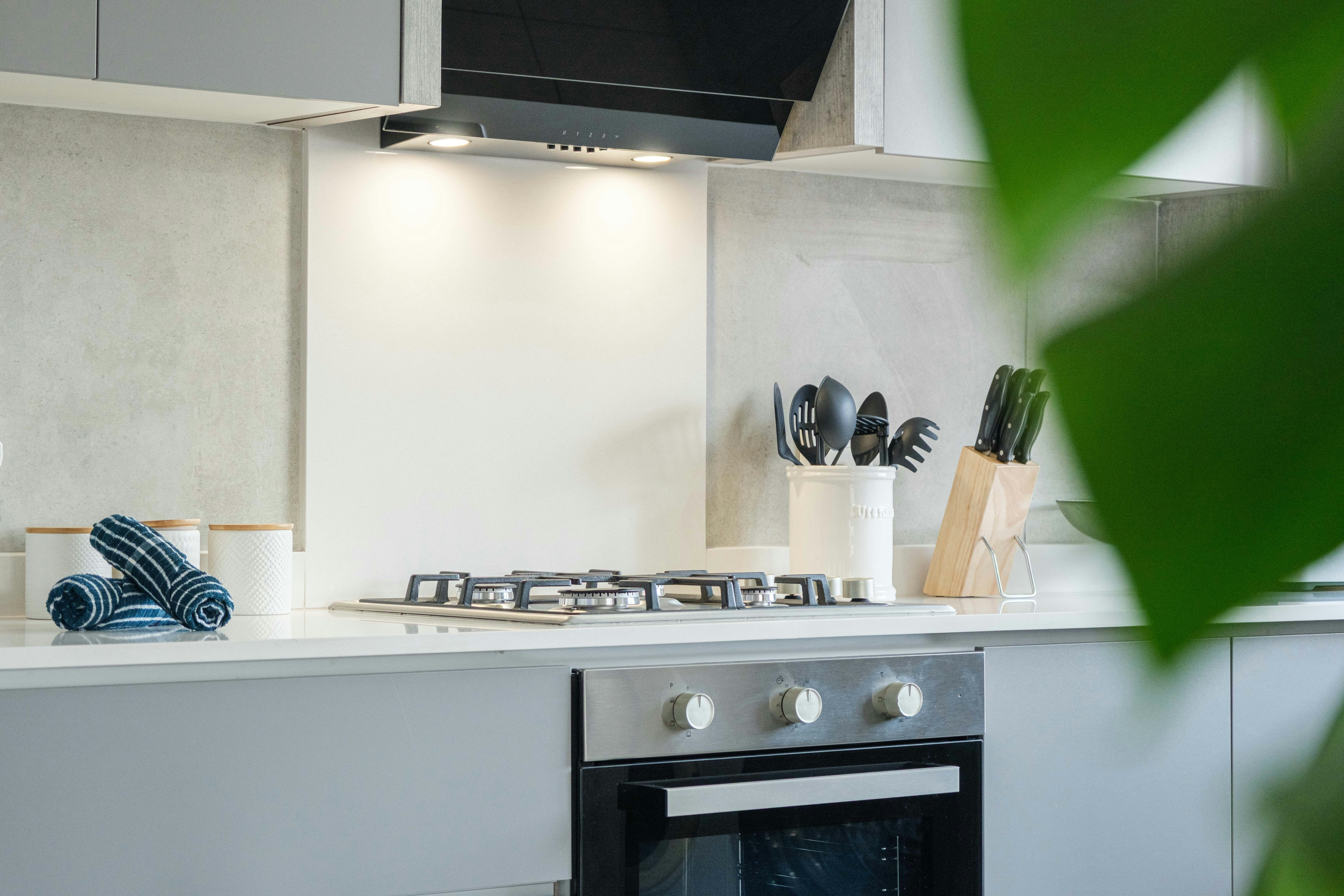 The kitchen is fully equipped for self-catering and includes a gas stove, fridge-freezer, microwave, washing machine, and tumble dryer. The open-plan living area offers a dining table, comfortable seating, a TV, and sliding doors leading to a verandah with outdoor seating and a gas braai.