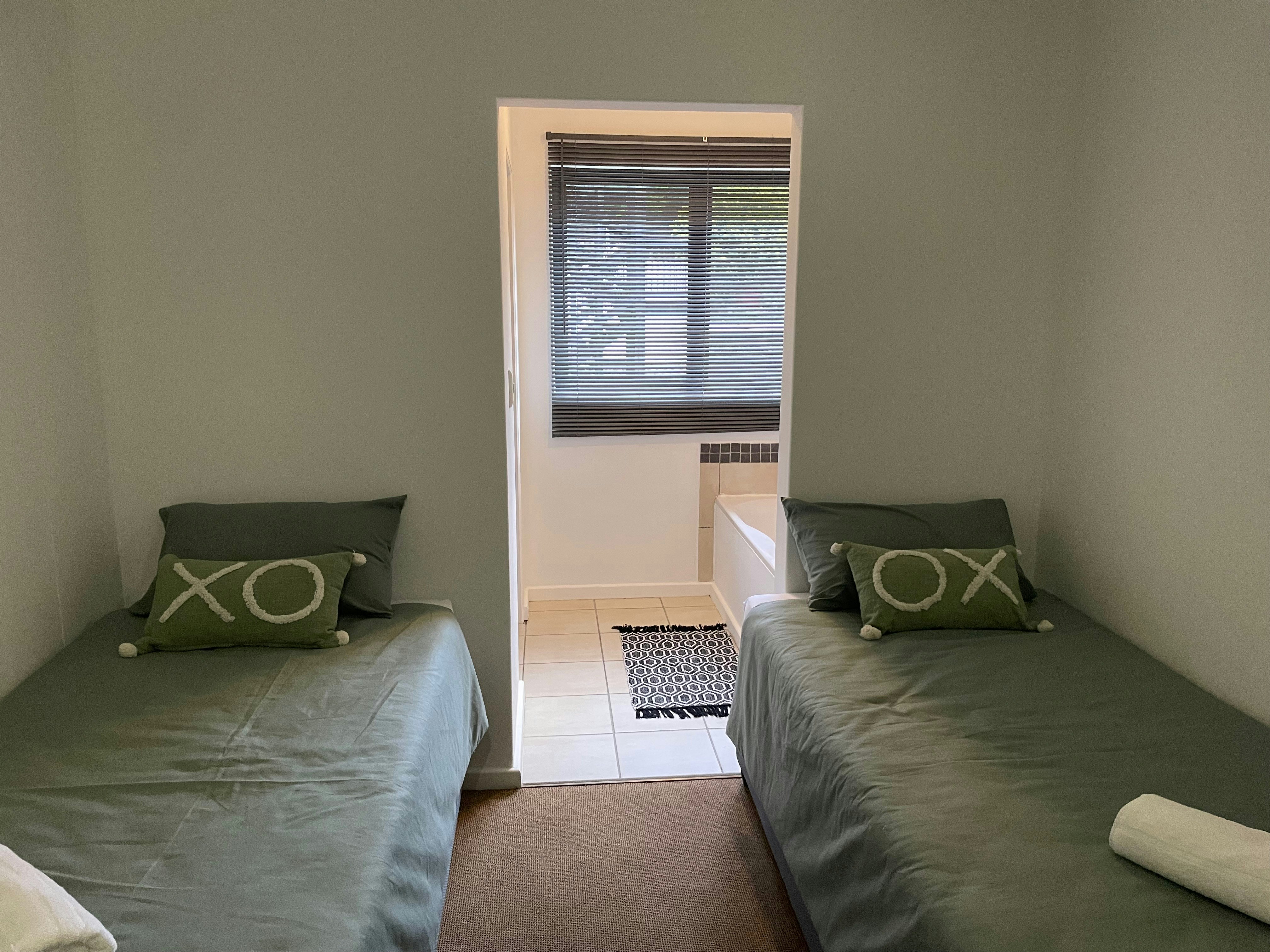The apartment can accommodate up to 4 guests in 2 bedrooms and 2 bathrooms. The first bedroom is furnished with a double bed and has access to an en-suite bathroom that is fitted with a bath, washbasin and toilet. The second bedroom is furnished with 2 single beds and makes use of a shared bathroom that is fitted with a shower, washbasin and toilet. Linen and bath towels are provided, however guests are required to bring their own swimming towels.