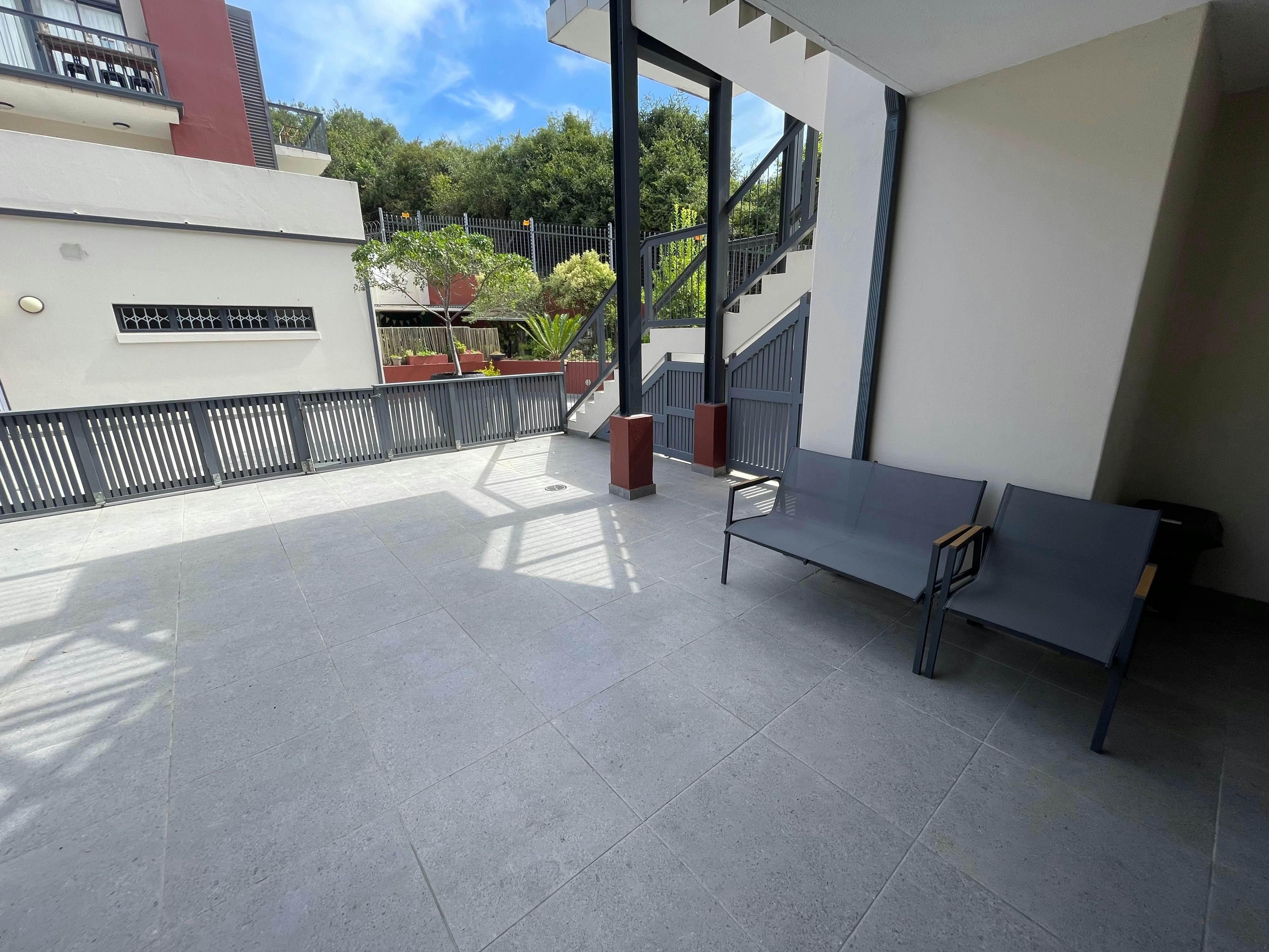 Guests have access to a spacious patio that features a built-in braai and outdoor furniture. Secure parking is available on the premises. This property is within close proximity to various local amenities such as shops and restaurants and the beach.
