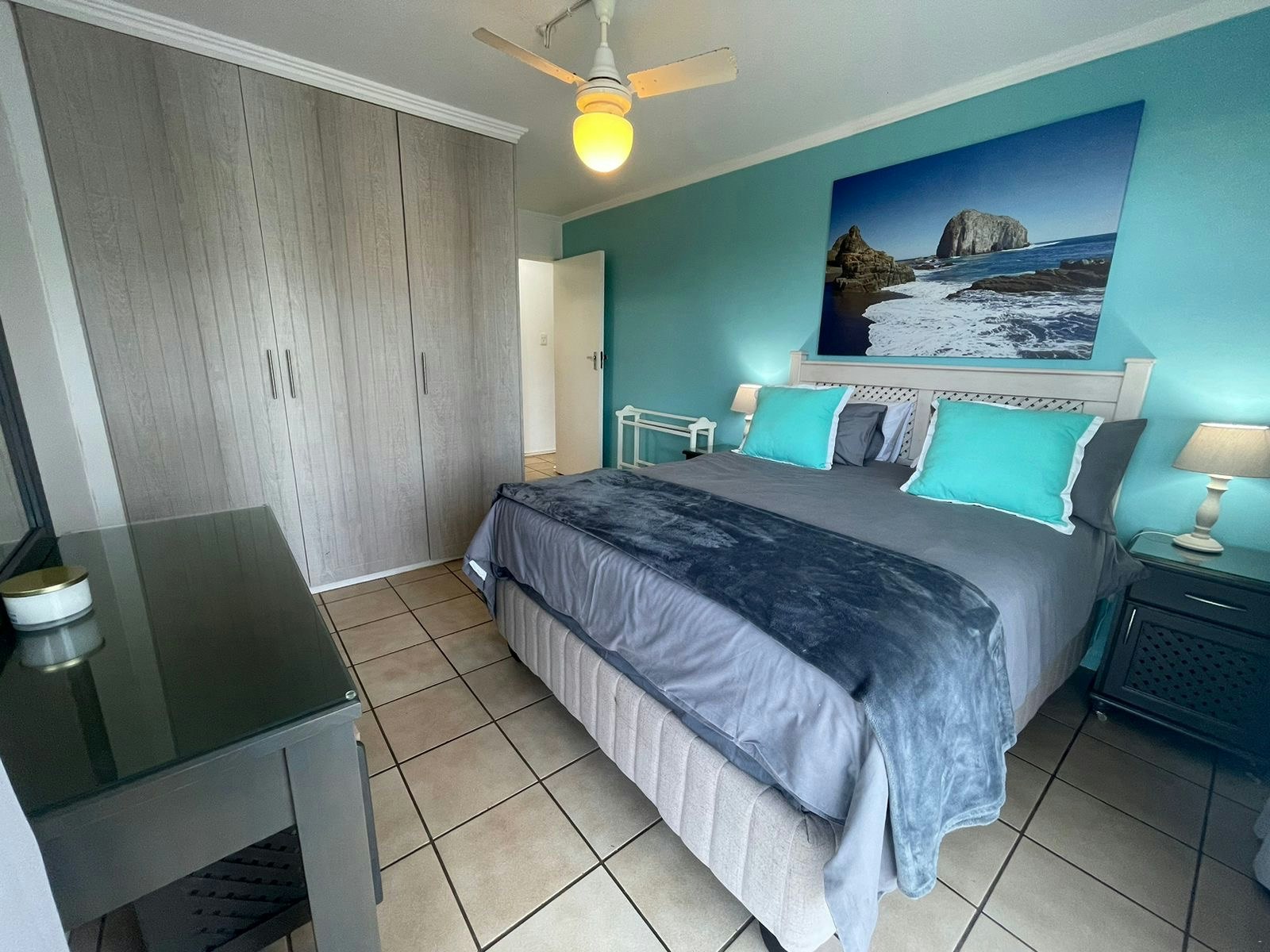 3 The Beacon is a lovely self-catering apartment located in a secure complex in Shaka's Rock on the North Coast of Ballito. This complex offers the convenience of being just across the road from the famous Thompsons Bay Beach, making it an ideal option for families seeking to stay close to the coast.