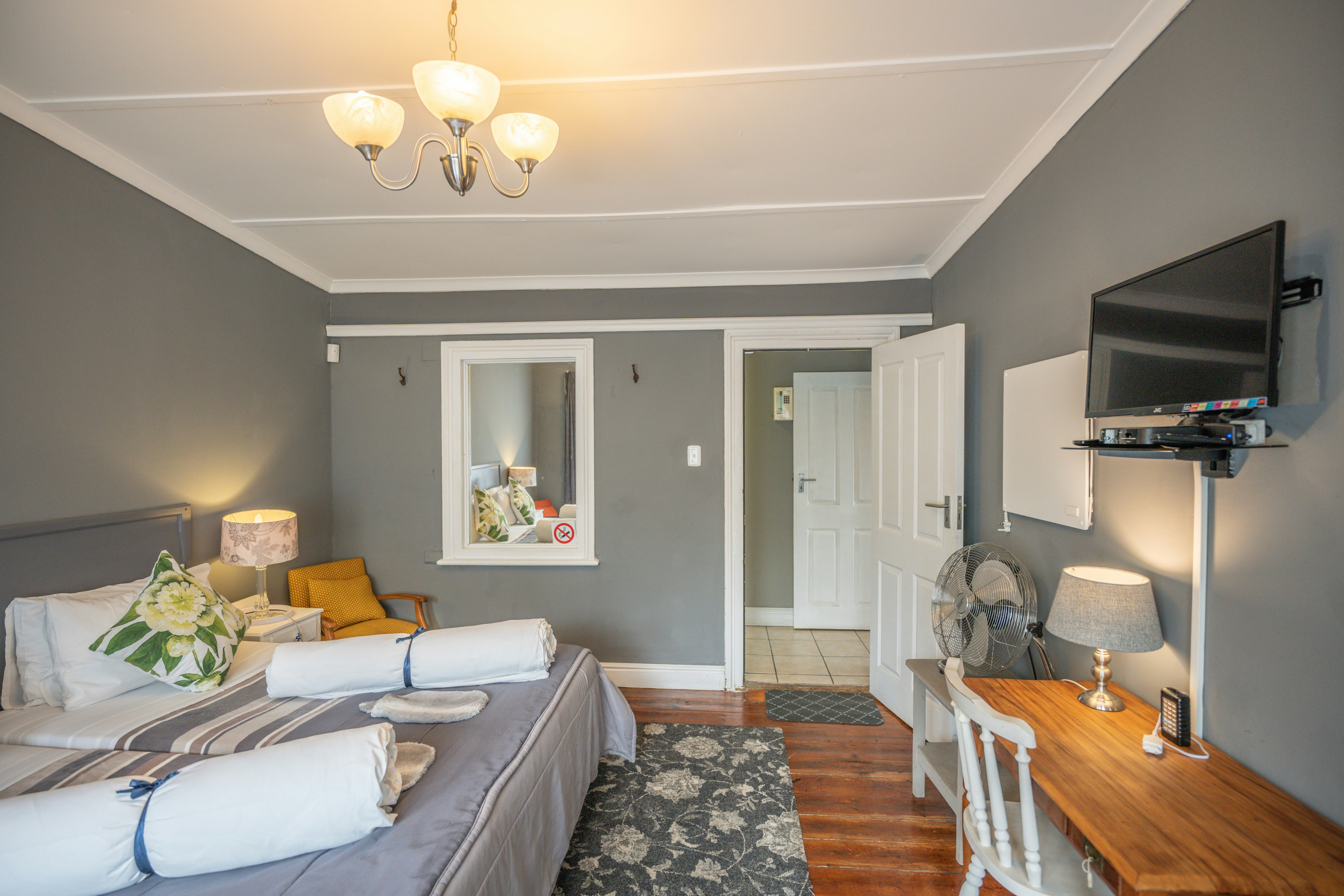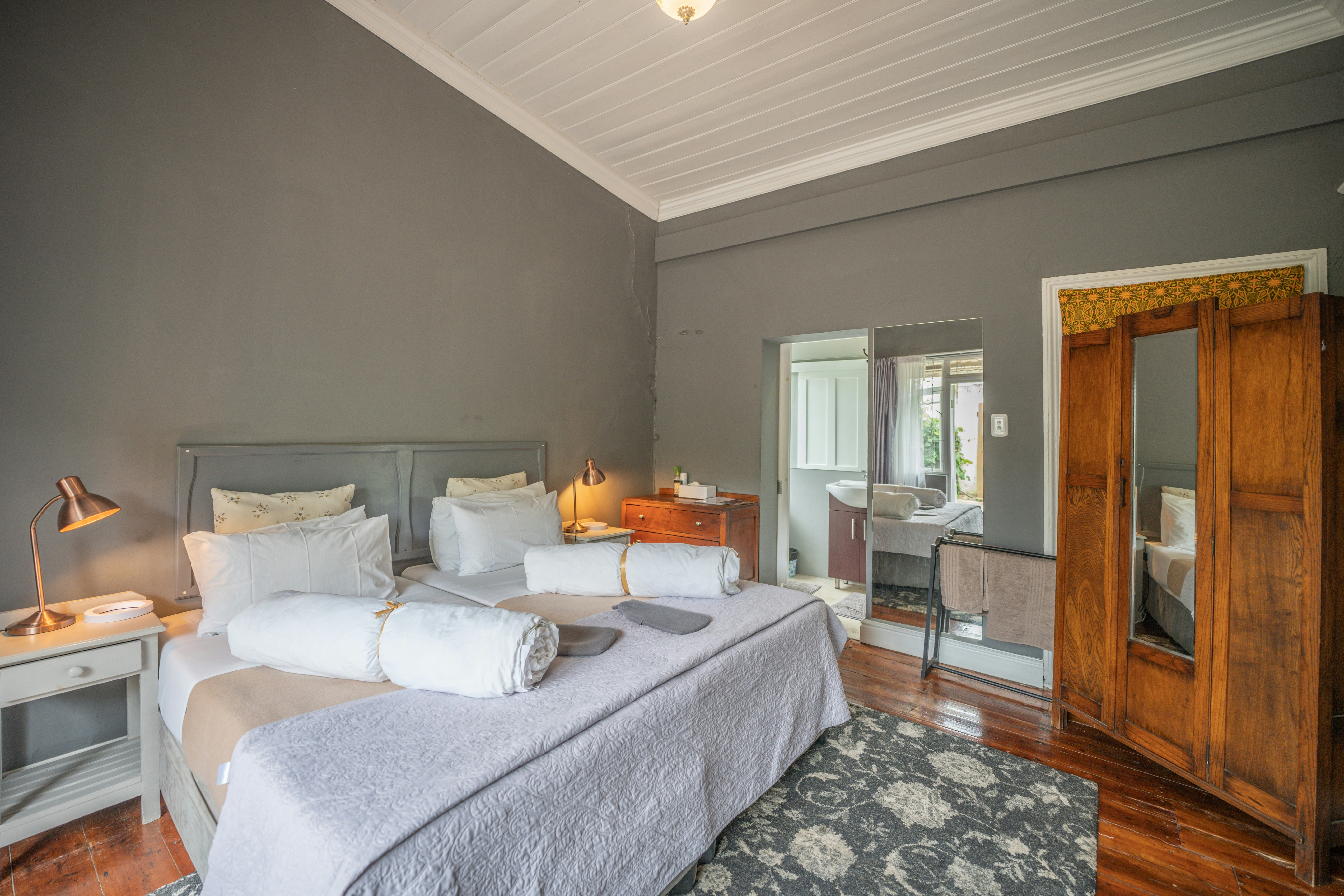 Guests have a choice of 4 comfortable private guest rooms, each with its own separate entrance, tea- and coffee-making facilities, and crisp percale linen. The rooms are serviced daily by our team, Zoleka Thandi, with a true Eastern Cape smile. An off-street parking space per room is available.