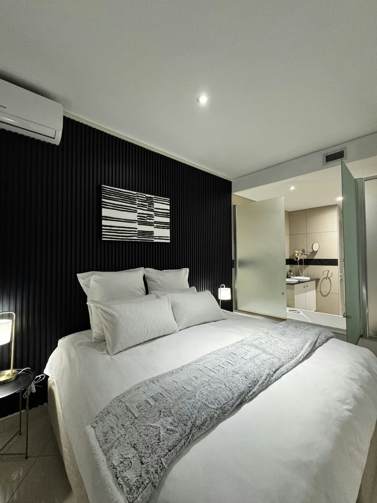 Slaapkamer 1 bied slaapplek vir 2 gaste en is ingerig met 'n koninggrootte-bed. Slaapkamer 2 bied slaapplek vir 2 gaste en is ingerig met 2 enkelbeddens. Slaapkamer 3 bied slaapplek vir 2 gaste en is ingerig met 'n dubbelbed. Badkamer 1 is ingerig met 'n bad en toilet, terwyl Badkamer 2 slegs 'n toilet het.