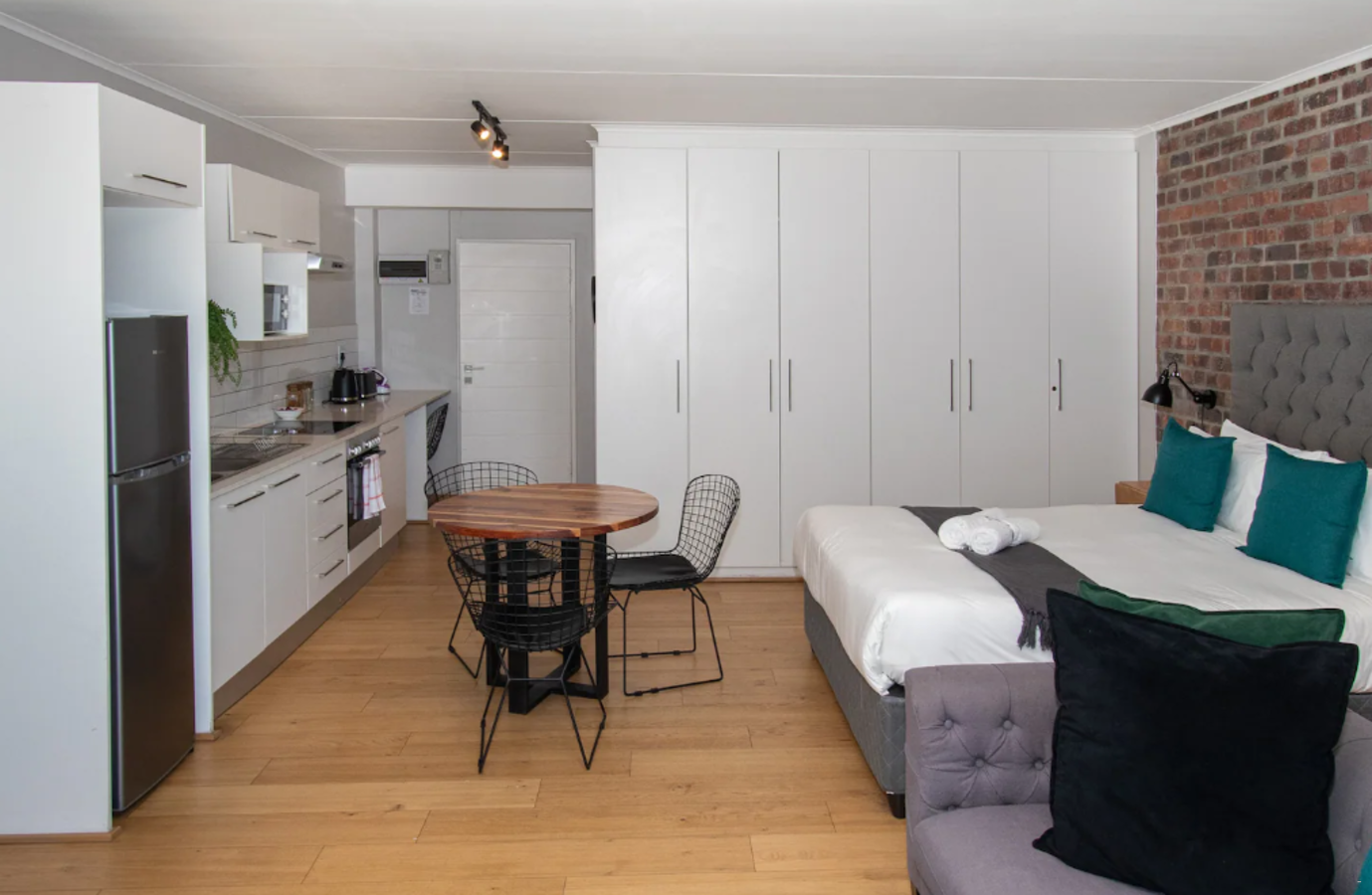 302 Urban bied gerieflike selfsorgverblyf in 'n ruim eenheid in Woodstock, Kaapstad, en is ideaal vir 'n paartjie.