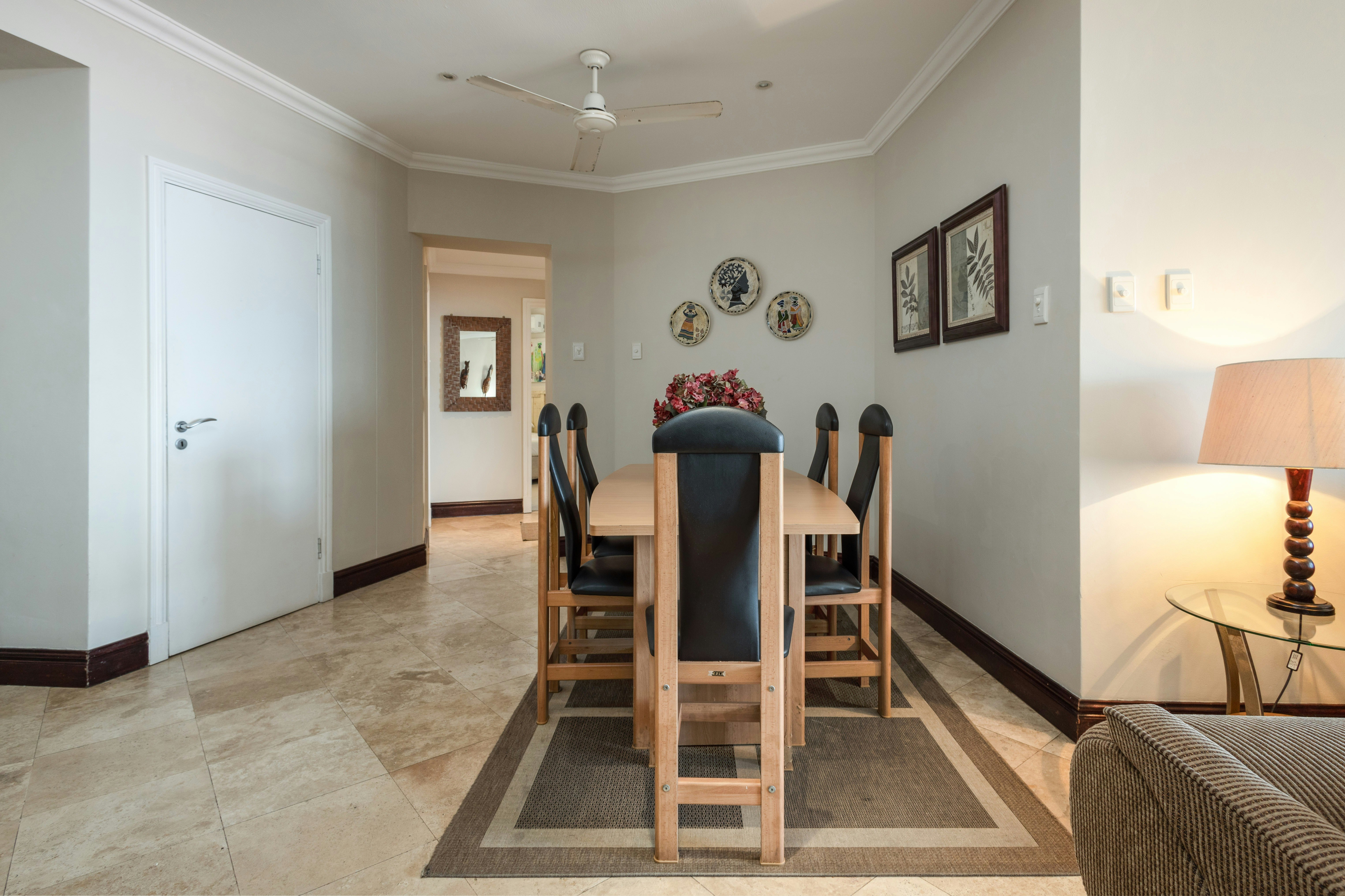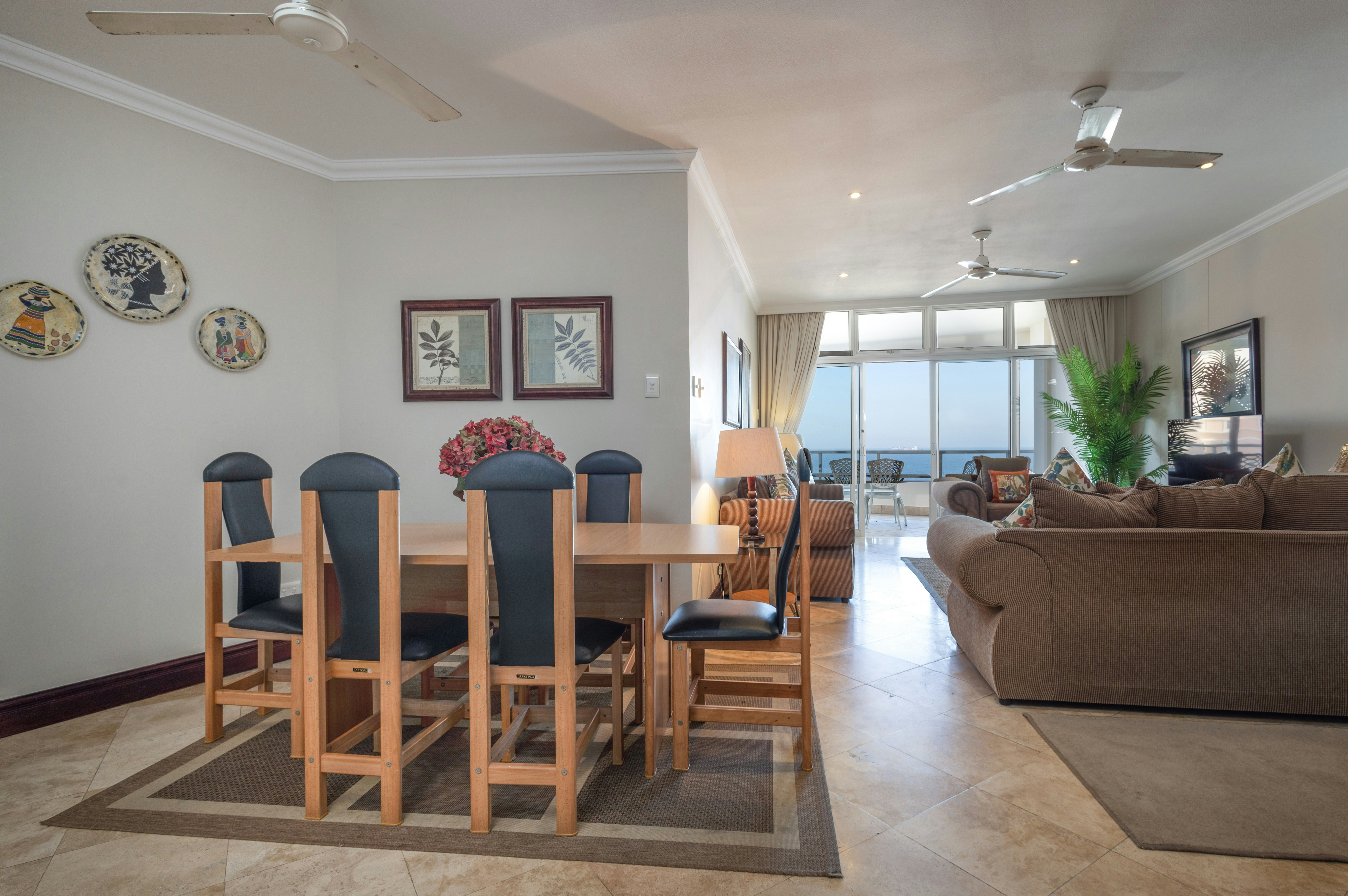 Die woonstel bied slaapplek aan 6 gaste en beskik oor 3 slaapkamers, 2 badkamers en 'n oopplan-kombuis, -eetarea en -sitkamerarea. Die eerste slaapkamer het 'n dubbelbed, 'n en suite-stort en 'n TV met DStv. Dié kamer het deure wat op die balkon oopmaak. Die tweede en derde slaapkamer het elkeen 2 enkelbeddens. Die tweede badkamer het 'n bad en 'n stort. Daar is lugversorging in die slaapkamers.