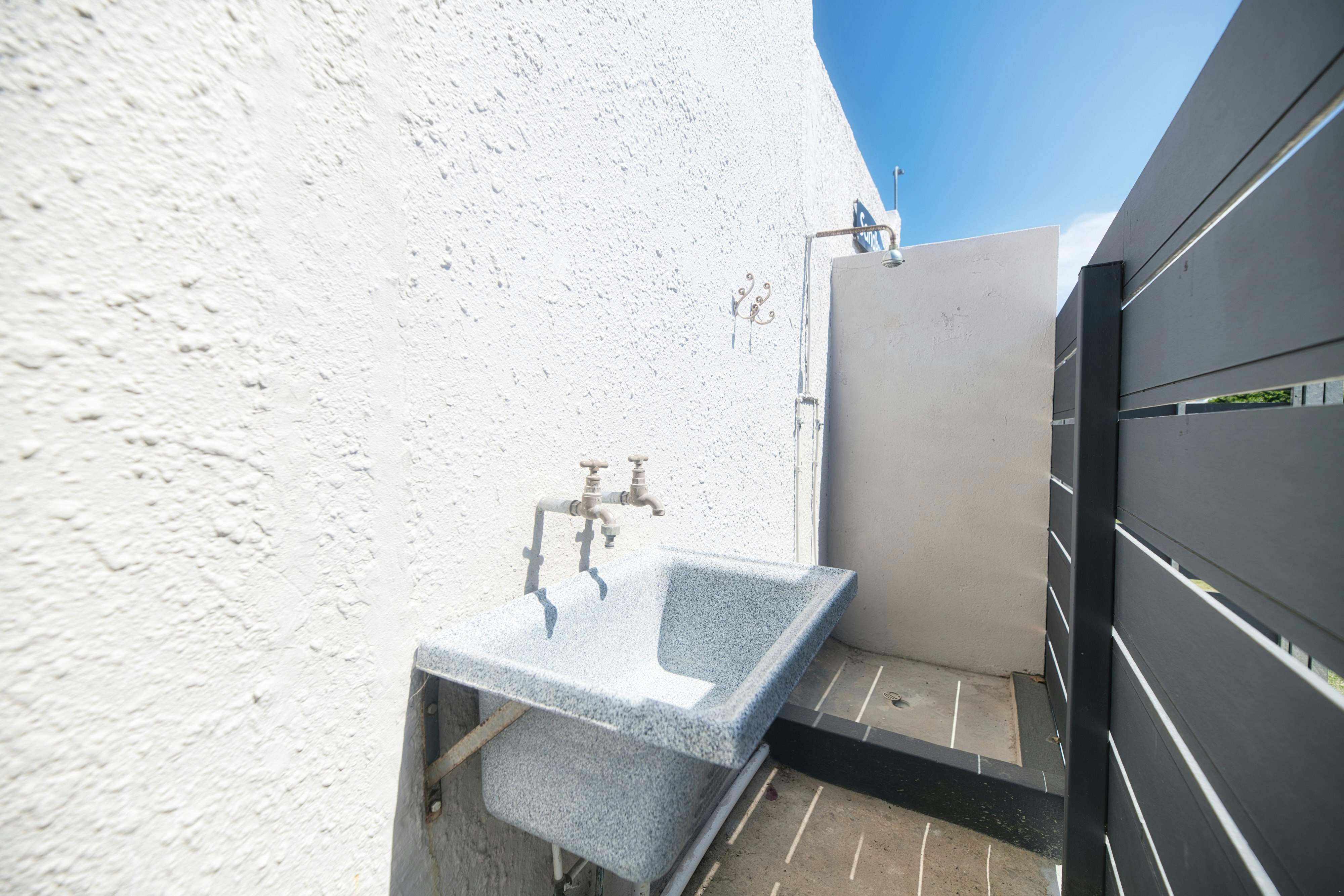 The pet-friendly garden suite has a king-size bed that can be converted into 2 single beds on request and features an en-suite bathroom fitted with a large walk-in shower, toilet, and washbasin.