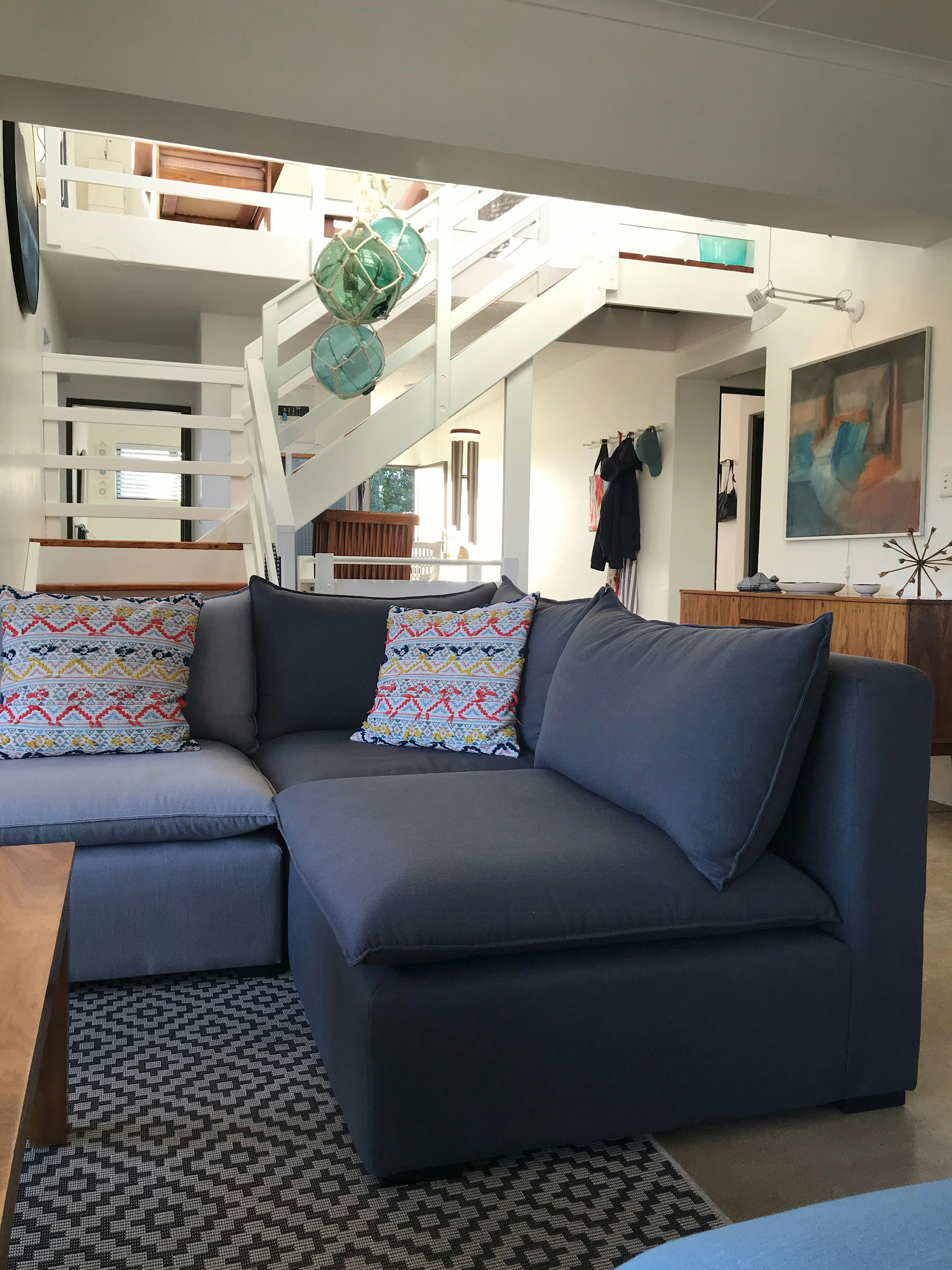 This tastefully furnished, double-storey house comprises 3 bedrooms and can accommodate up to 7 guests. The main bedroom contains a double bed and has an en-suite bathroom. There is a double bed in the second bedroom while the third has twin single beds. These bedrooms make use of a shared bathroom and a separate toilet. The living area upstairs also has a single bed (an extra single bed can be provided for an extra guest).
