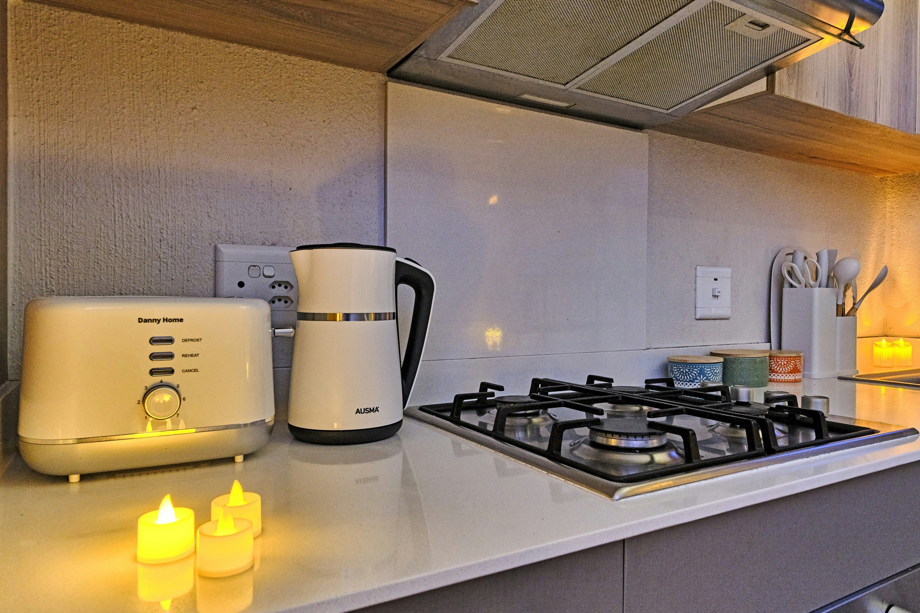 The living area features an open-plan design with a fully equipped kitchen, including a stove, oven, microwave, fridge-freezer, cutlery, and crockery. For added convenience, a dishwasher and washing machine are also available. A 4-seater dining table adjacent to the kitchen is perfect for meals. The lounge area is furnished with comfortable seating and a smart TV with YouTube and Netflix, along with free Wi-Fi facilities.