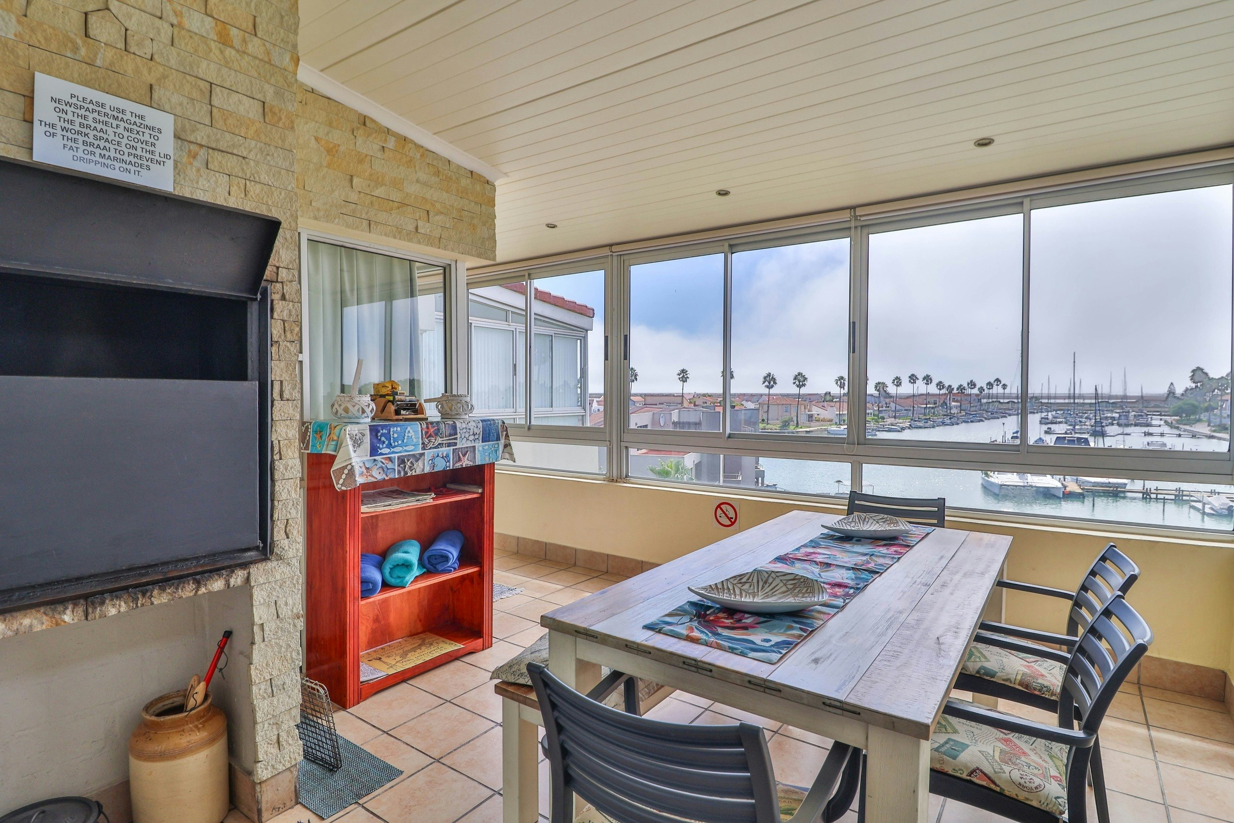 Die sitkamer het gemaklike sitplek asook 'n TV met DStv, YouTube en Neflix. Daar is 'n eetarea met oorgenoeg sitplek en pragtige uitsigte oor die hawe. Daar is 'n sonkamer met ingeboude braaigeriewe waar gaste lekker saam 'n maaltyd kan voorberei, ongeag die weer.