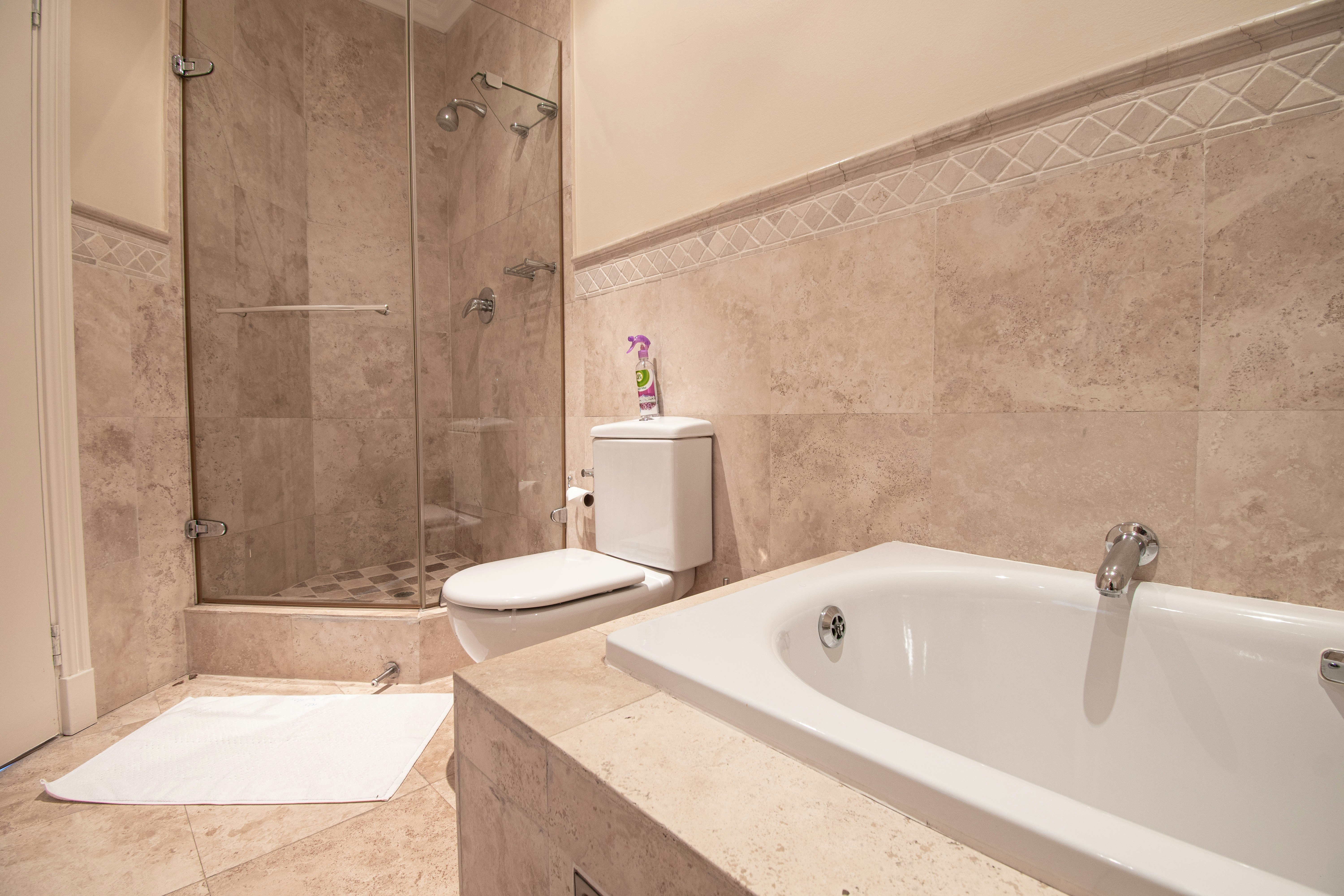 The apartment accommodates a maximum of 6 guests in 3 bedrooms and features 3 bathrooms. The main bedroom is furnished with a king-size bed, the second bedroom contains a queen-size bed, while the third bedroom has 2 single beds. Bathroom 1 and Bathroom 2 each have a toilet, bath, and shower, while Bathroom 3 has a toilet and a shower.