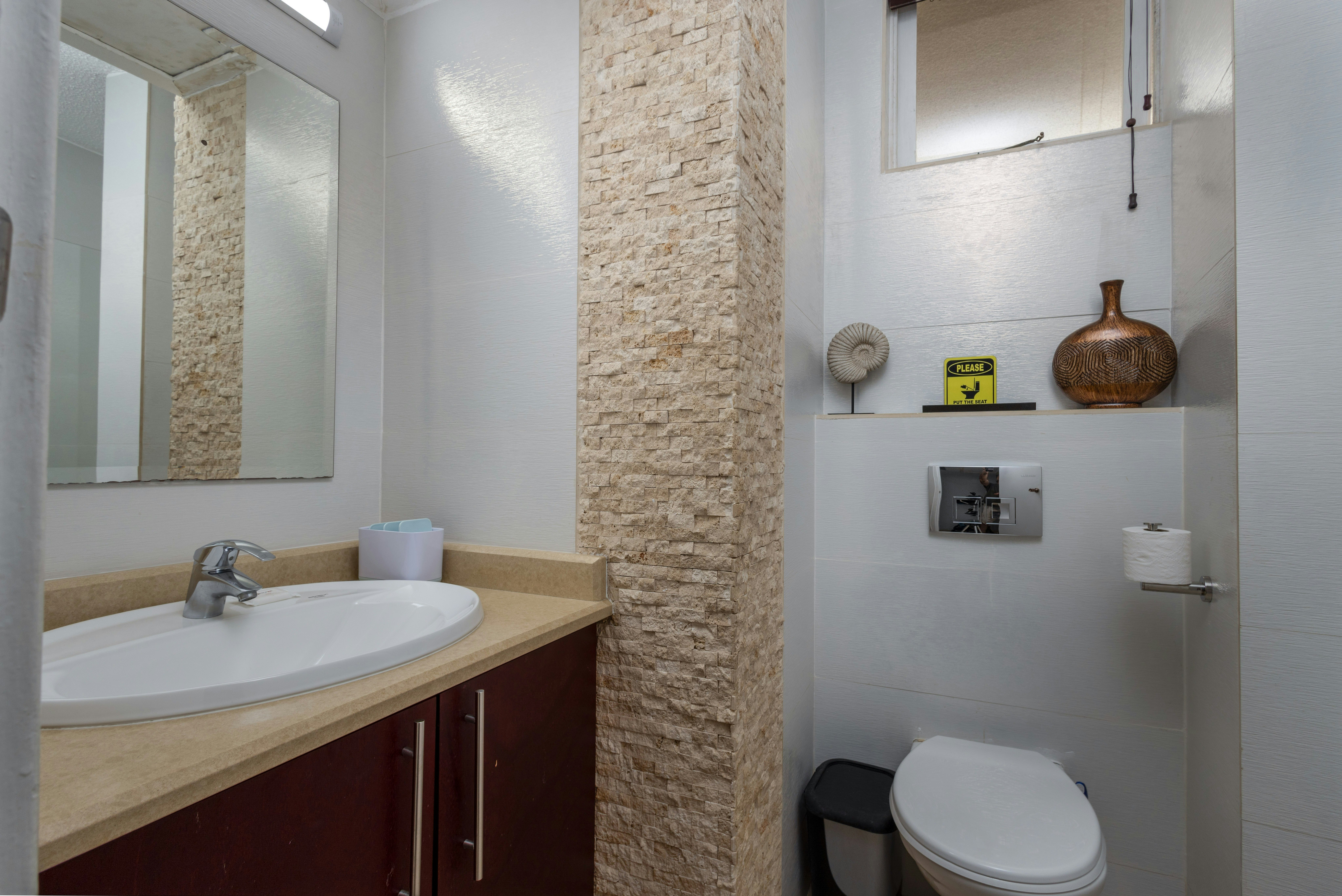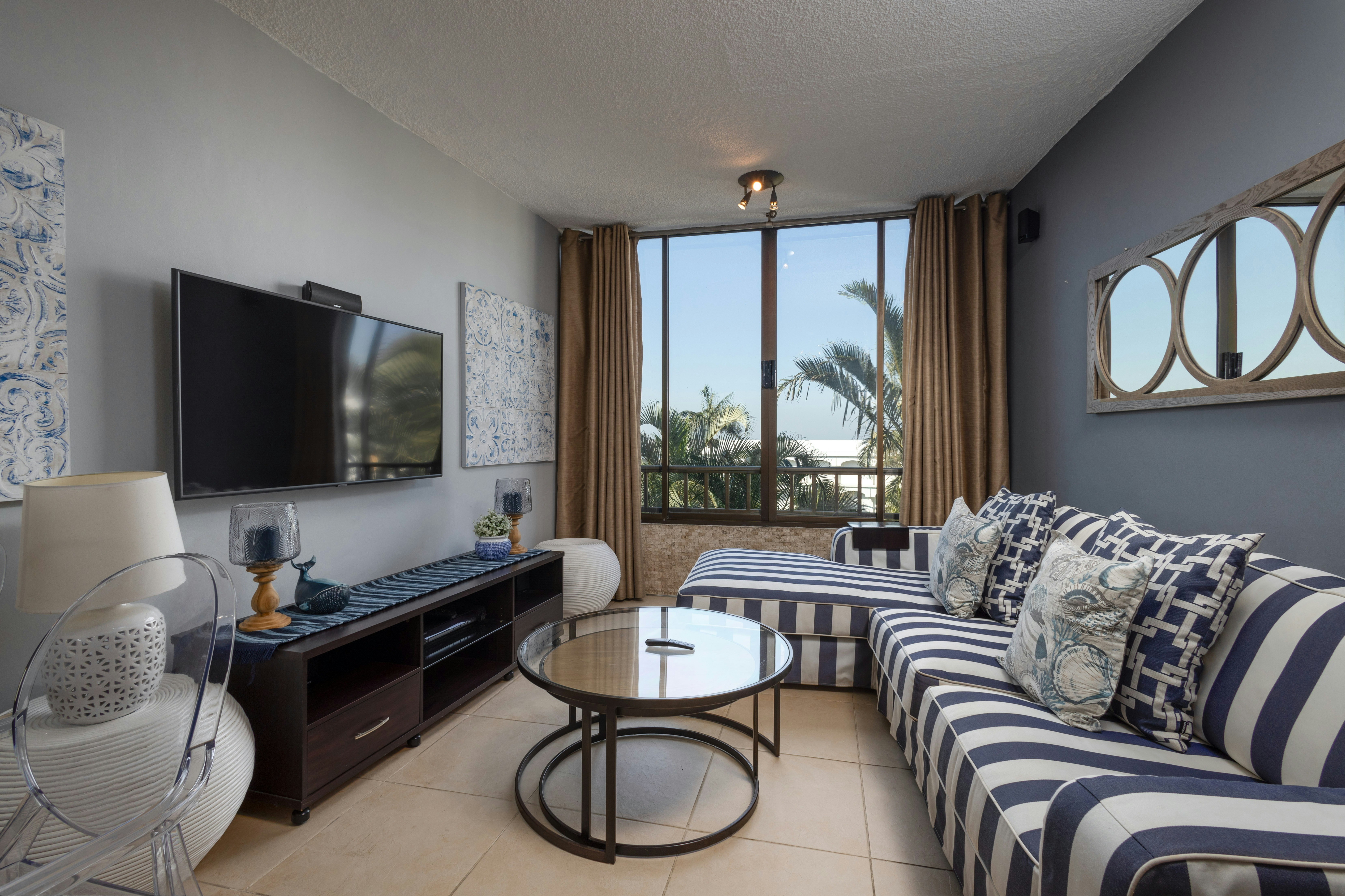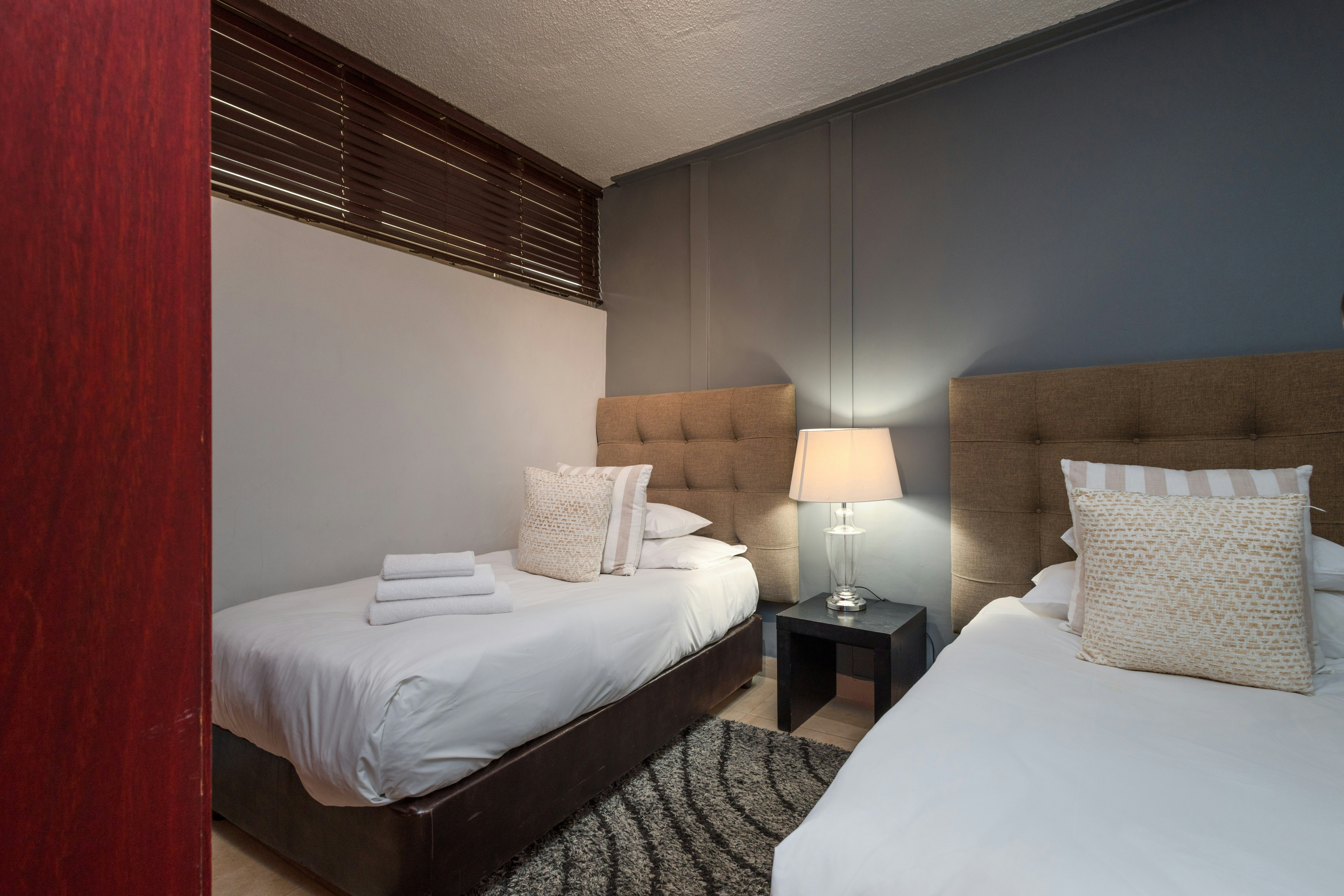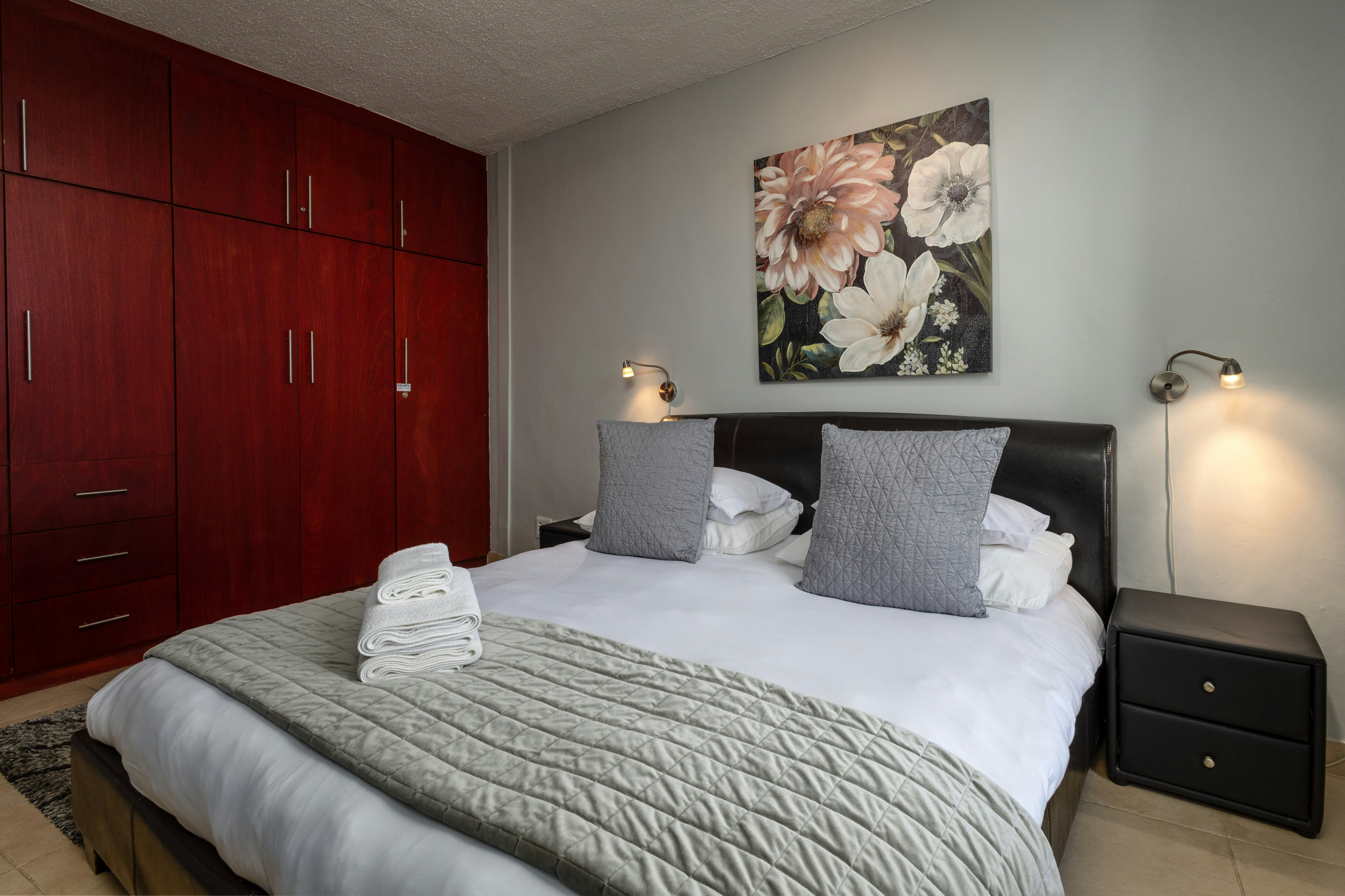 415 The Breakers can accommodate up to 4 guests and comprises 2 bedrooms, 1 bathroom, and an open-plan kitchen, dining, and living area. The first bedroom contains a king-size bed and a flat-screen TV. The second bedroom contains 2 single beds. The bathroom contains a shower-over-bath, a toilet, and a washbasin.