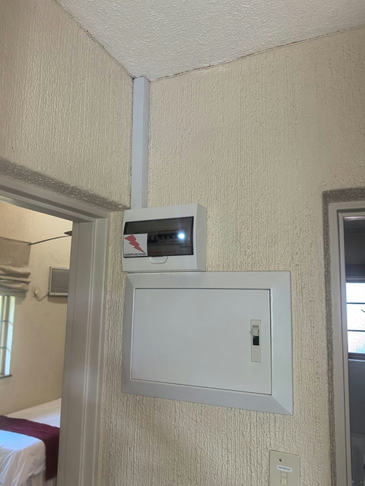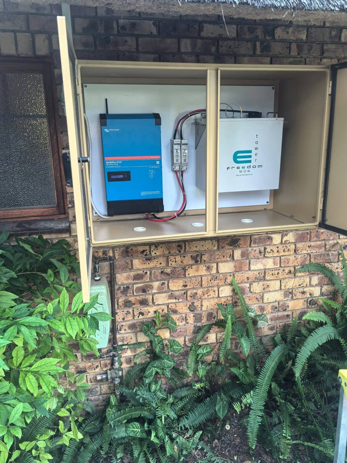 The kitchen is equipped with a fridge-freezer, stove, oven, microwave, cutlery, crockery, and tea- and coffee-making facilities. There is also a dining table with chairs where guests can enjoy their meals. The lounge is furnished with comfy seating and a TV with selected DStv channels. Complimentary Wi-Fi is available and an inverter has been installed in case of a power outage.