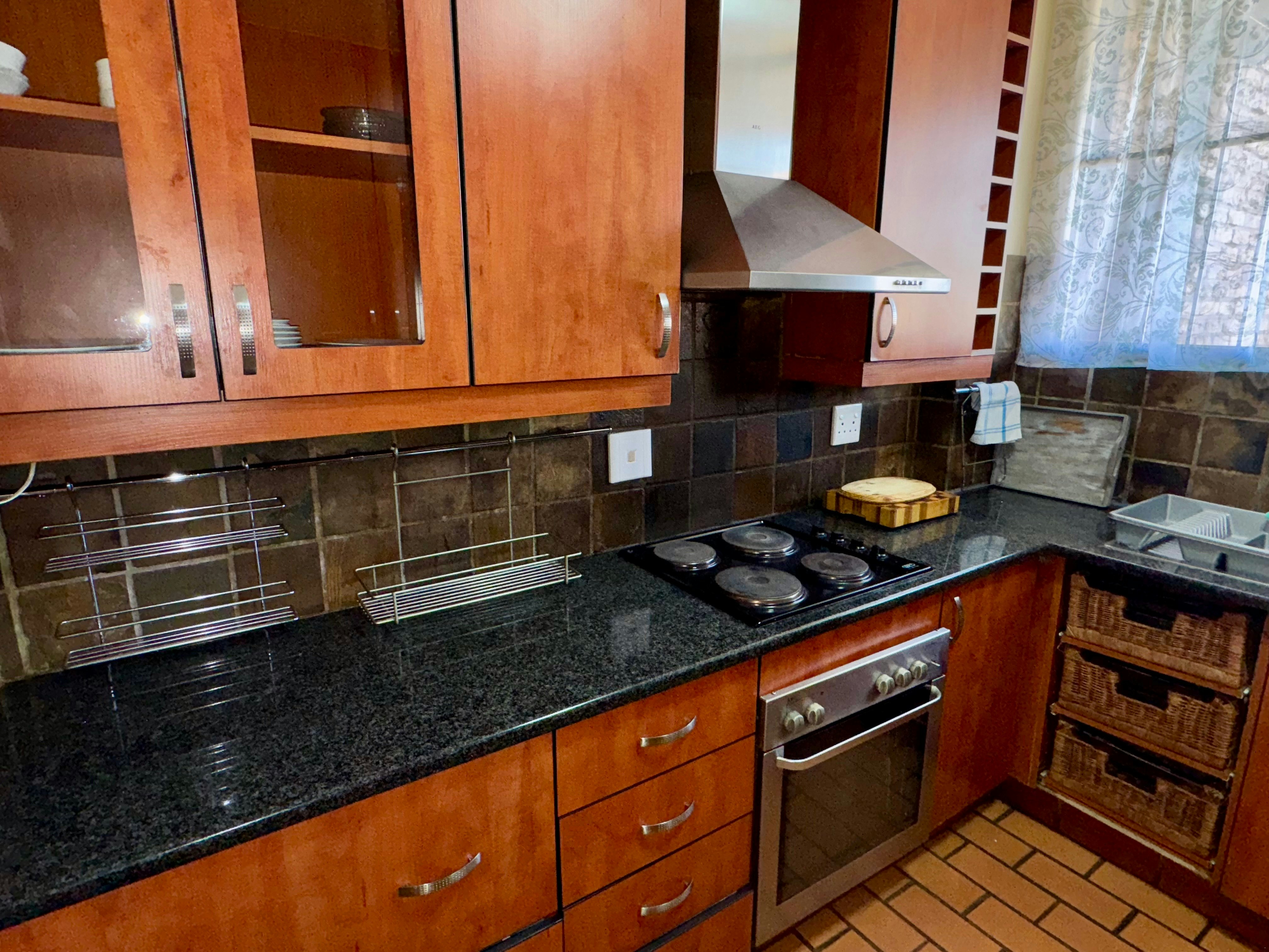 Die kombuis is met 'n yskas-vrieskas, stoof, oond, mikrogolfoond, wasmasjien en 'n tuimeldroër toegerus. Die oopplan-leefarea het gemaklike sitplek en 'n eetarea, asook 'n TV. Gratsi WiFi en veilige parkeerplek op die perseel in ook beskikbaar.